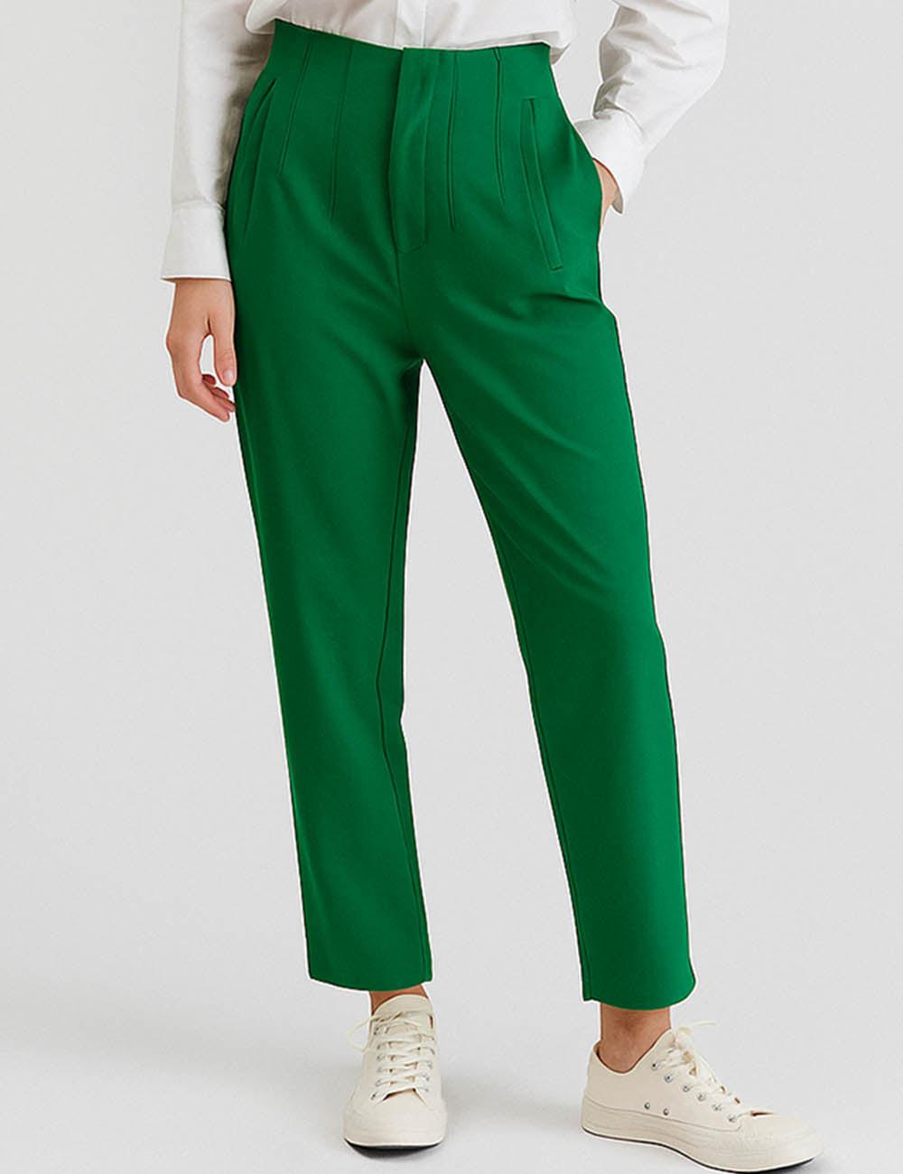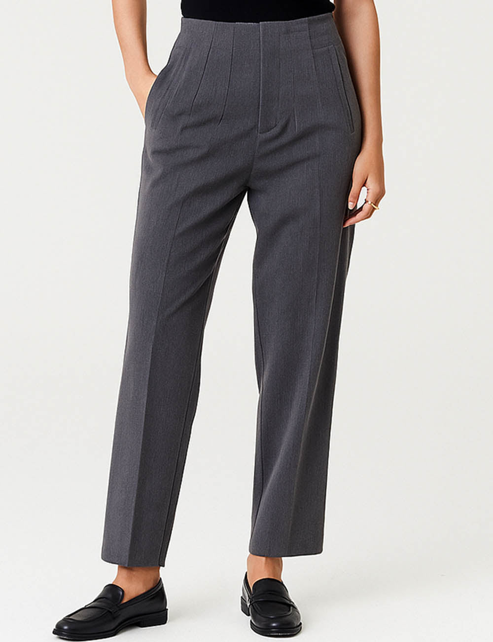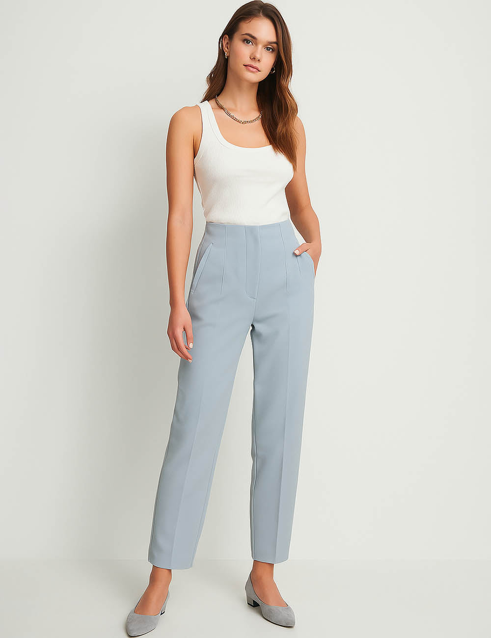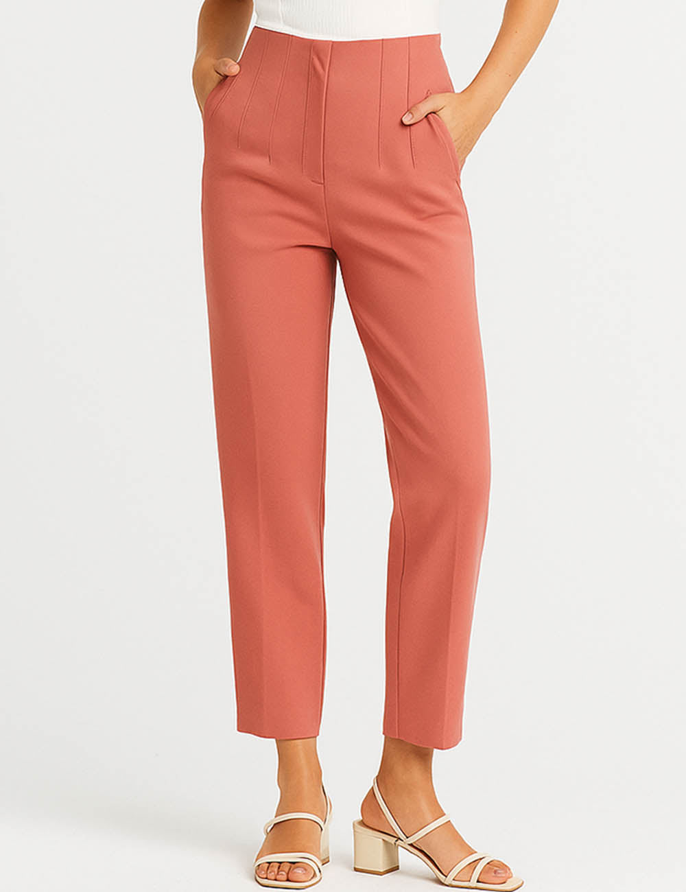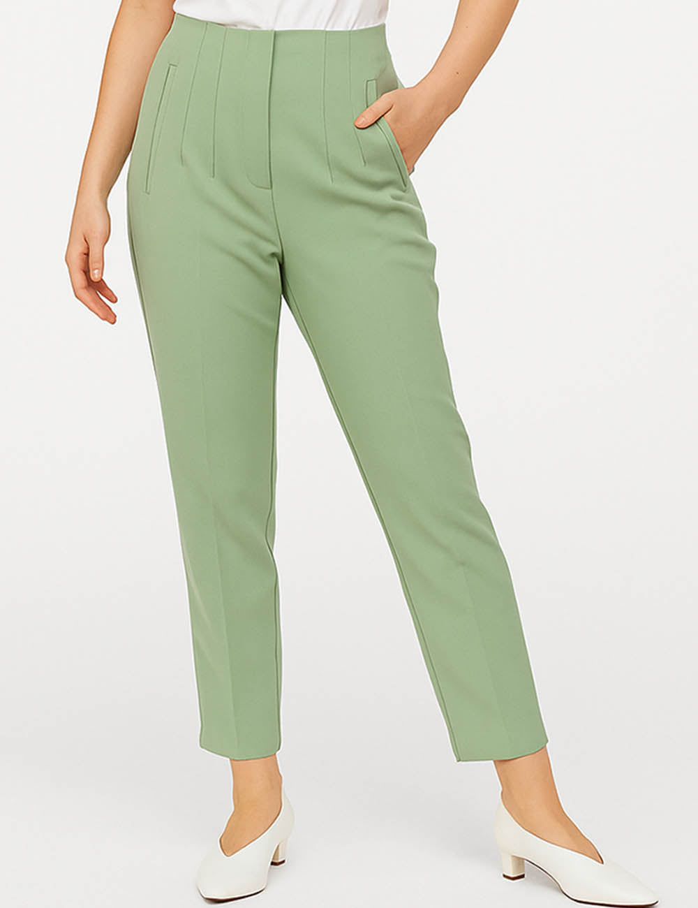 Ladies Solid Color Tailored Straight Leg Pants
