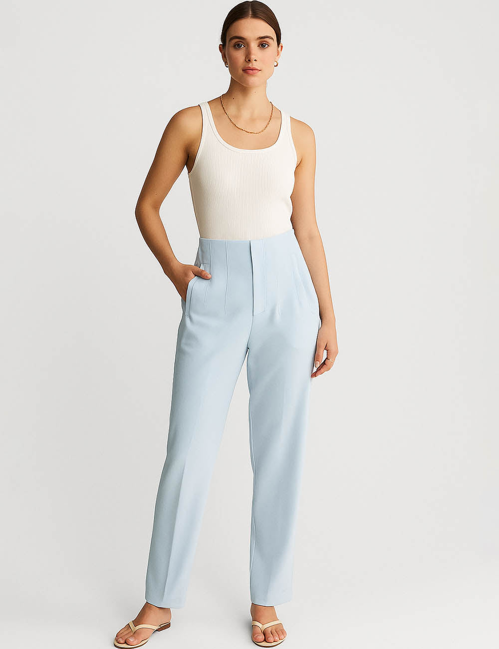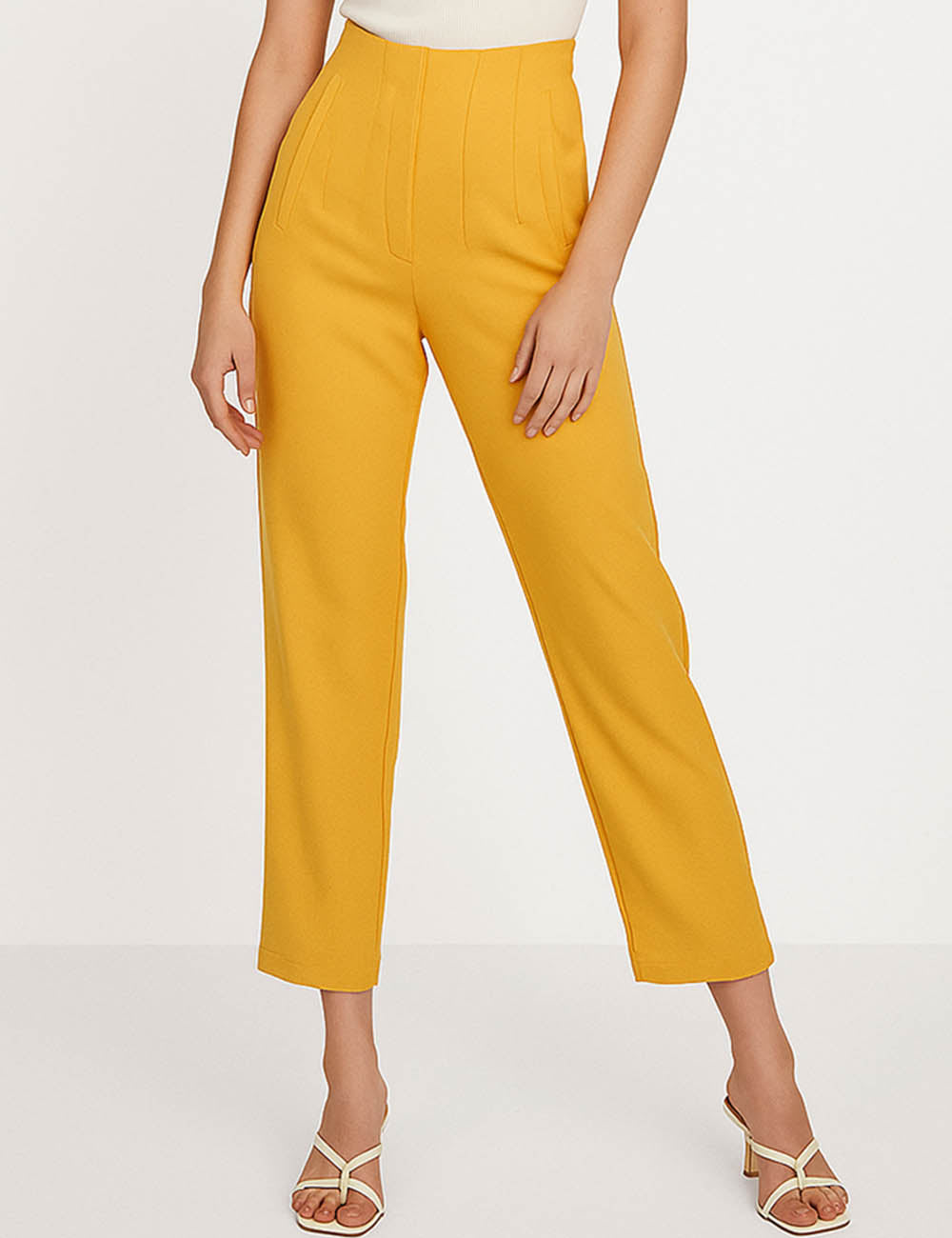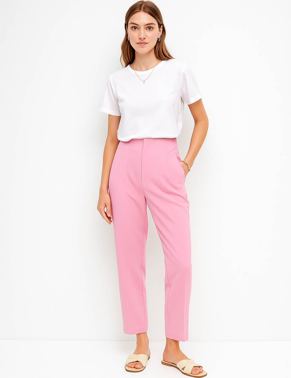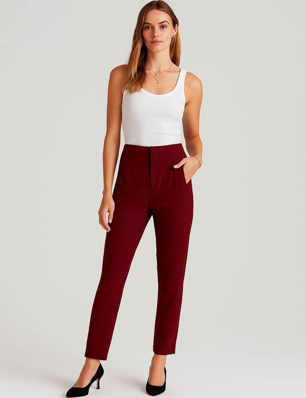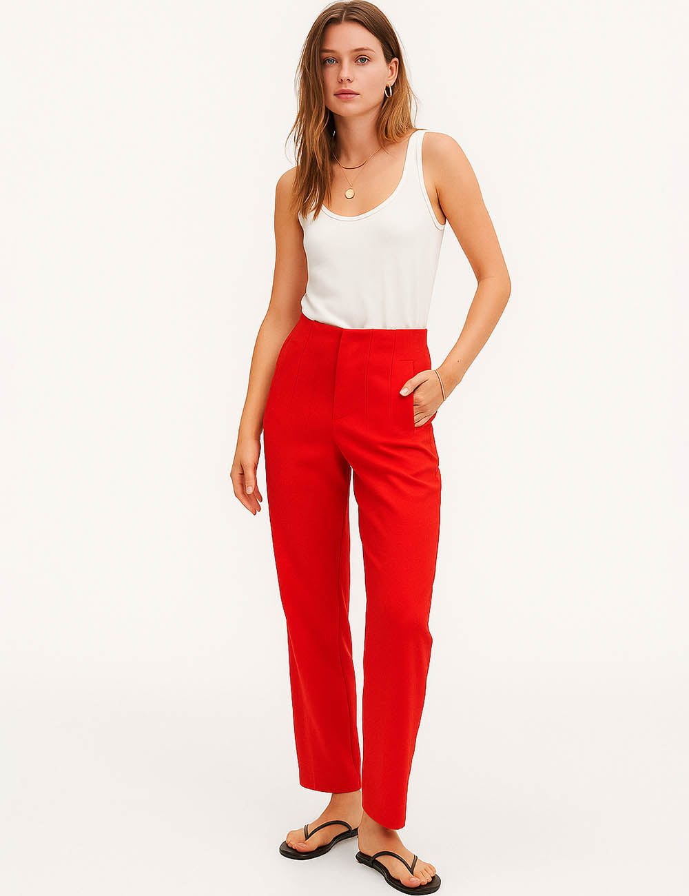 Ladies Solid Color Tailored Straight Leg Pants