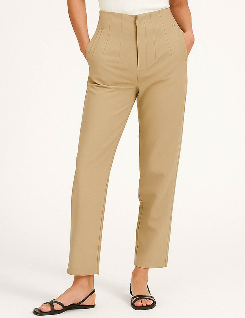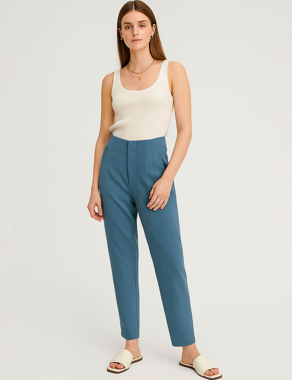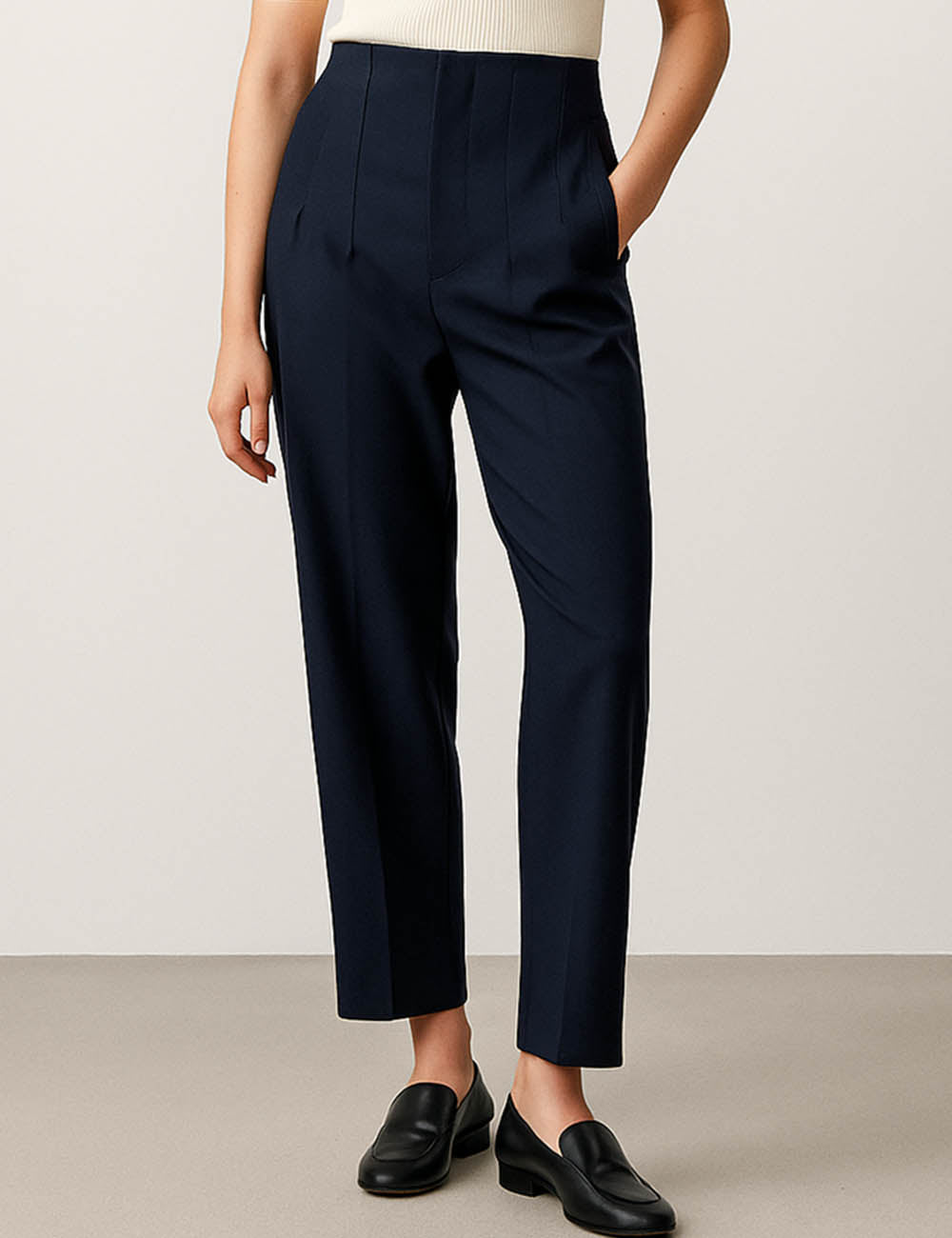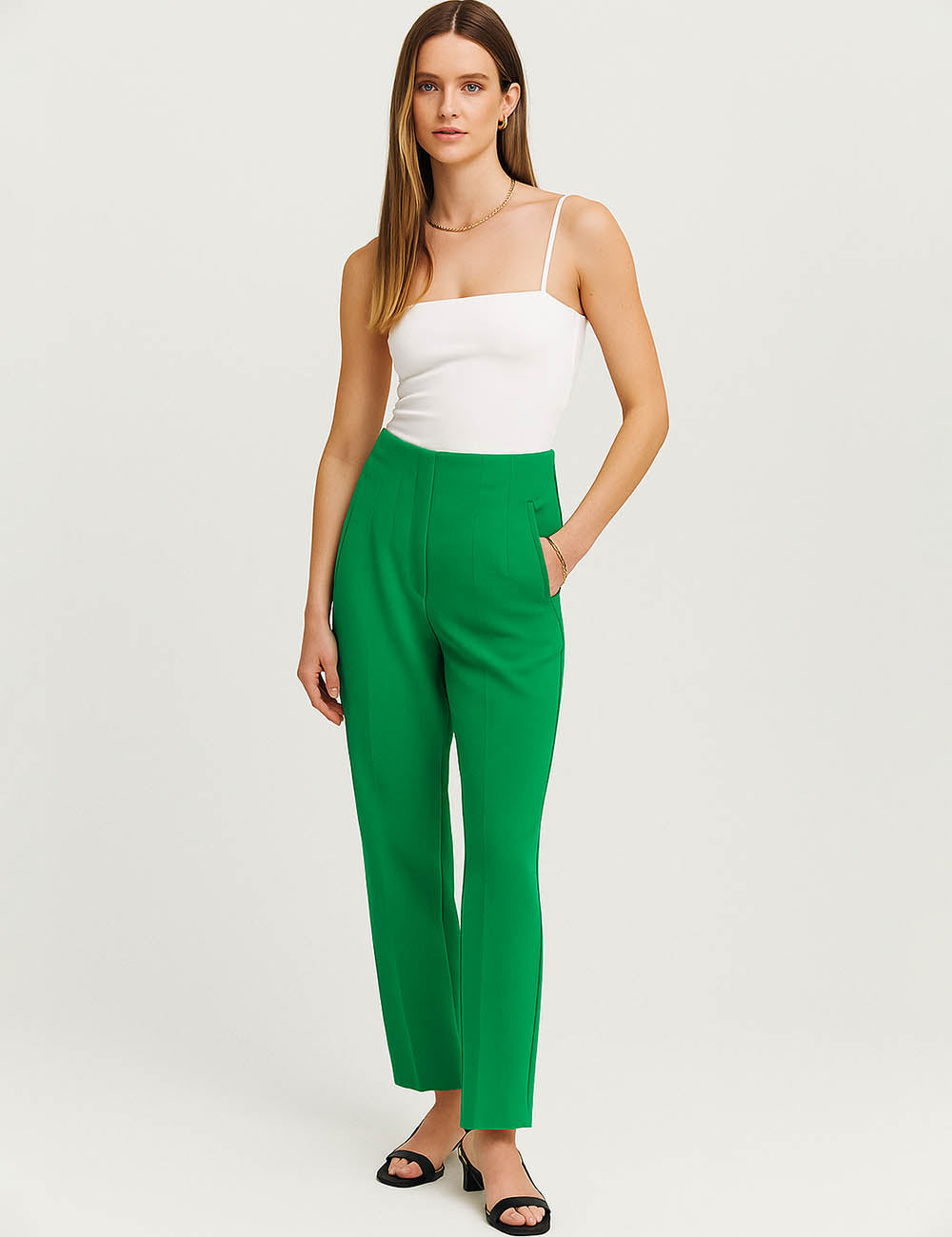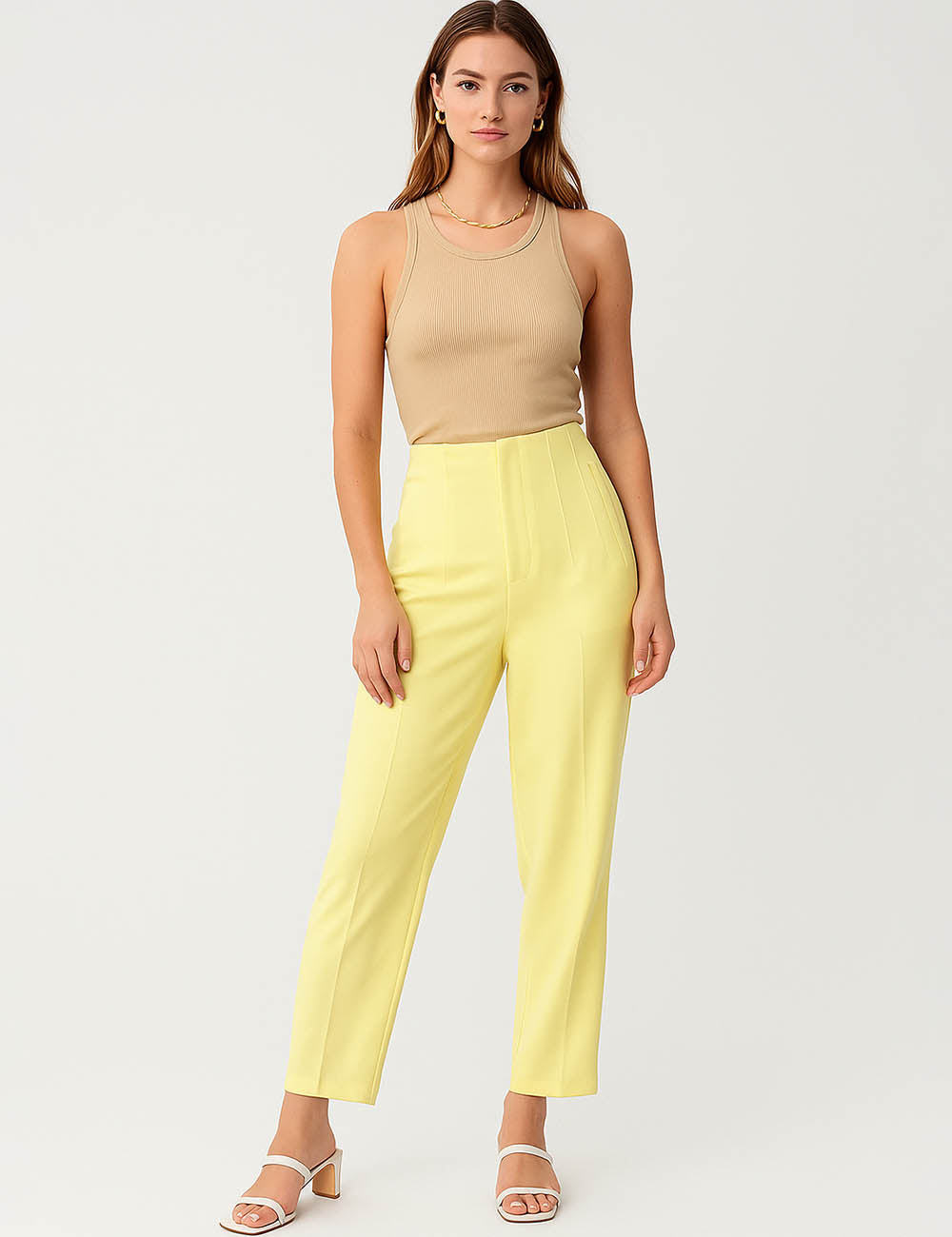 Ladies Solid Color Tailored Straight Leg Pants