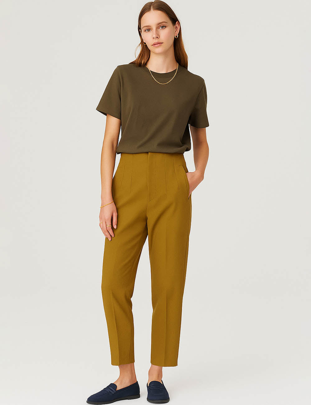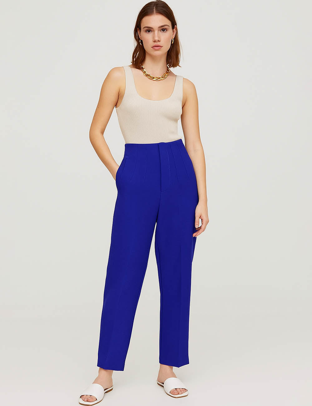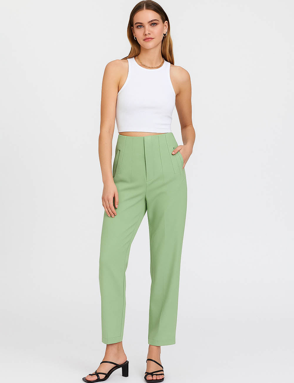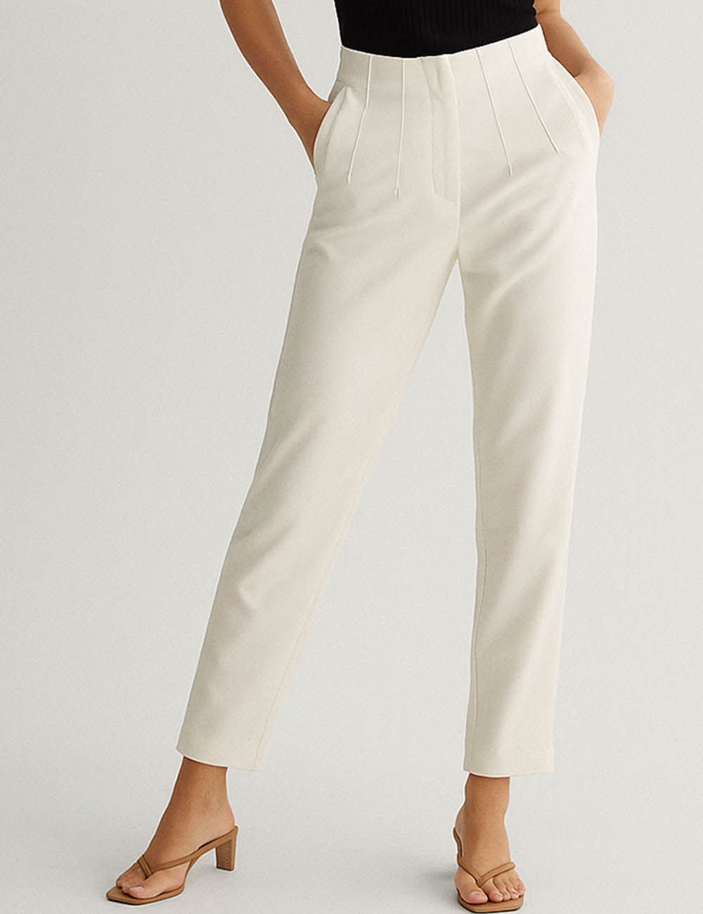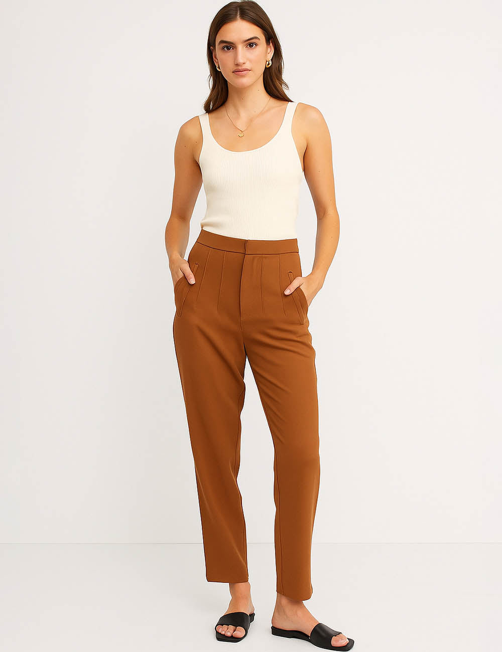 Ladies Solid Color Tailored Straight Leg Pants