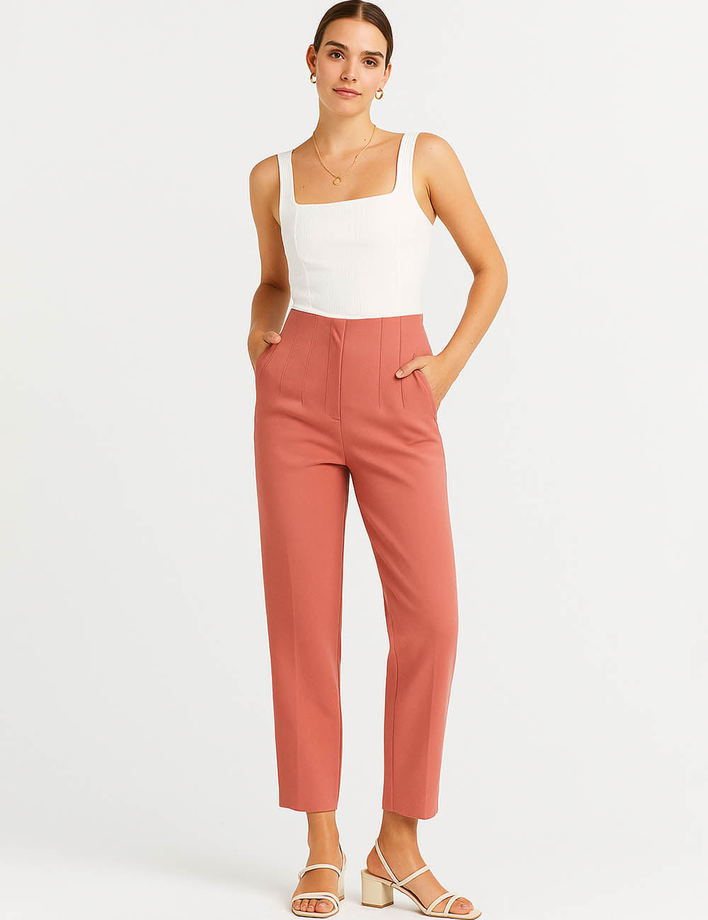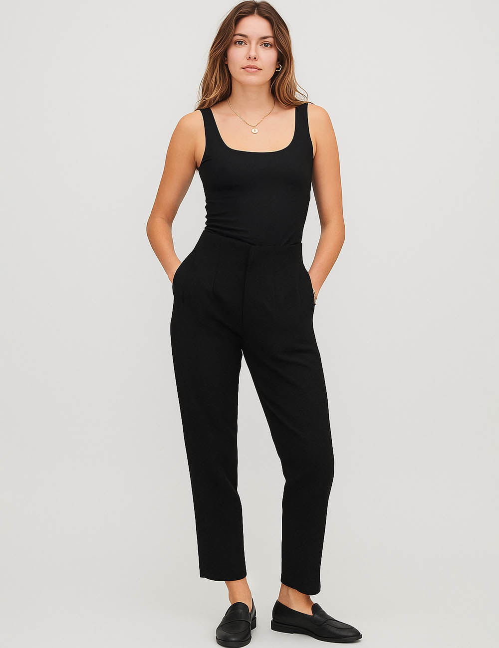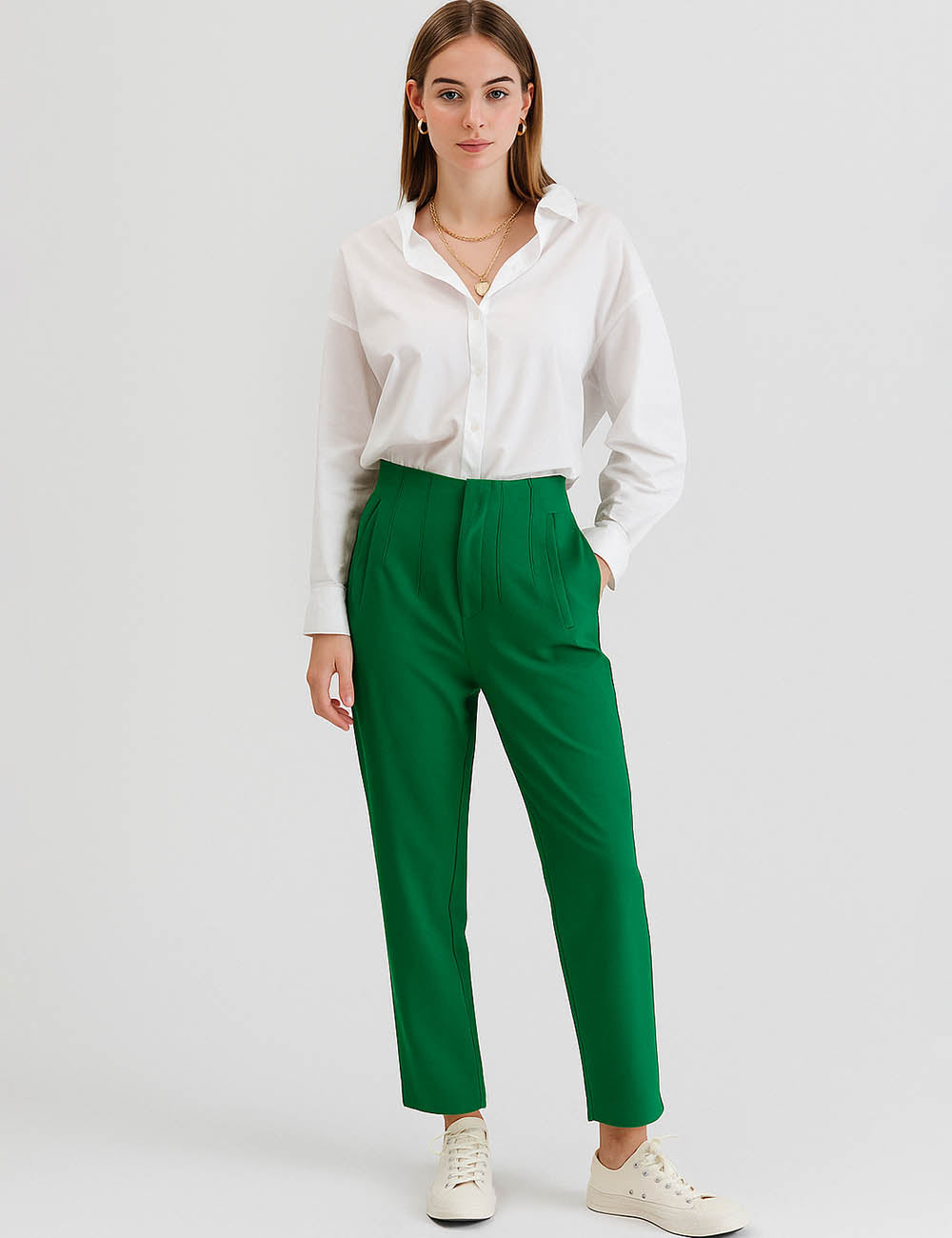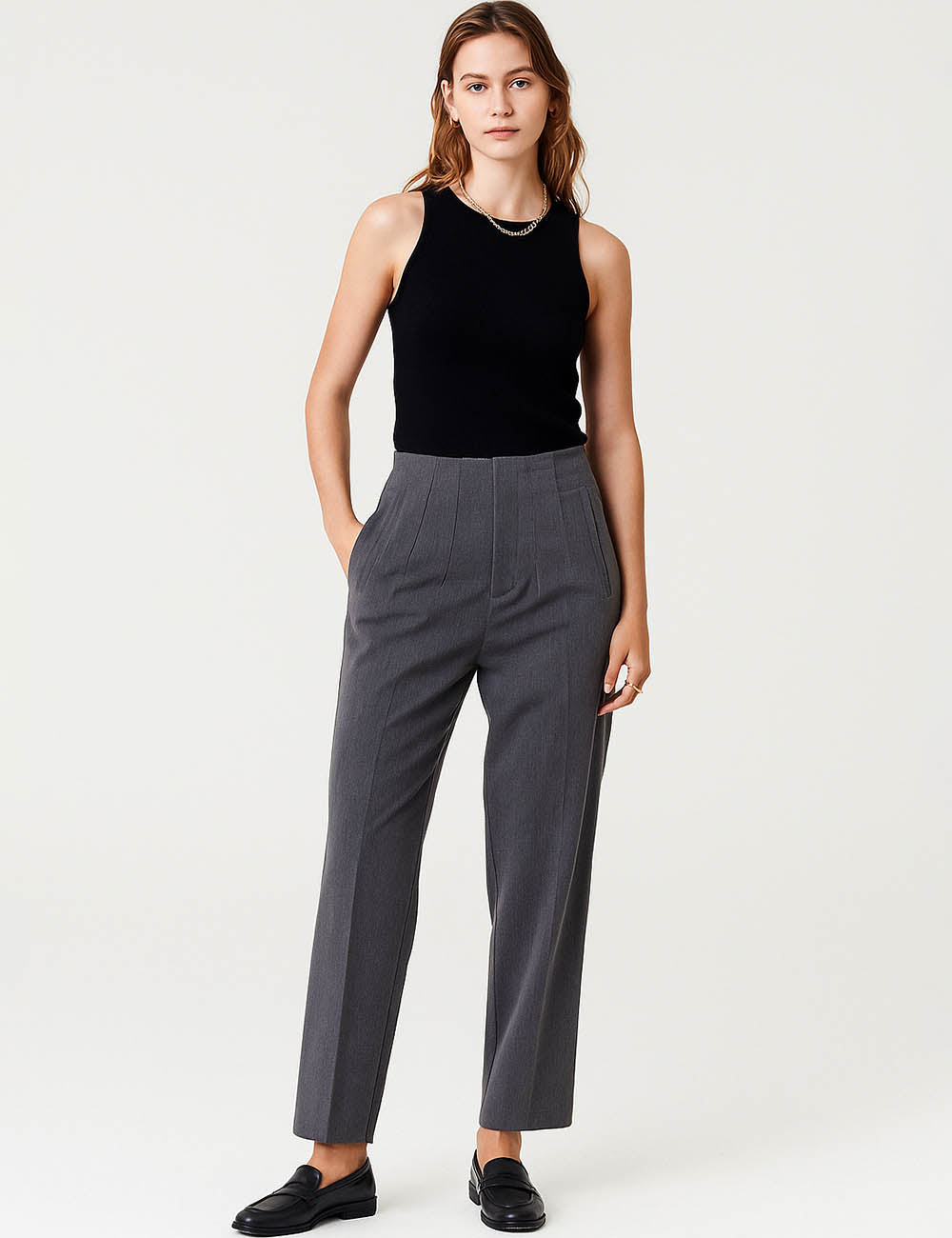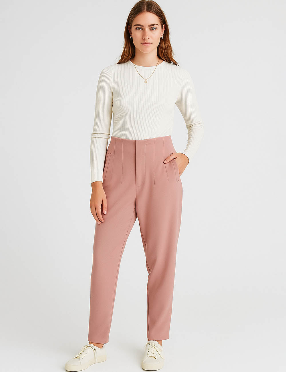 Ladies Solid Color Tailored Straight Leg Pants