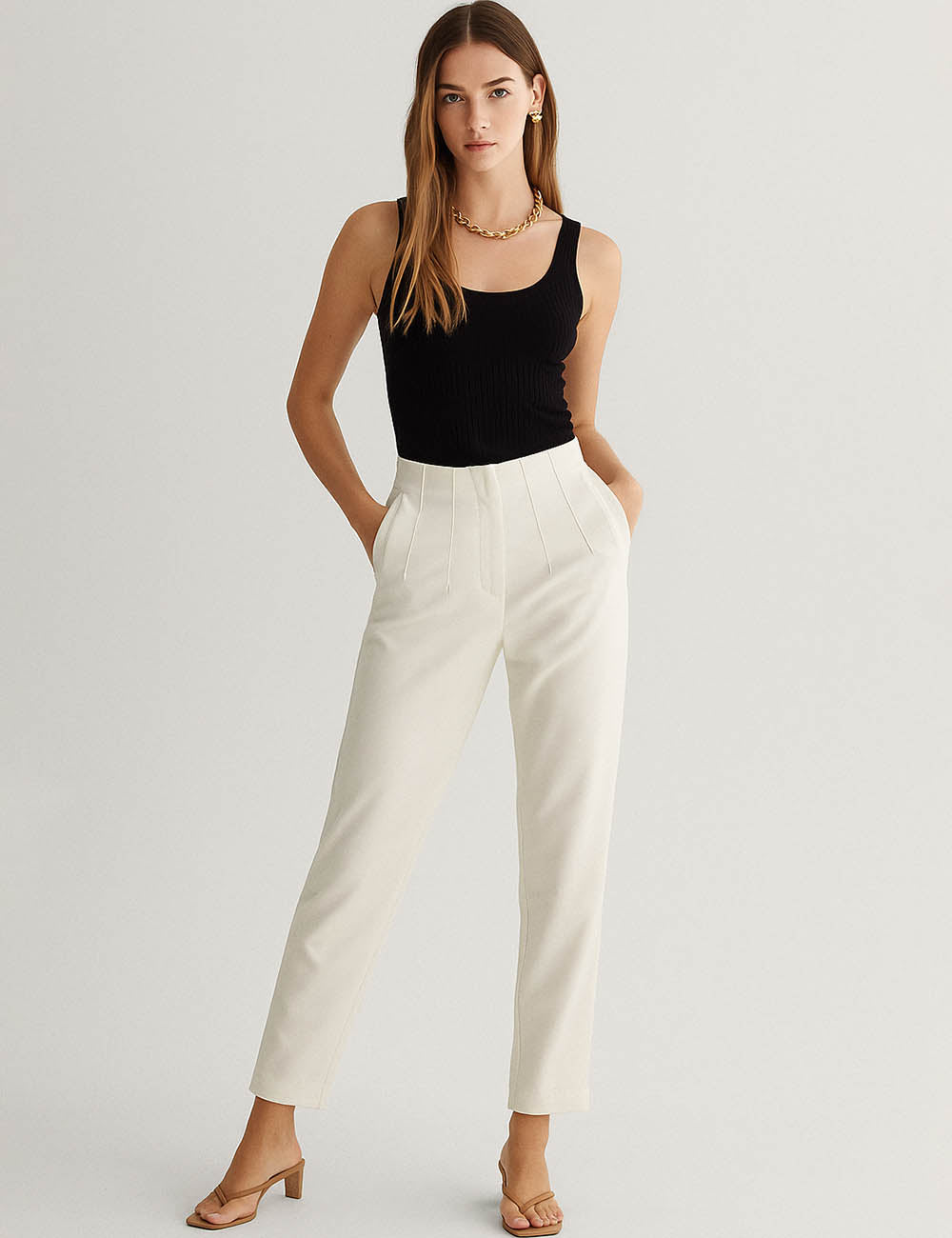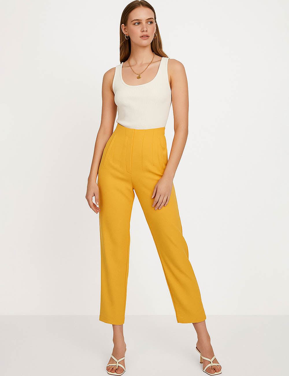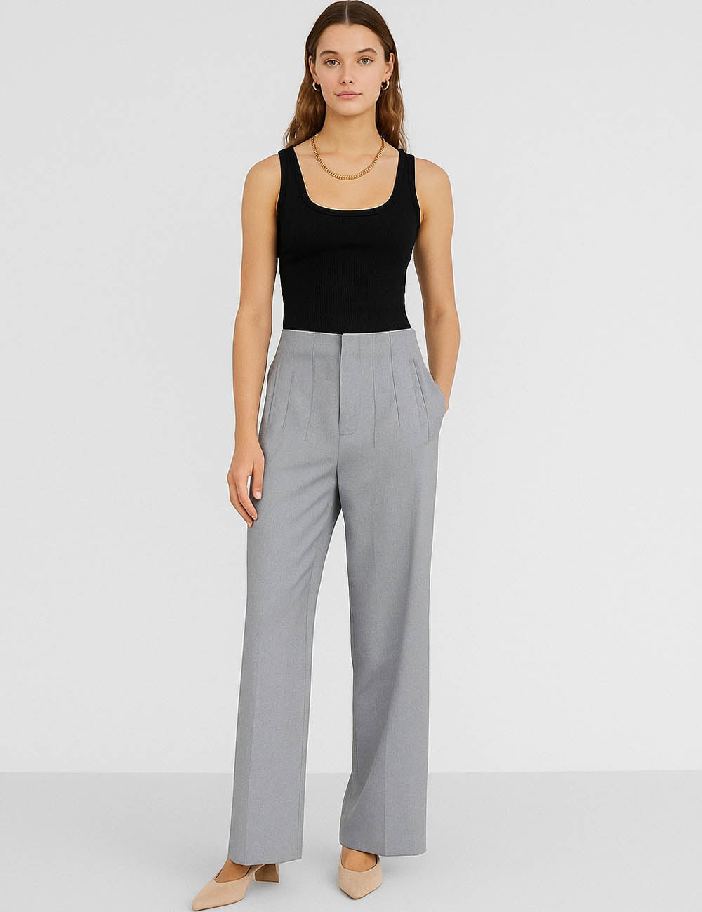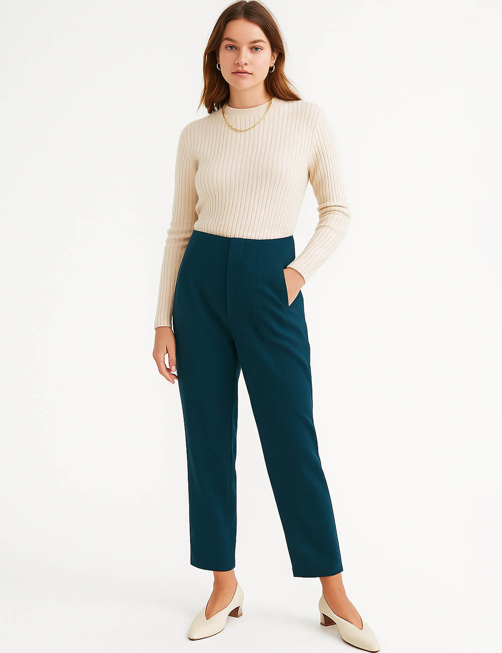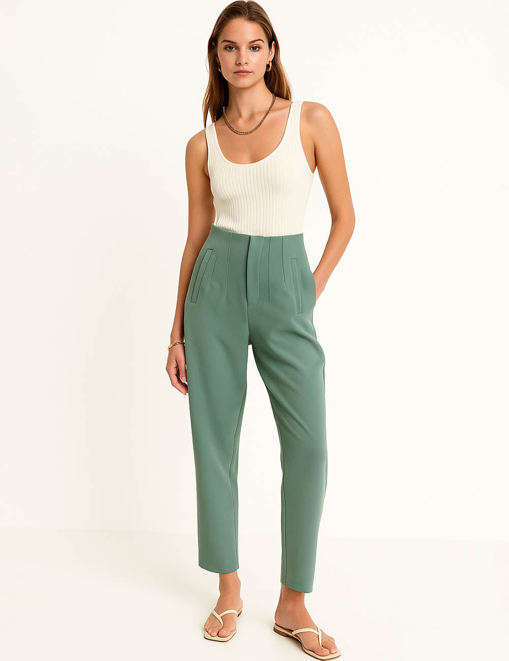 Ladies Solid Color Tailored Straight Leg Pants