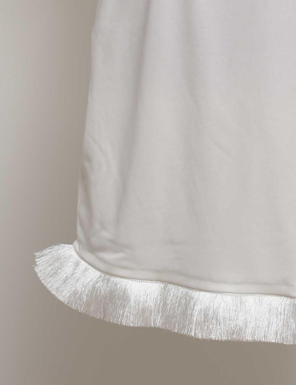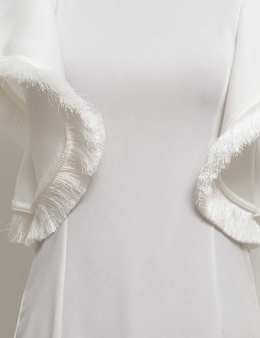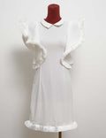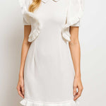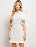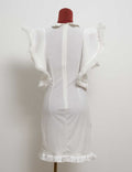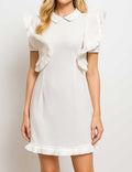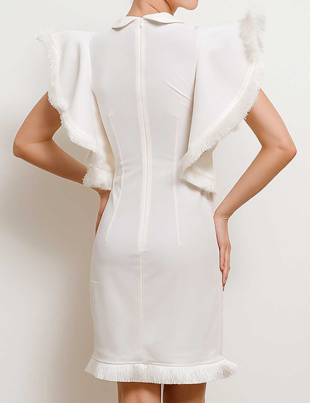 Ladies Solid Color Fringe Trim Ruffle Sleeves Mini Dress