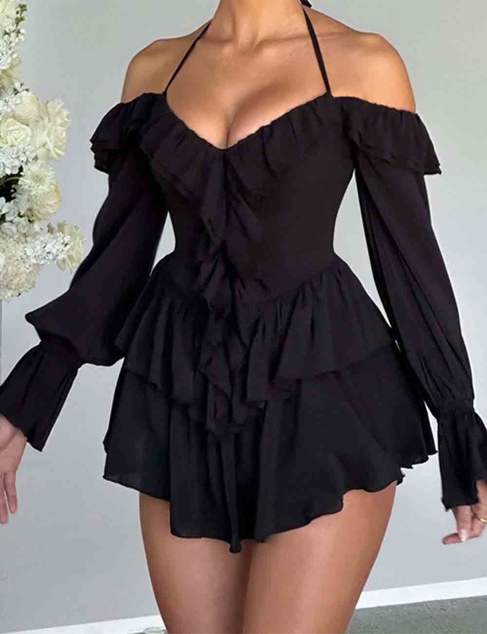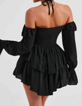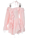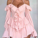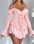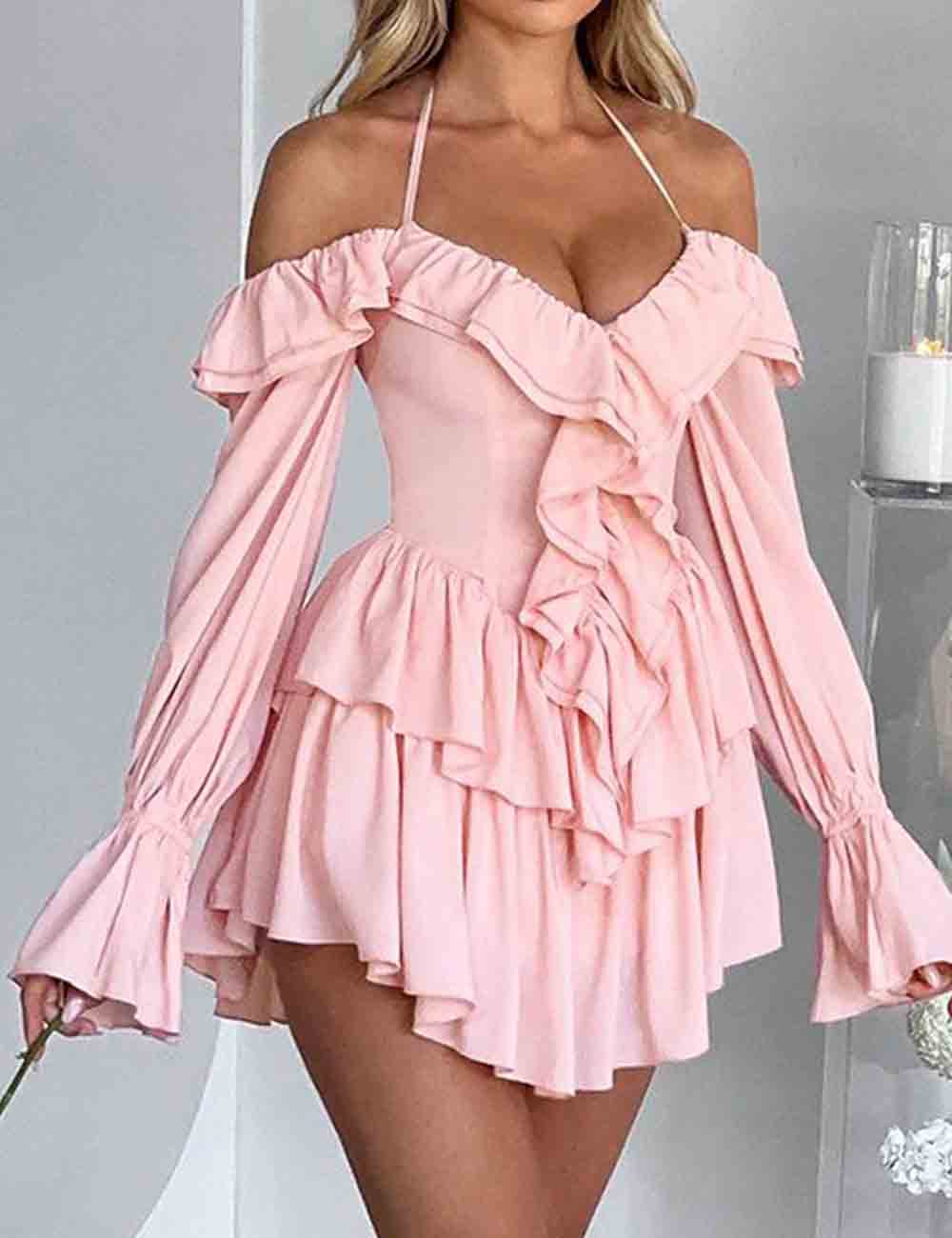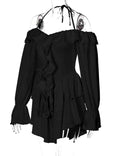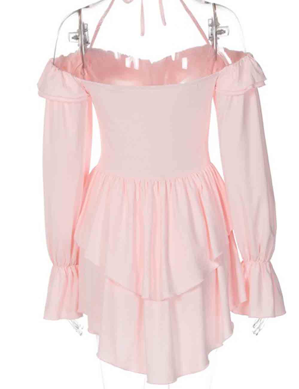 Ladies Solid Color Halter Long Sleeves Mini Dress