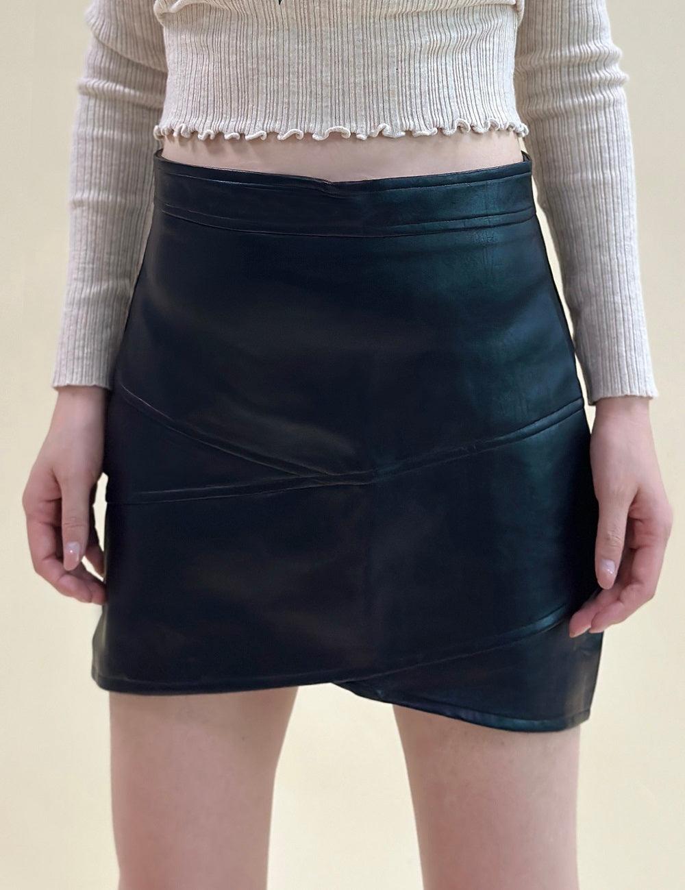 Ladies Solid Color High Waist PU Mini Skirt SKS0819