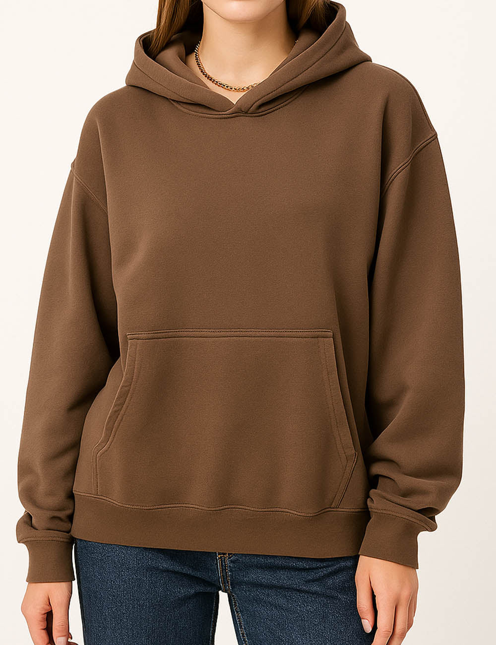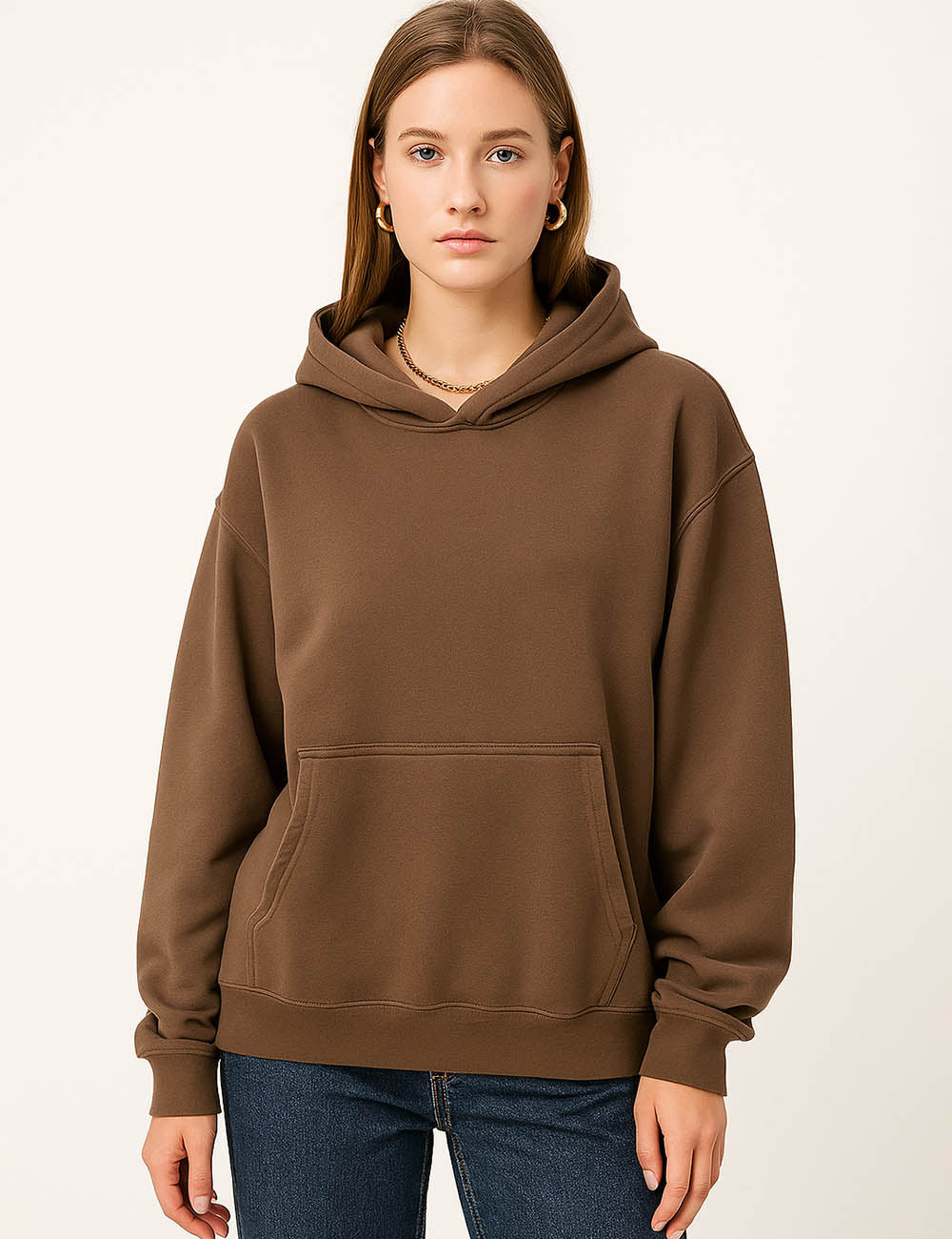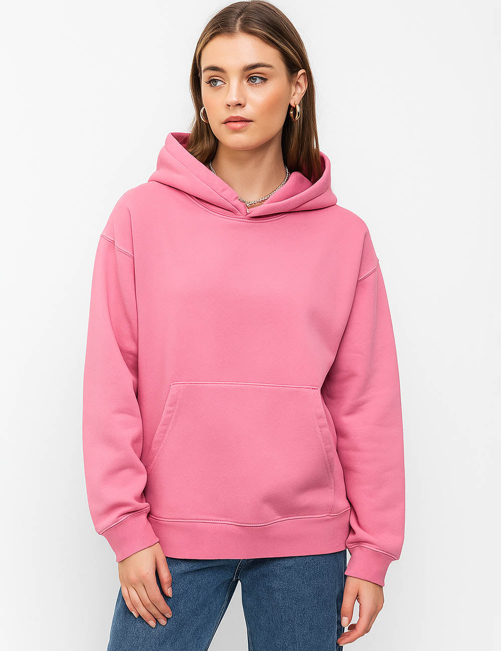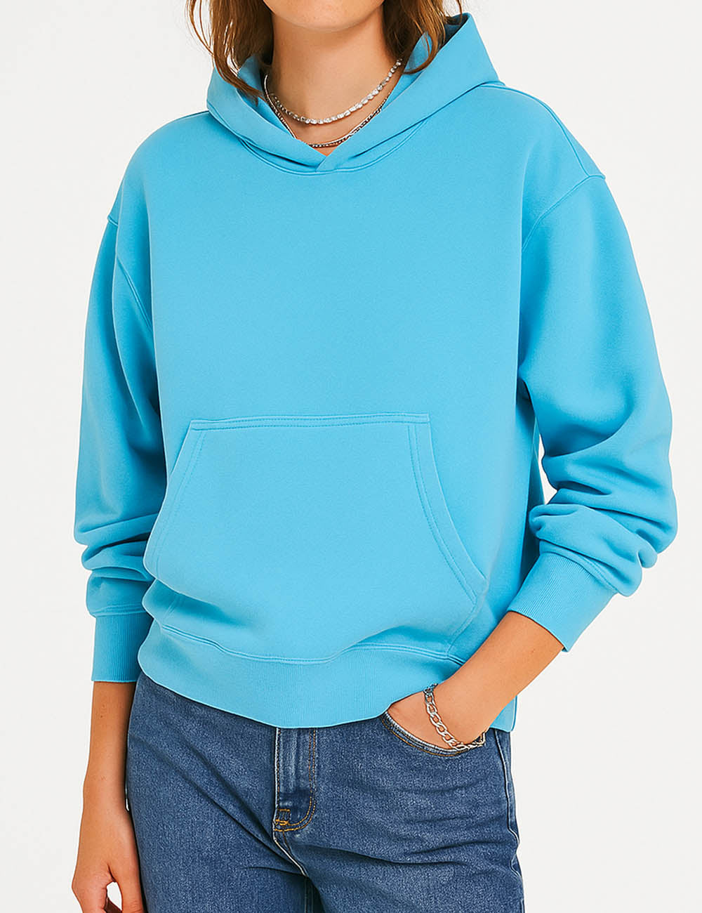 Ladies Solid Color Hooded Collar Kangaroo Pocket Sweatshirt