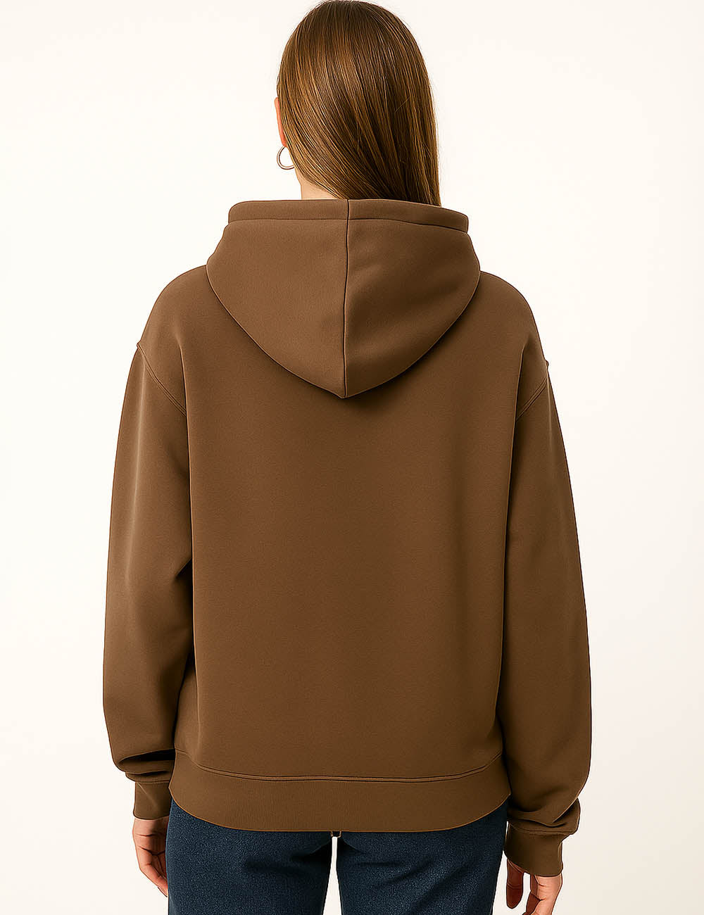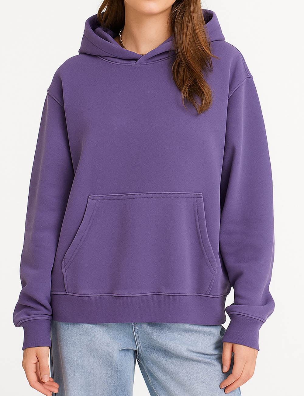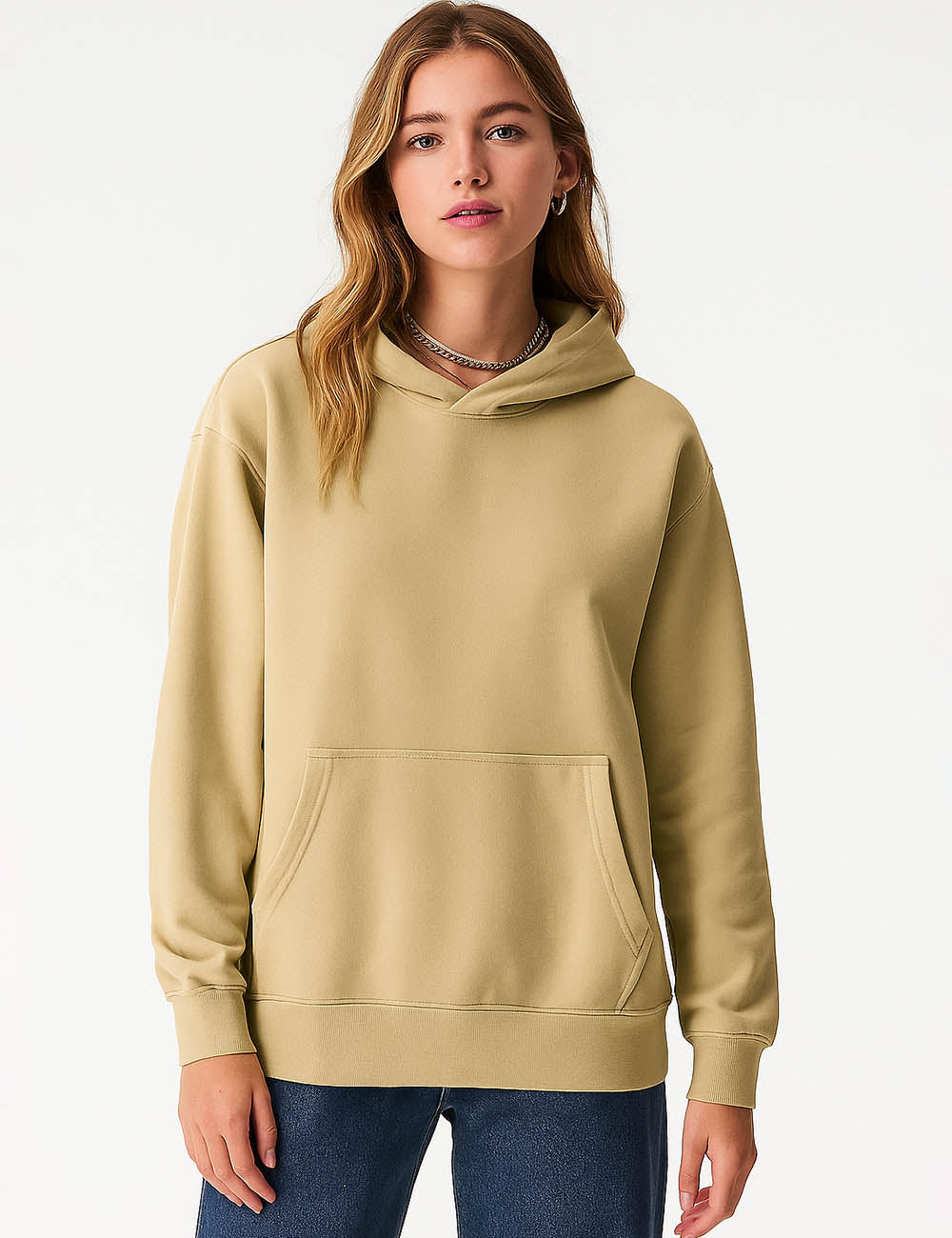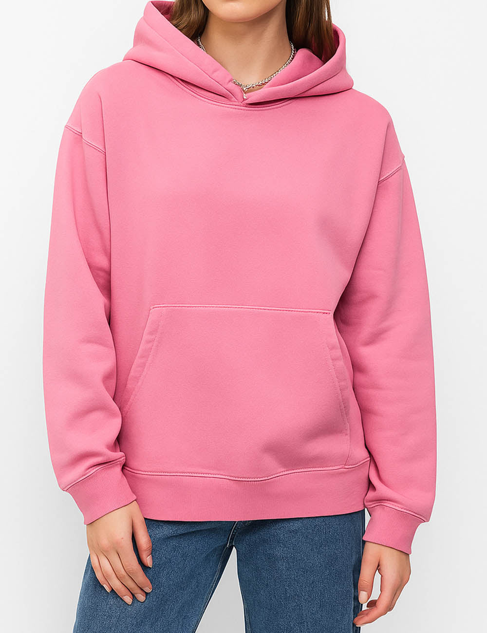 Ladies Solid Color Hooded Collar Kangaroo Pocket Sweatshirt