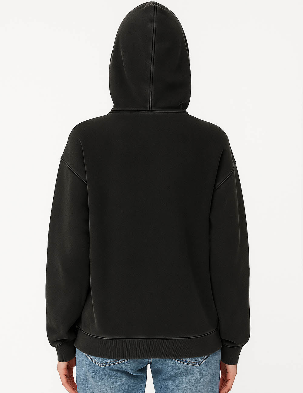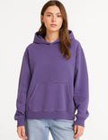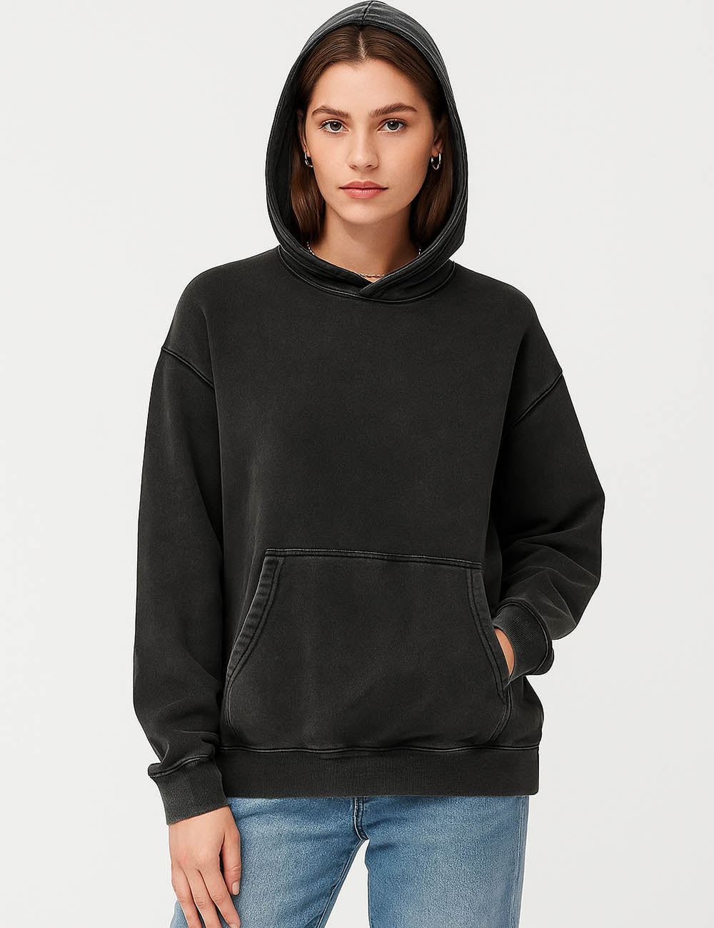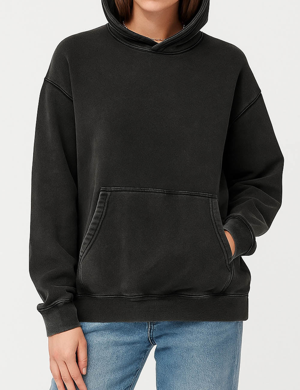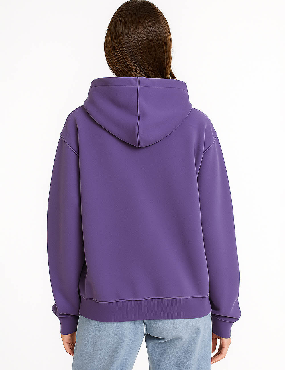 Ladies Solid Color Hooded Collar Kangaroo Pocket Sweatshirt