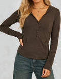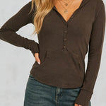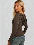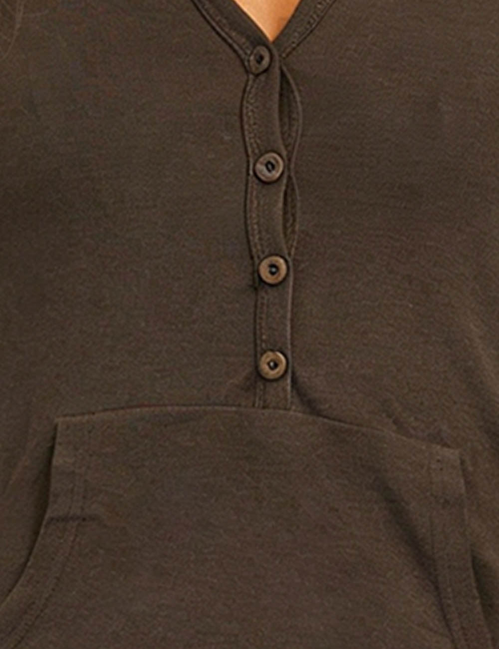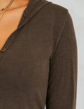 Ladies Solid Color Hooded Long Sleeves Henley Layering Top