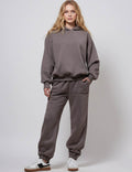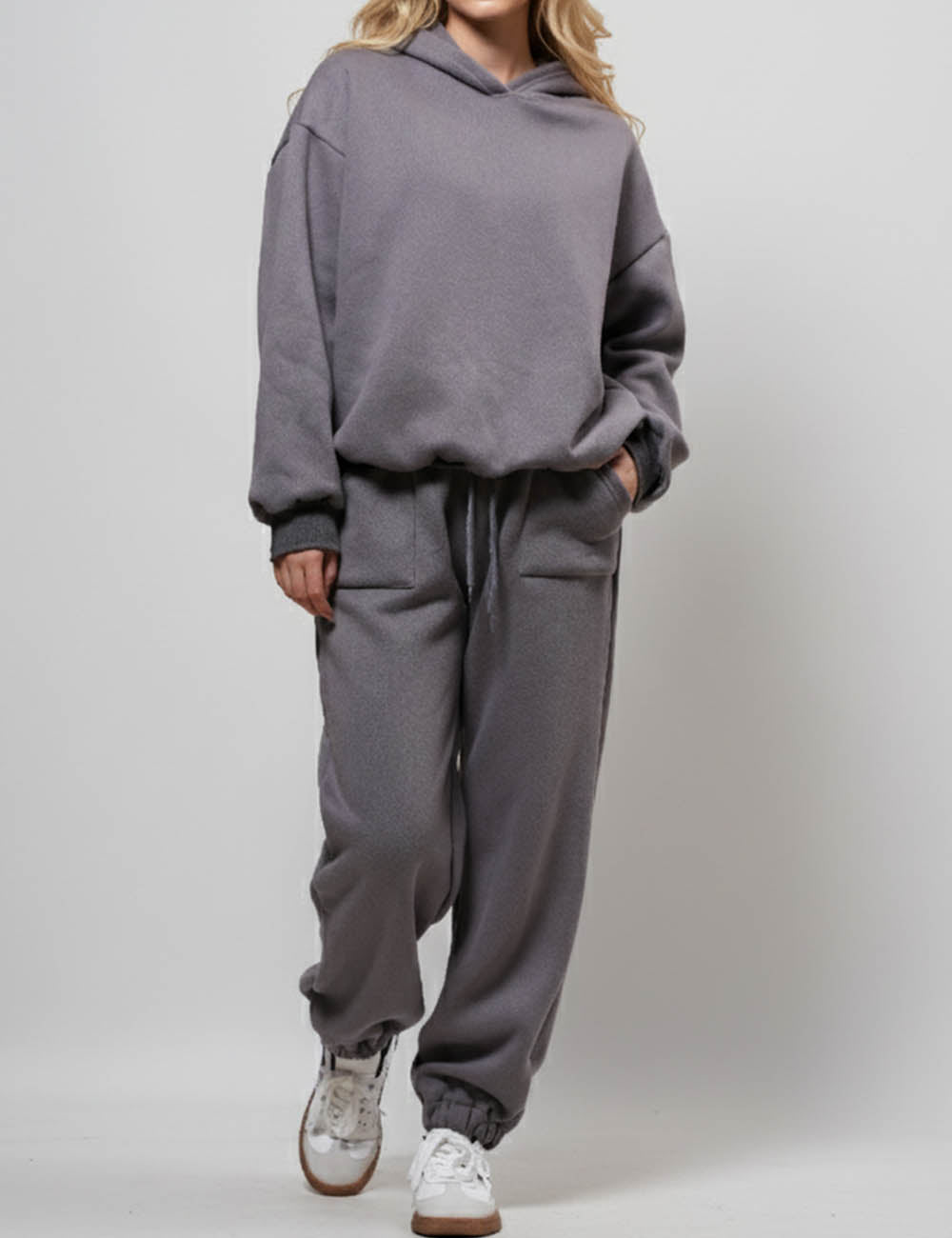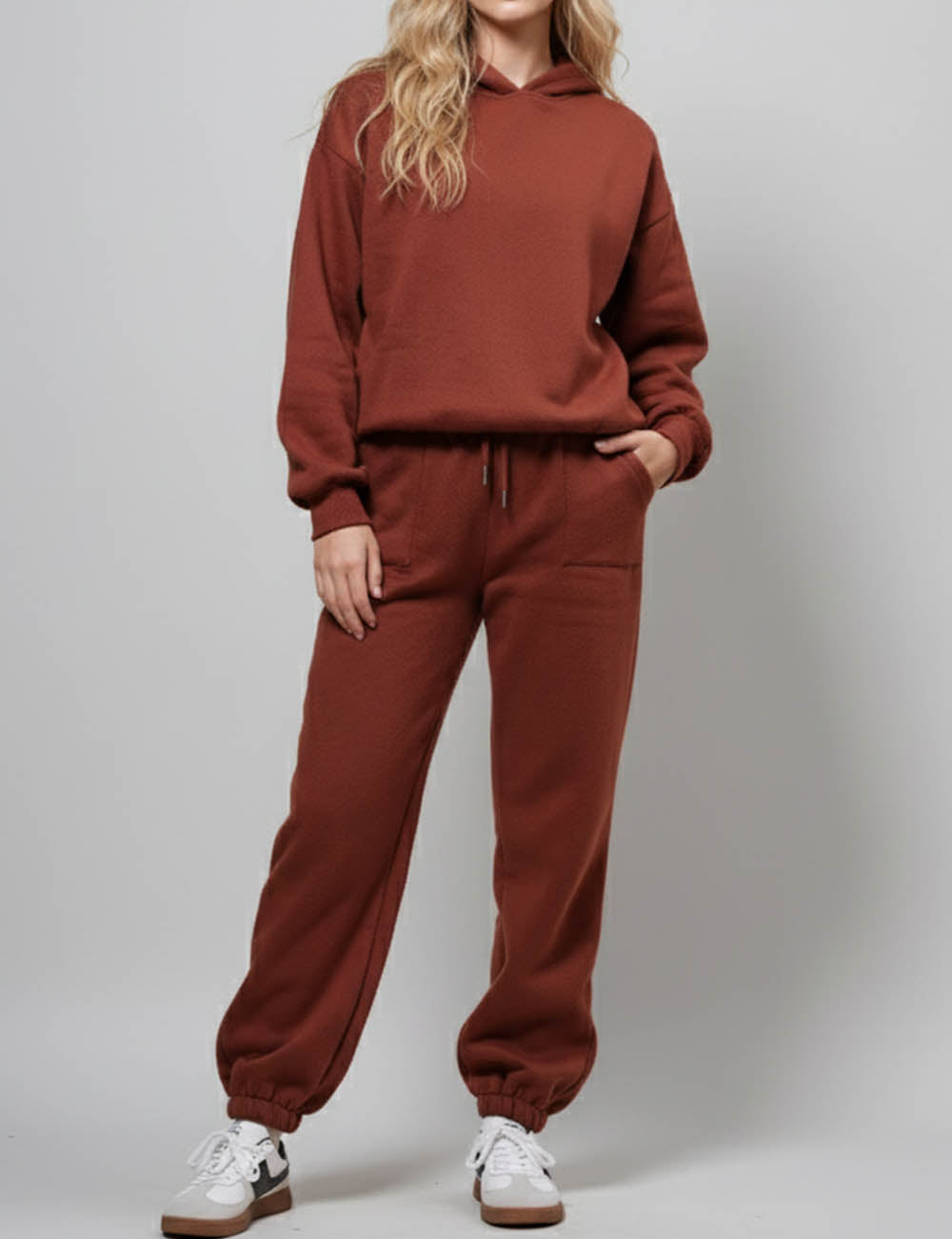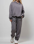 Ladies Solid Color Hoodie and Pants Sets 211337