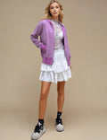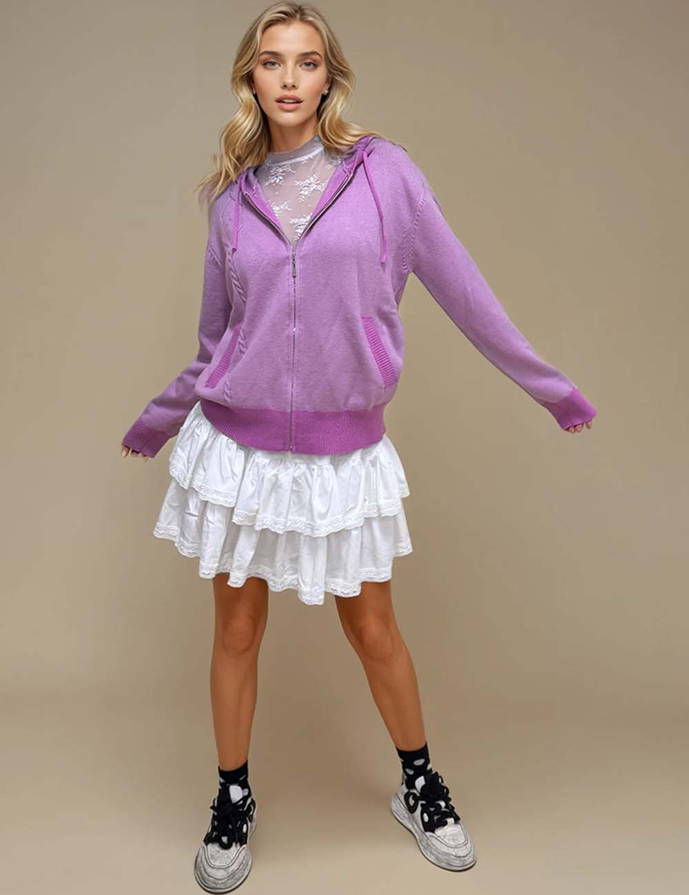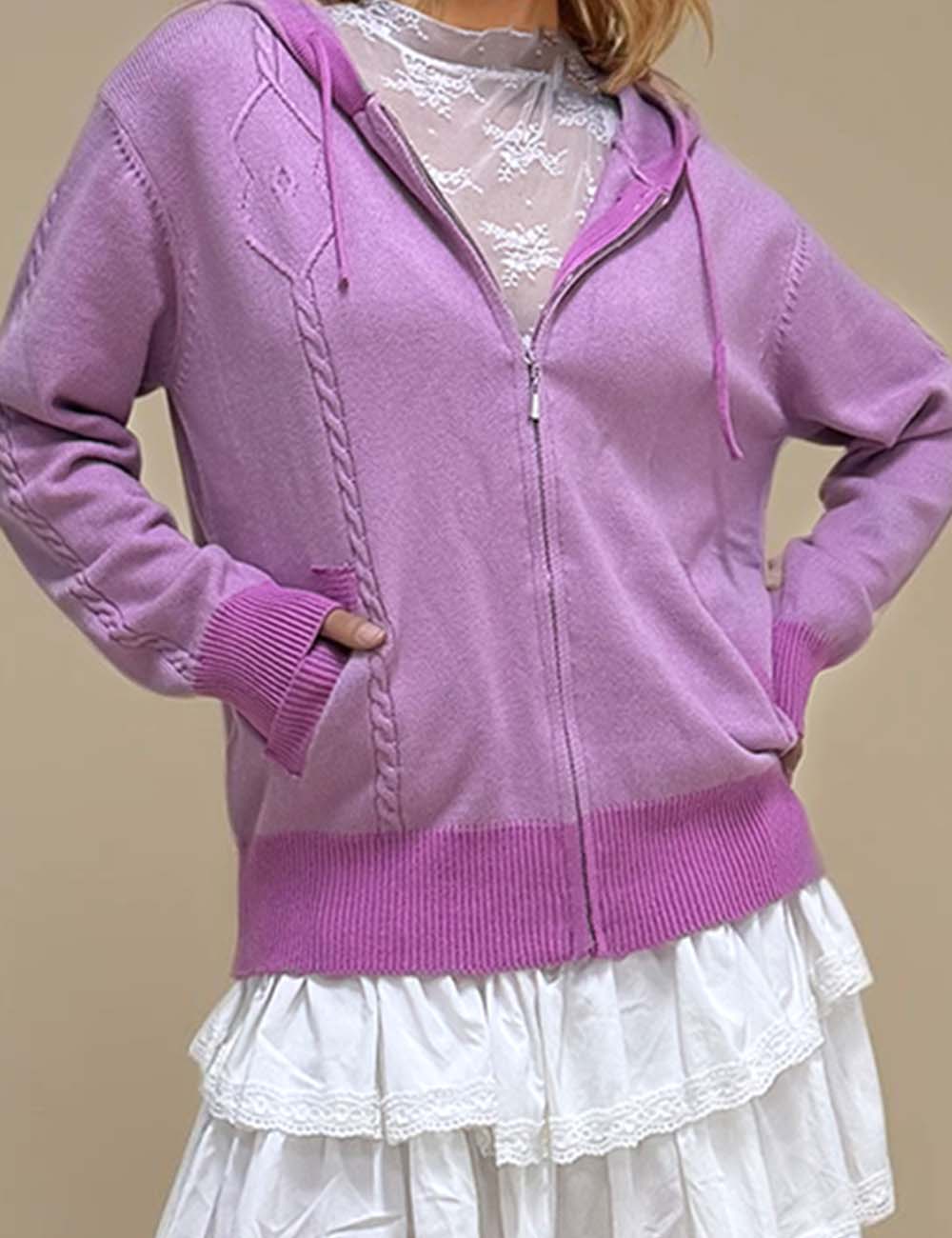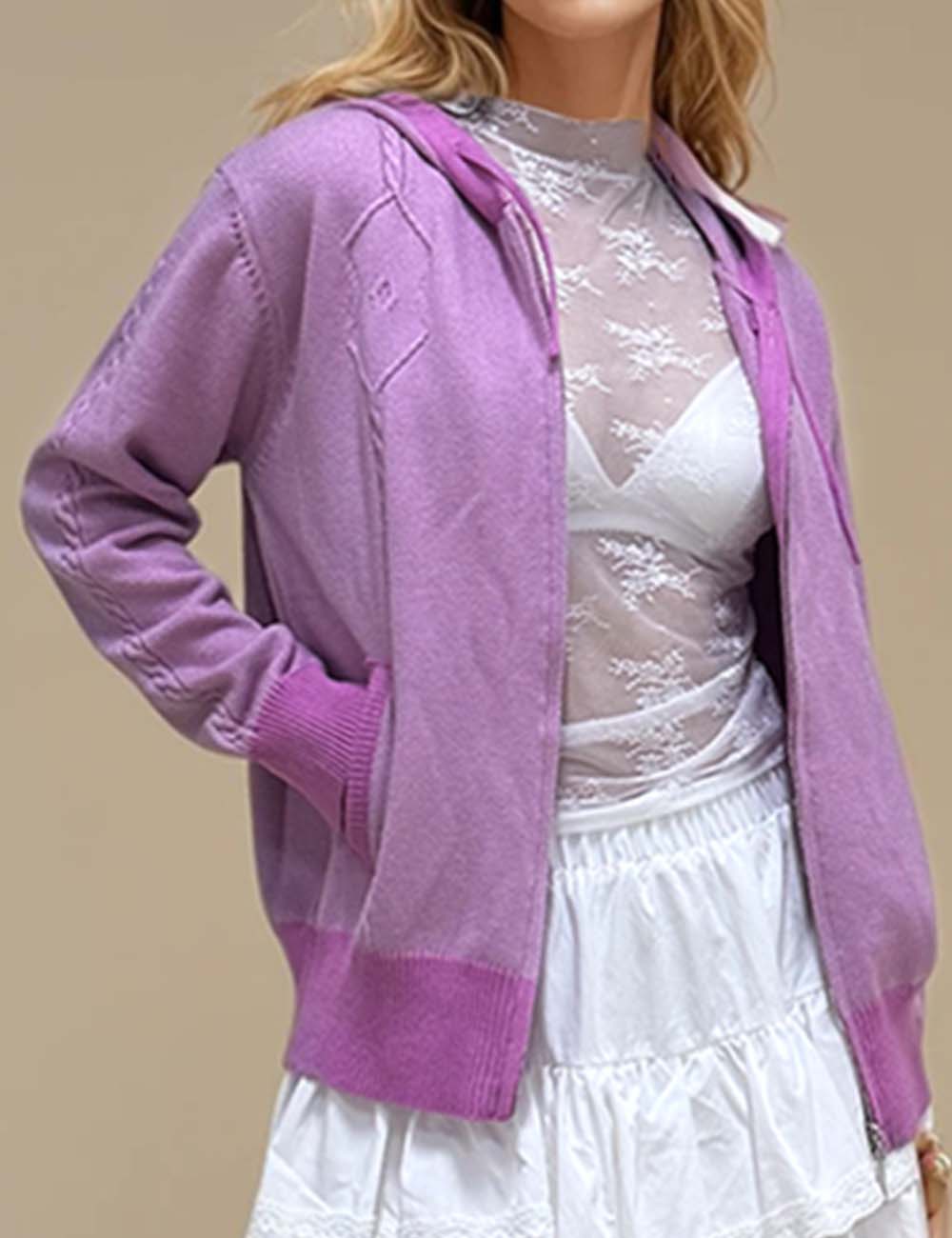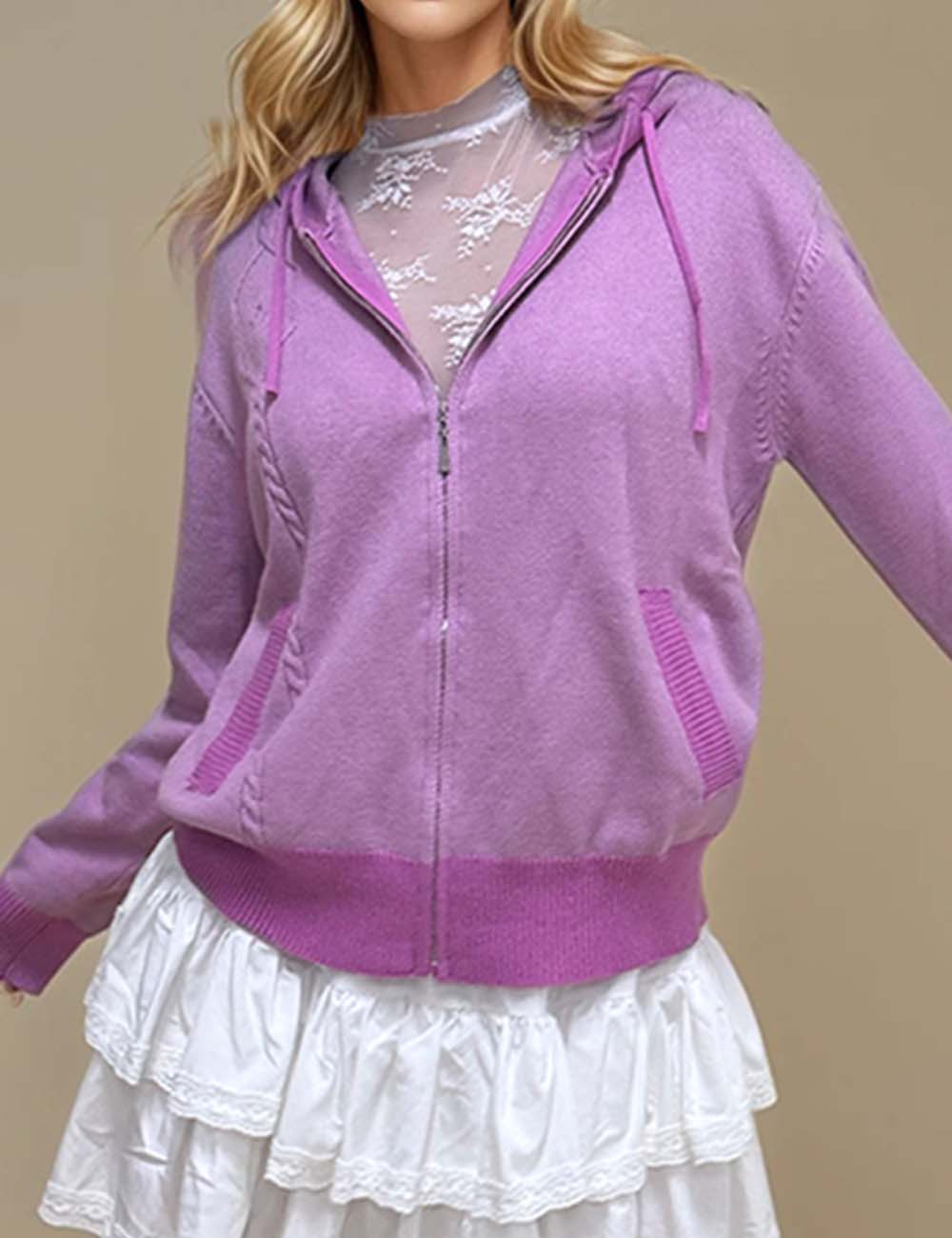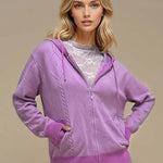 Ladies Solid Color Hoodie Cardigan Zipper Pocket Sweater Coat