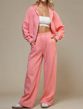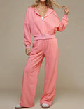 Ladies Solid Color Hoodie Pants 2pcs Loungewear Set SKST50771