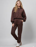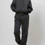 Ladies Solid Color Hoodie Pant 2PCS Daily Set 9261