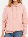 Ladies Solid Color Kangaroo Pockets Hooded Sweatshirt