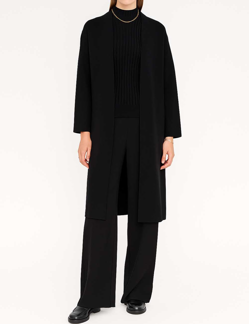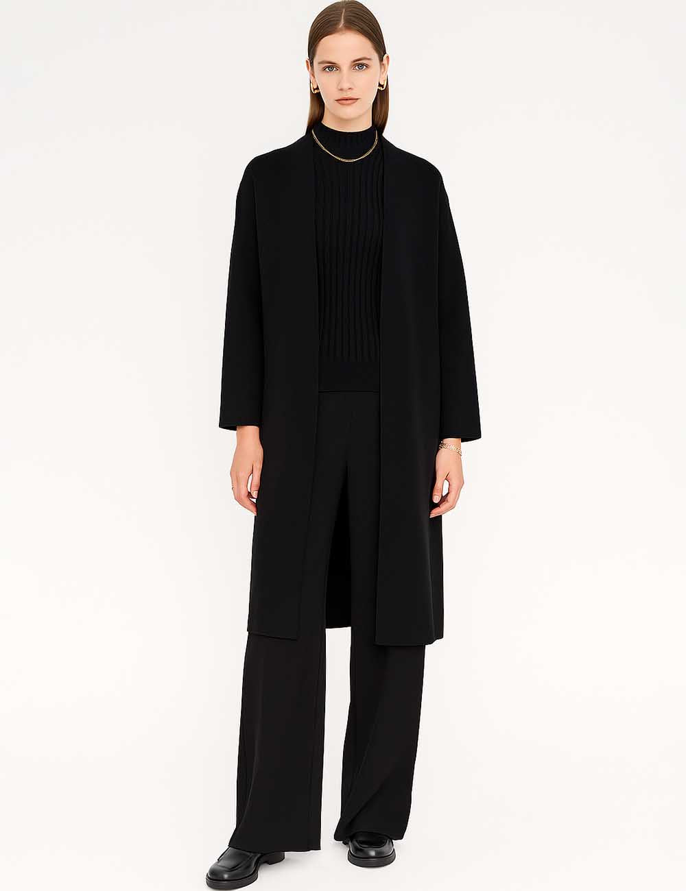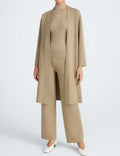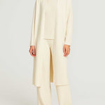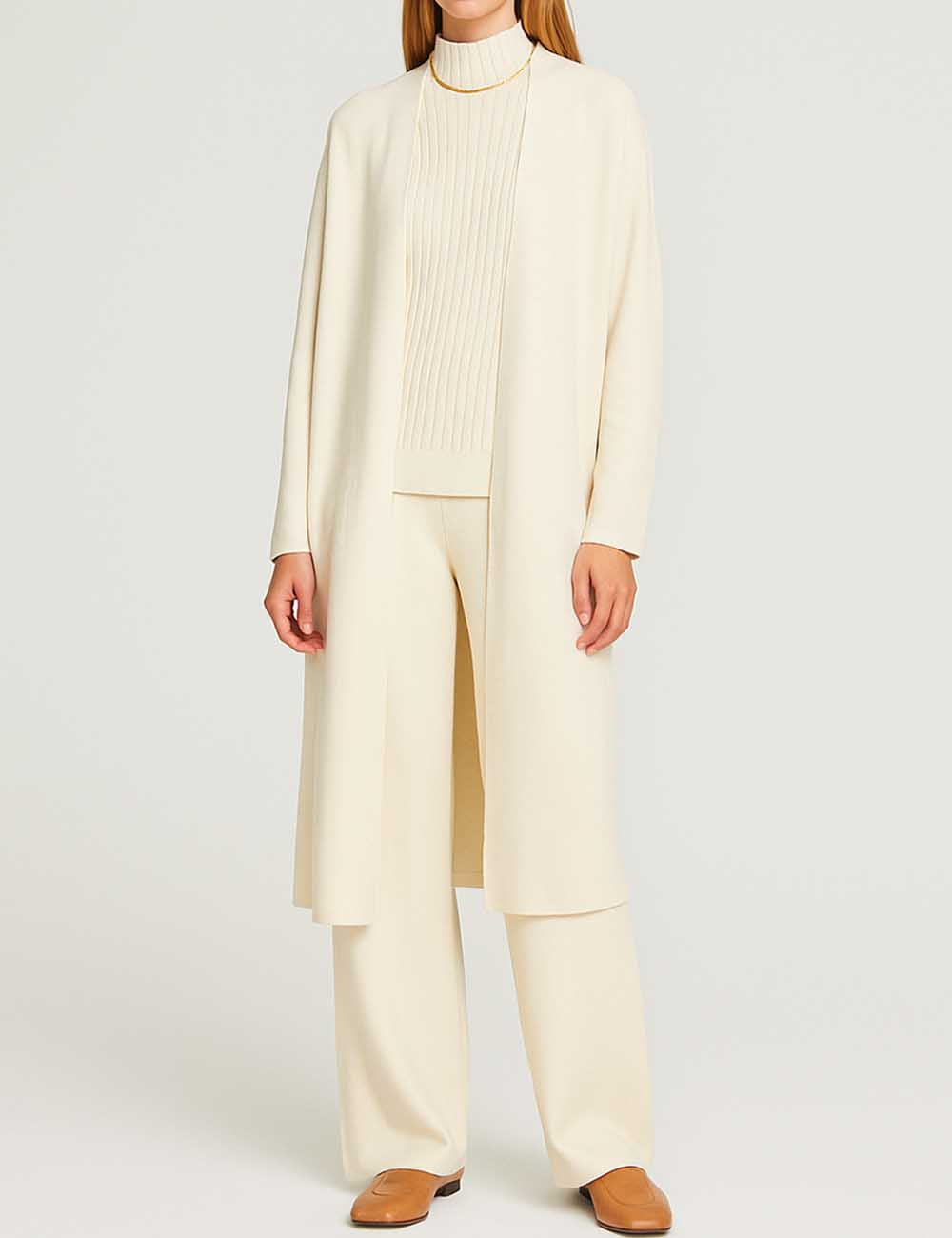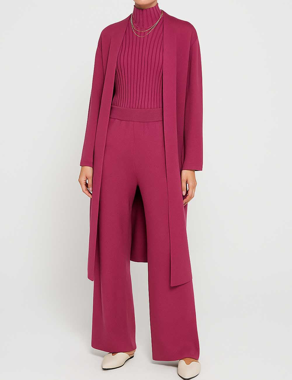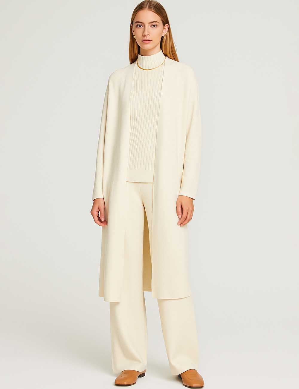 Ladies Solid Color Open Knit Cardigan & Pants 3PCS Set