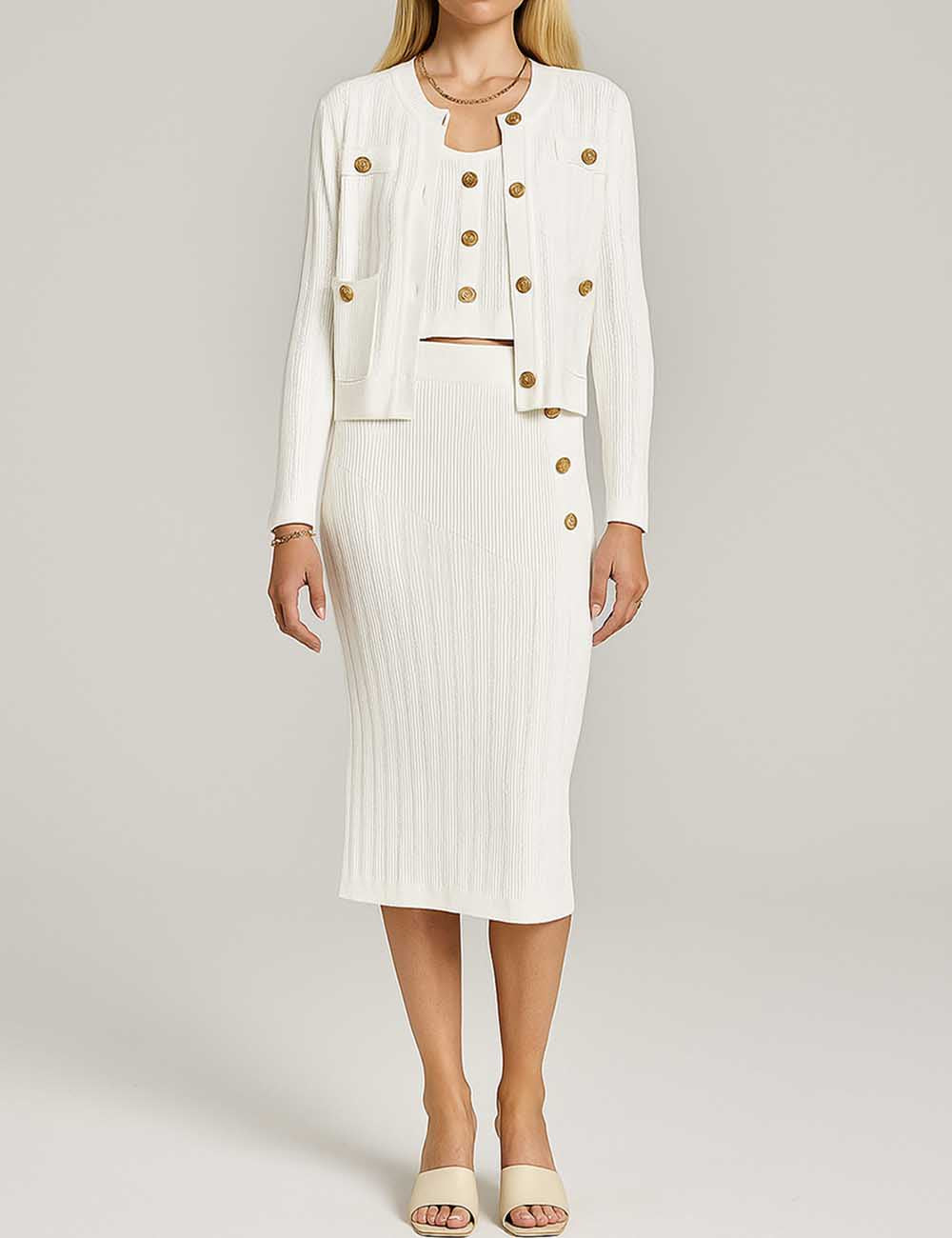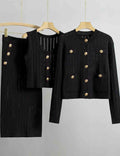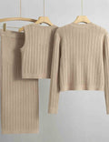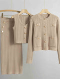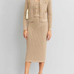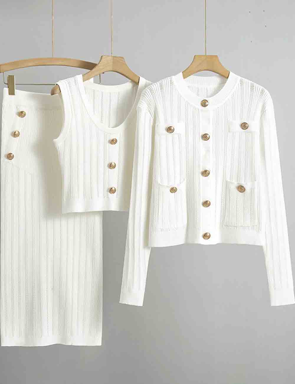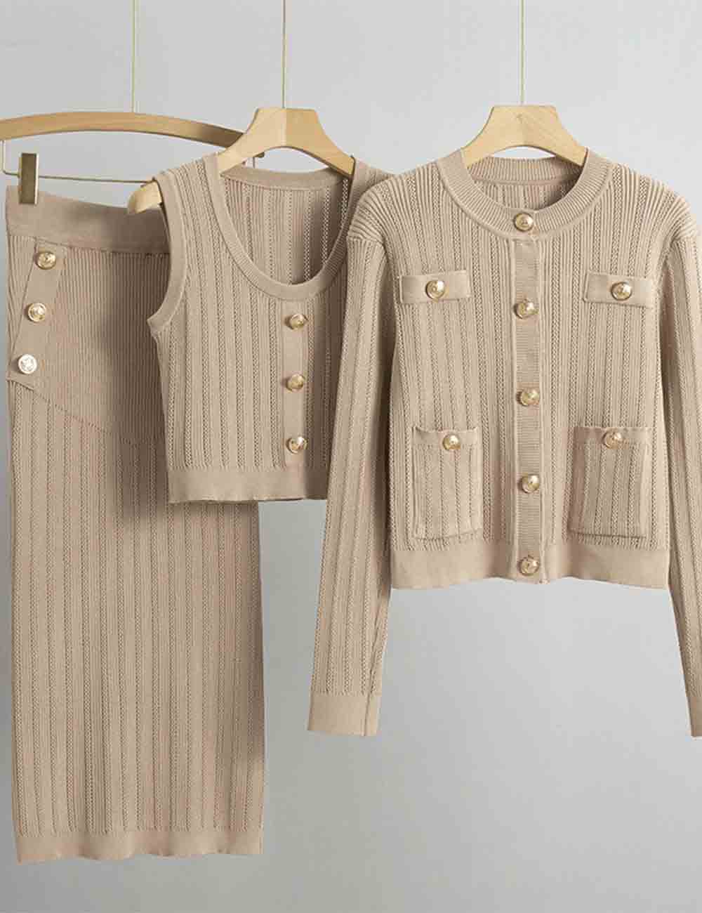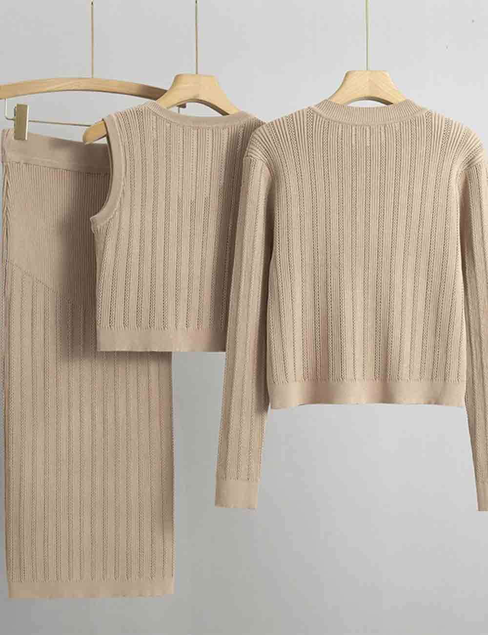 Ladies Solid Color Knit Vest & Cardigan & Skirt 3PCS Set