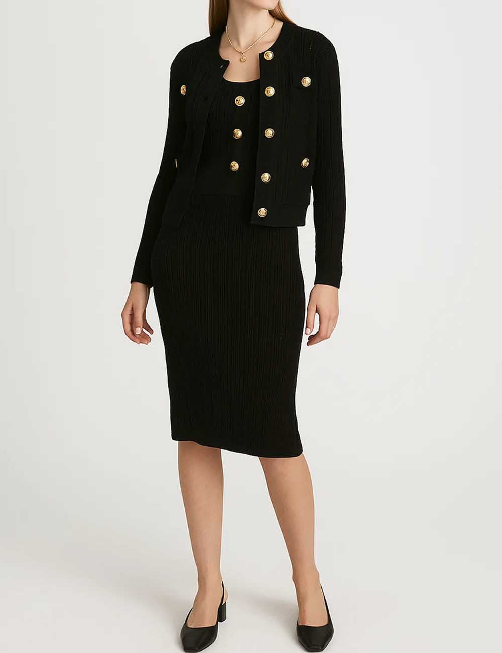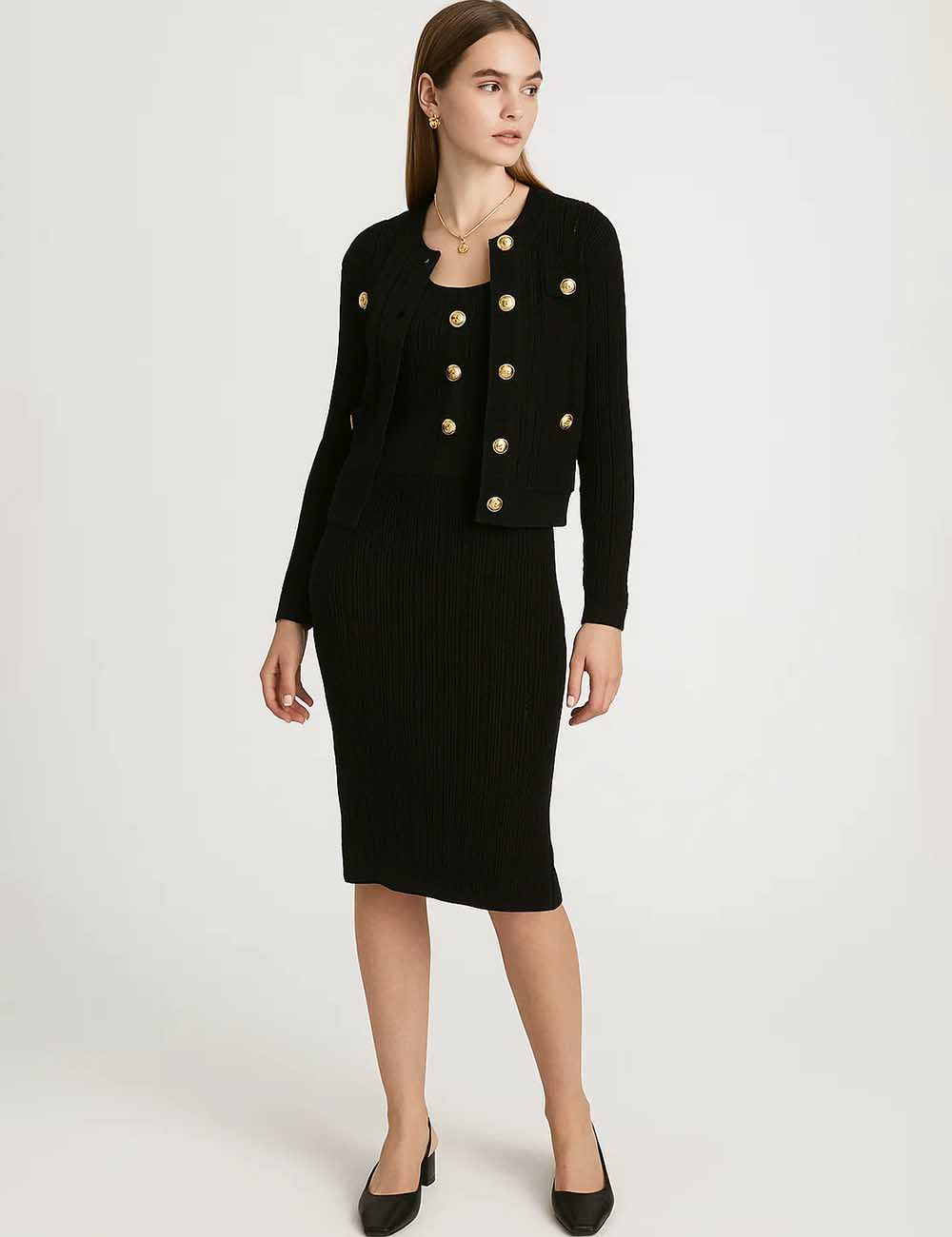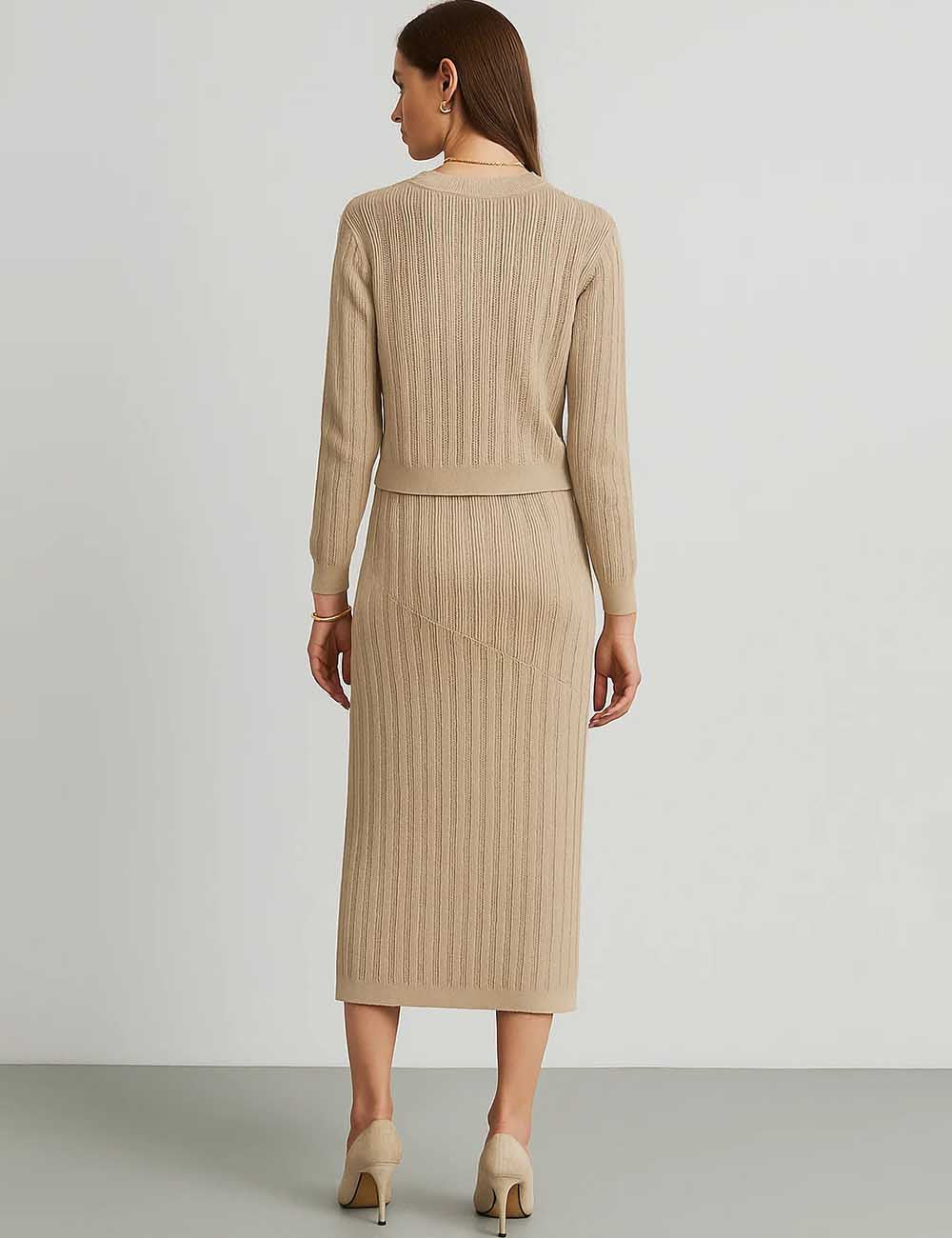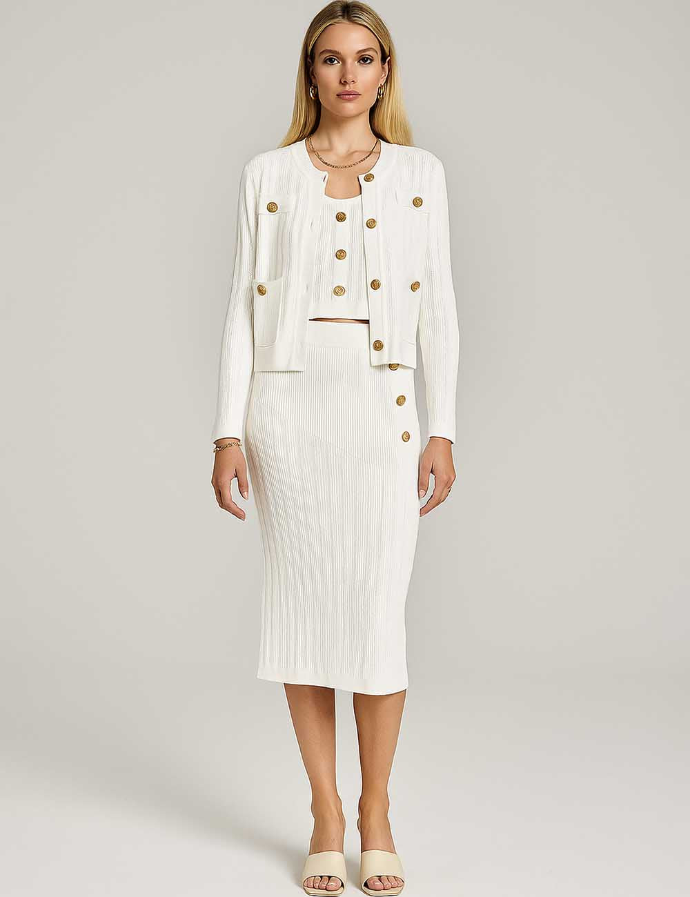 Ladies Solid Color Knit Vest & Cardigan & Skirt 3PCS Set