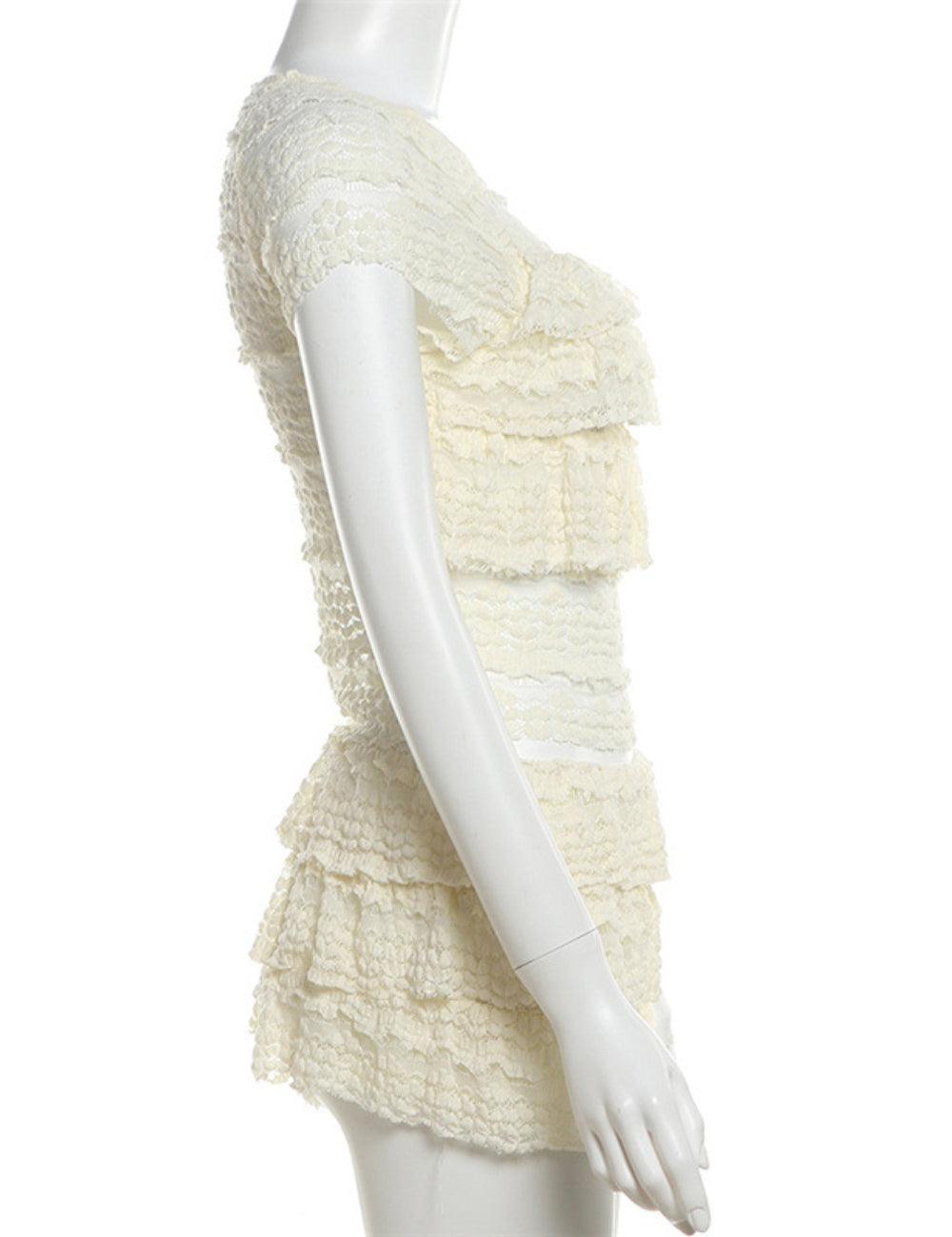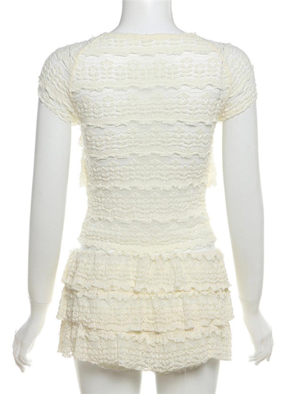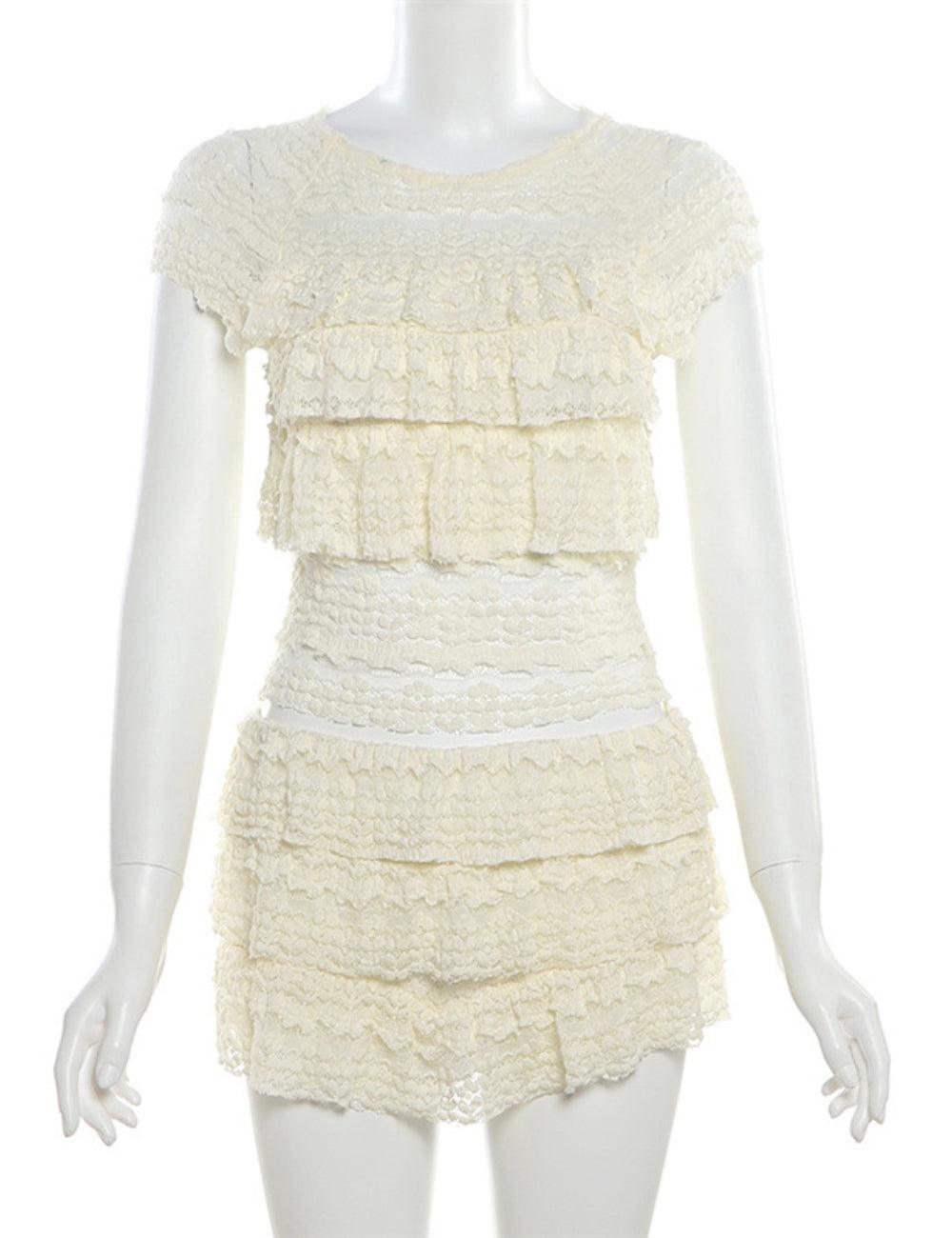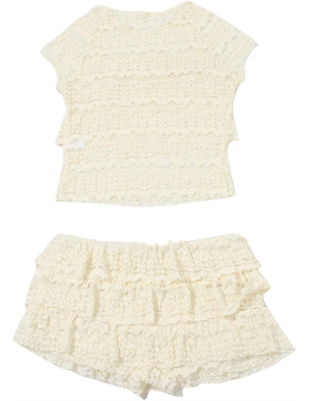 Ladies Solid Color Lace Tank Top and Shorts Set SKST5006