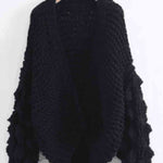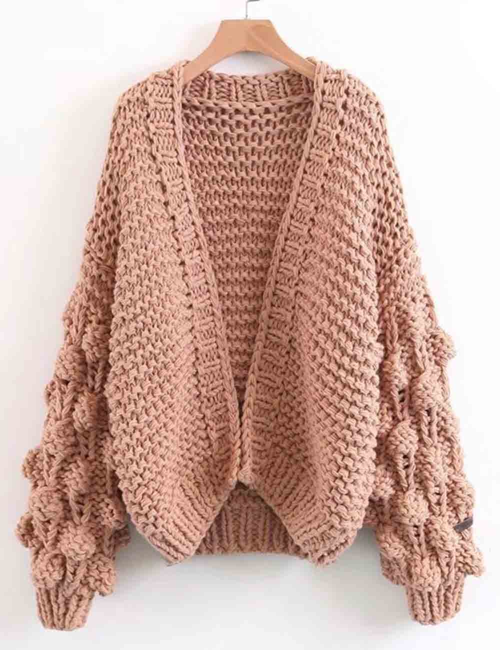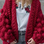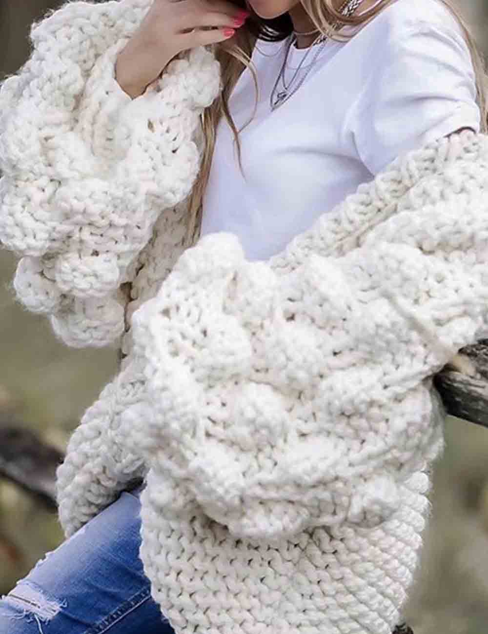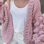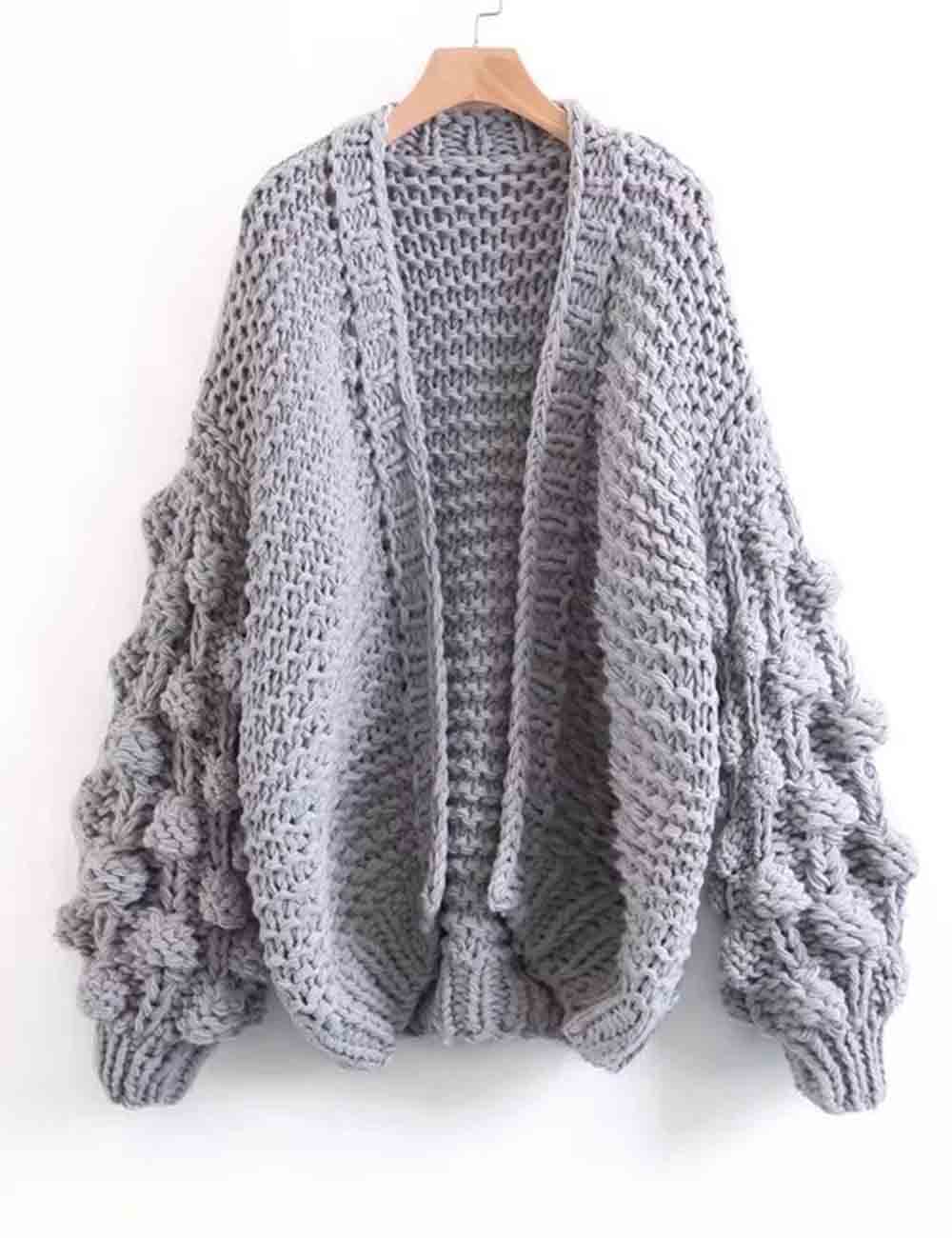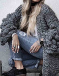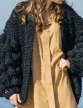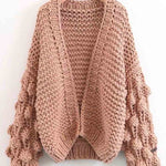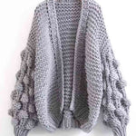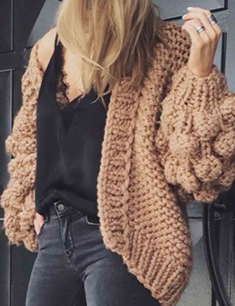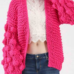 Ladies Solid Color Lantern Sleeves Open Front Chunky Knit Cardigan