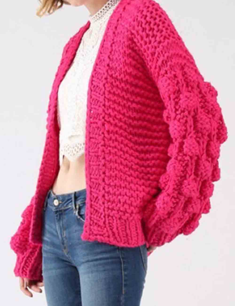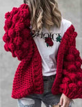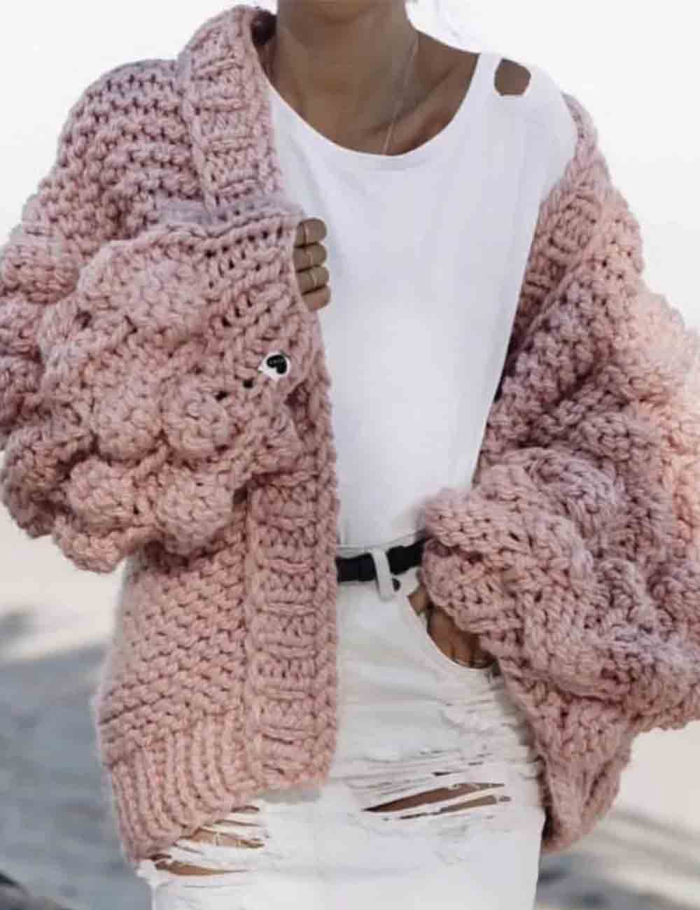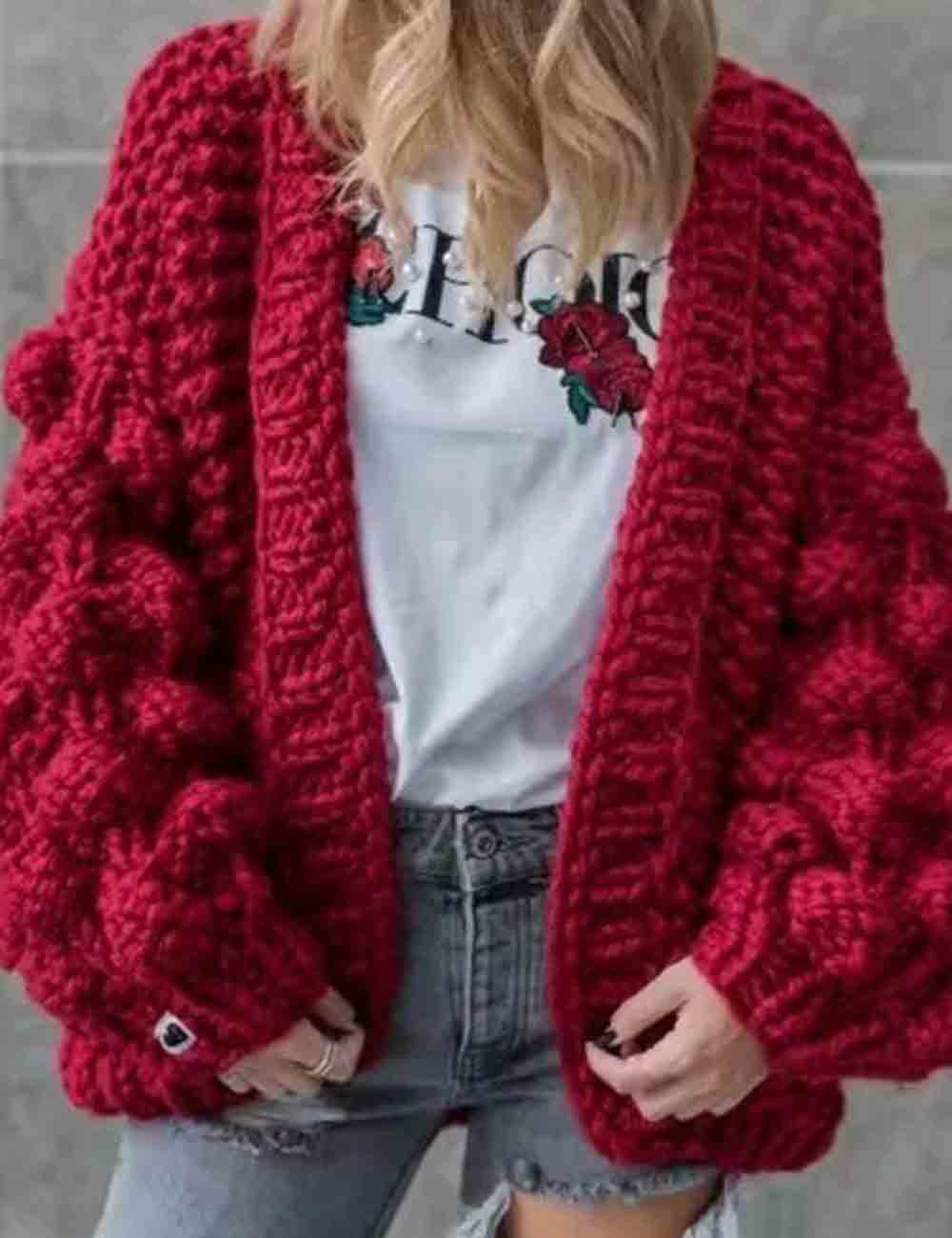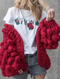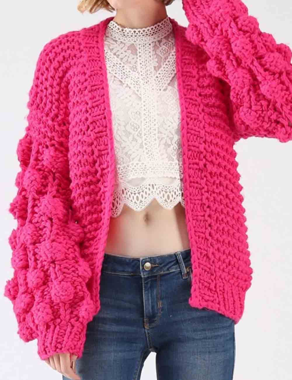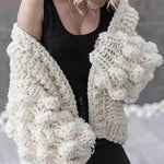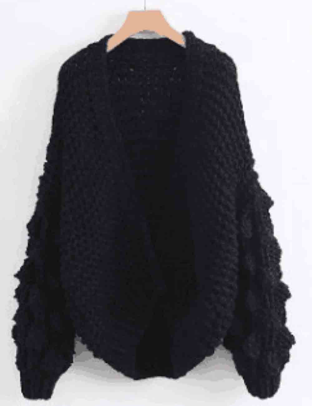 Ladies Solid Color Lantern Sleeves Open Front Chunky Knit Cardigan