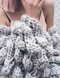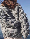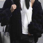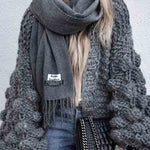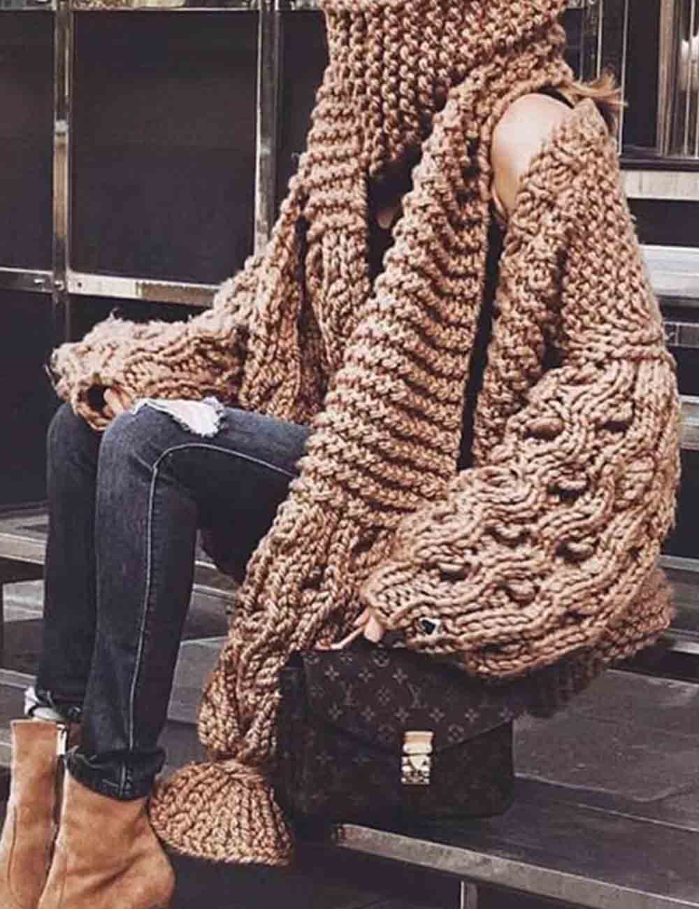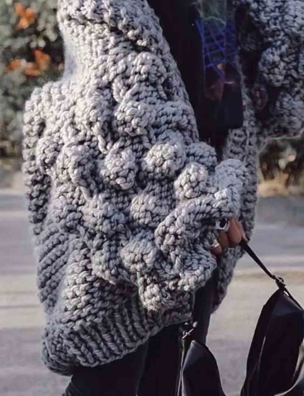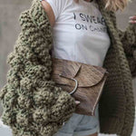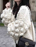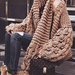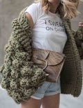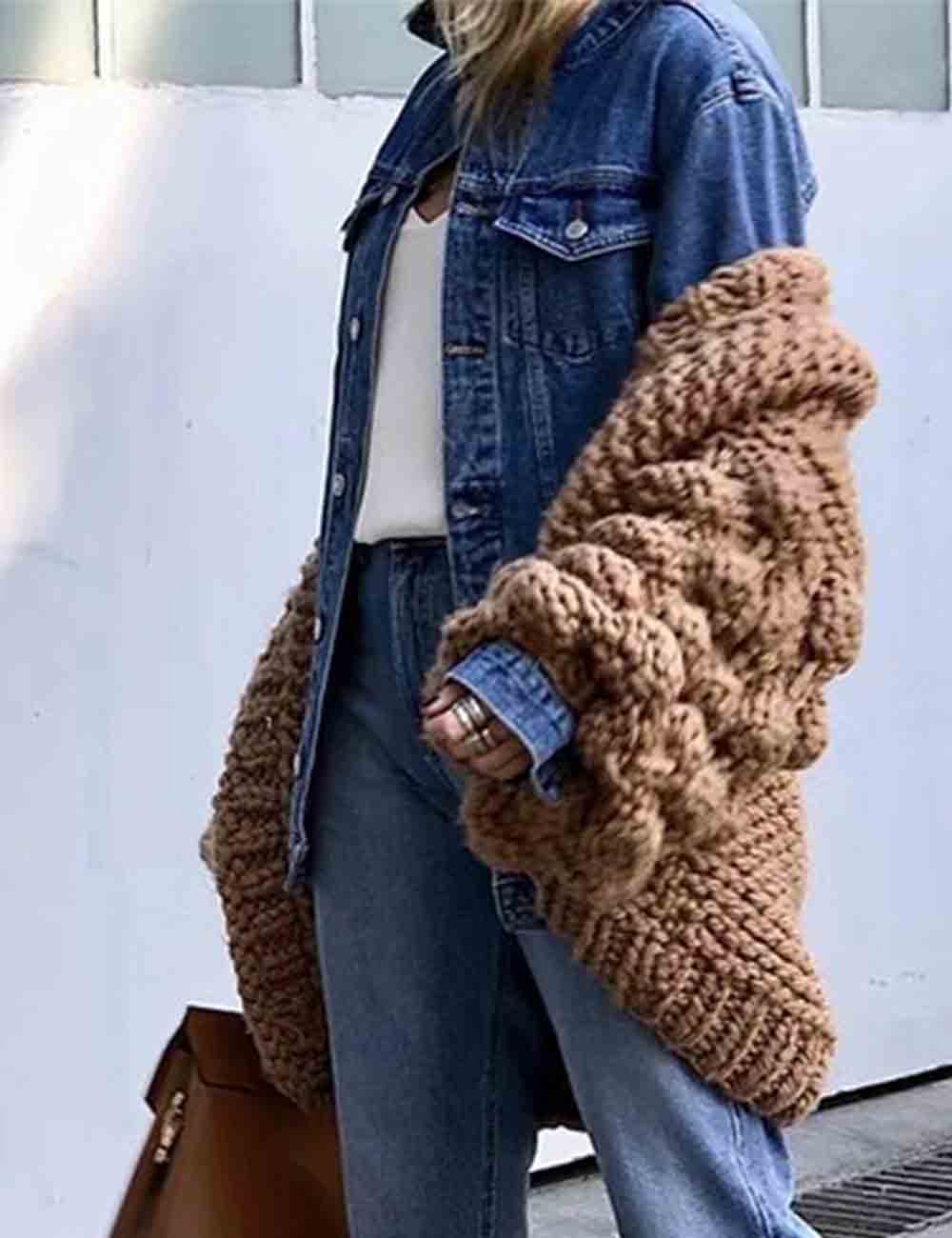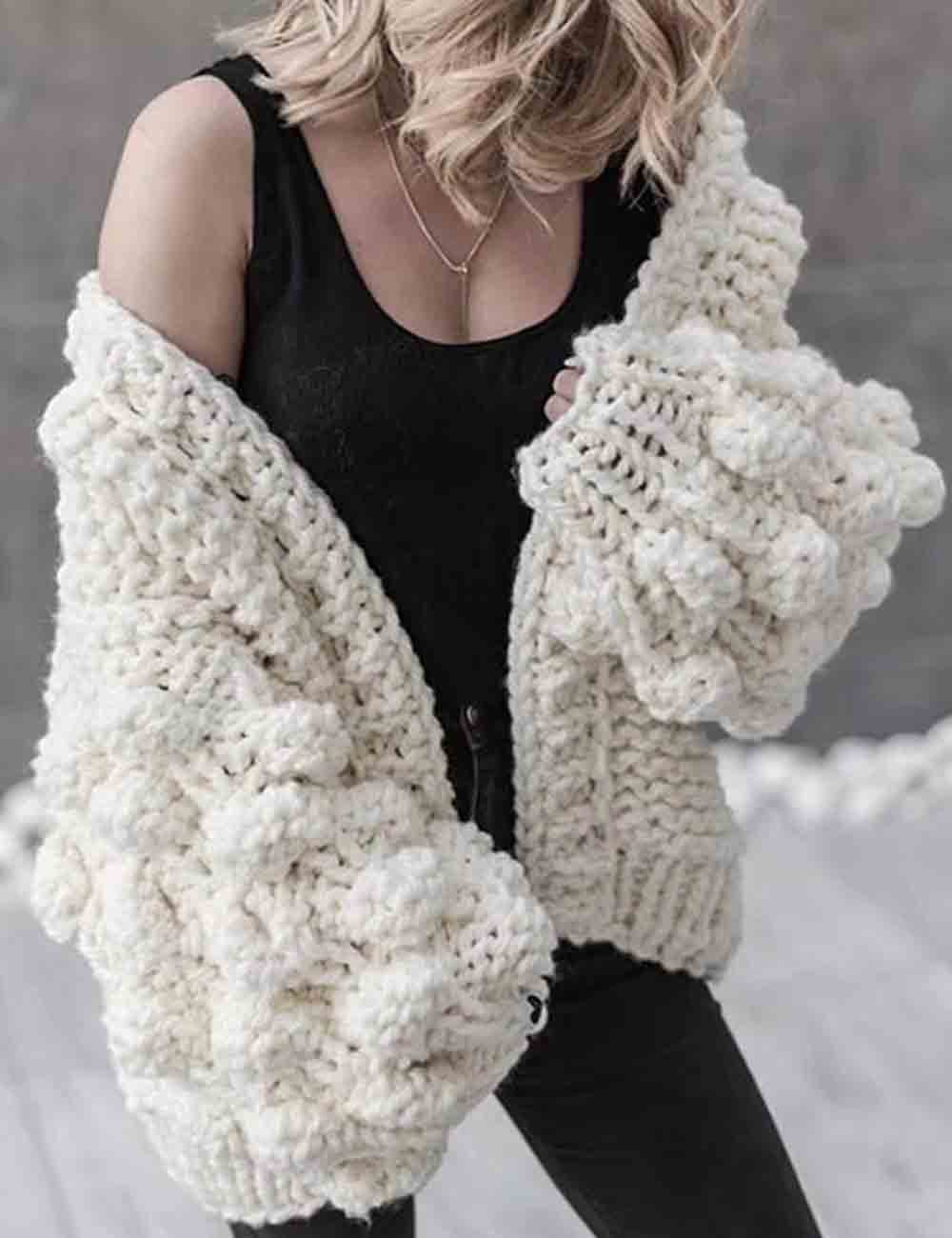 Ladies Solid Color Lantern Sleeves Open Front Chunky Knit Cardigan