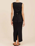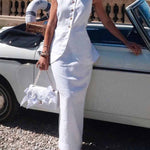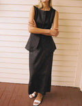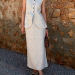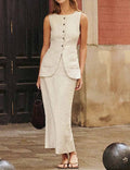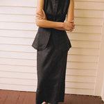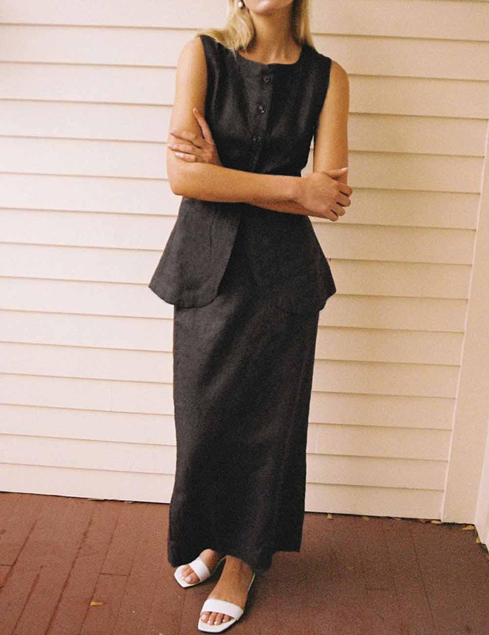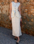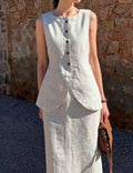 Ladies Solid Color Linen Blend Button Pocket Vest & Skirt Set