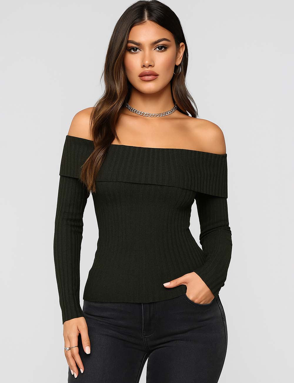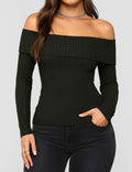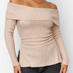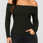 Ladies Solid Color Off Shoulder Knit Tee G2056