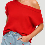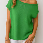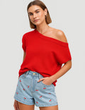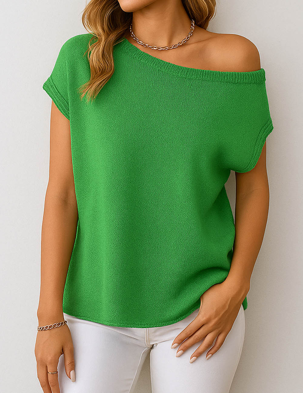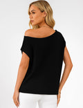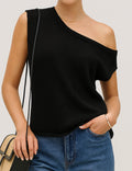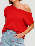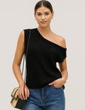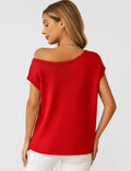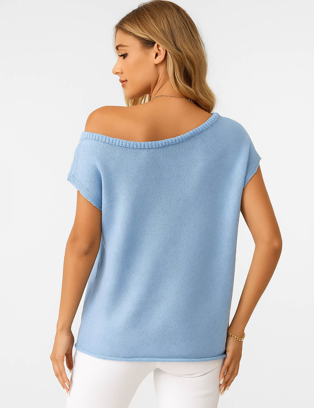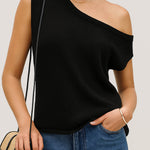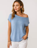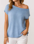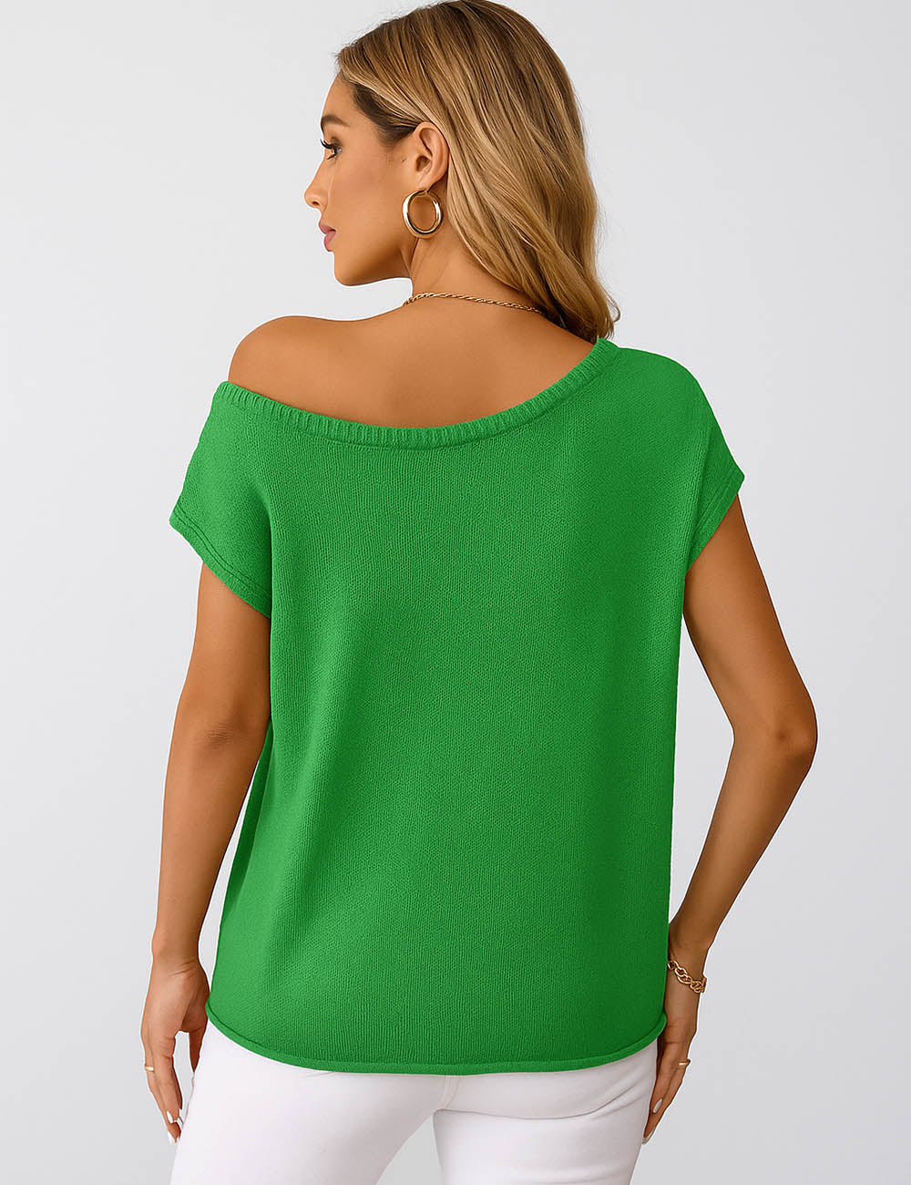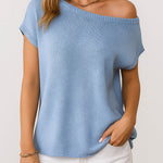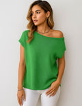 Ladies Solid Color One Shoulder Short Sleeves Knit Top