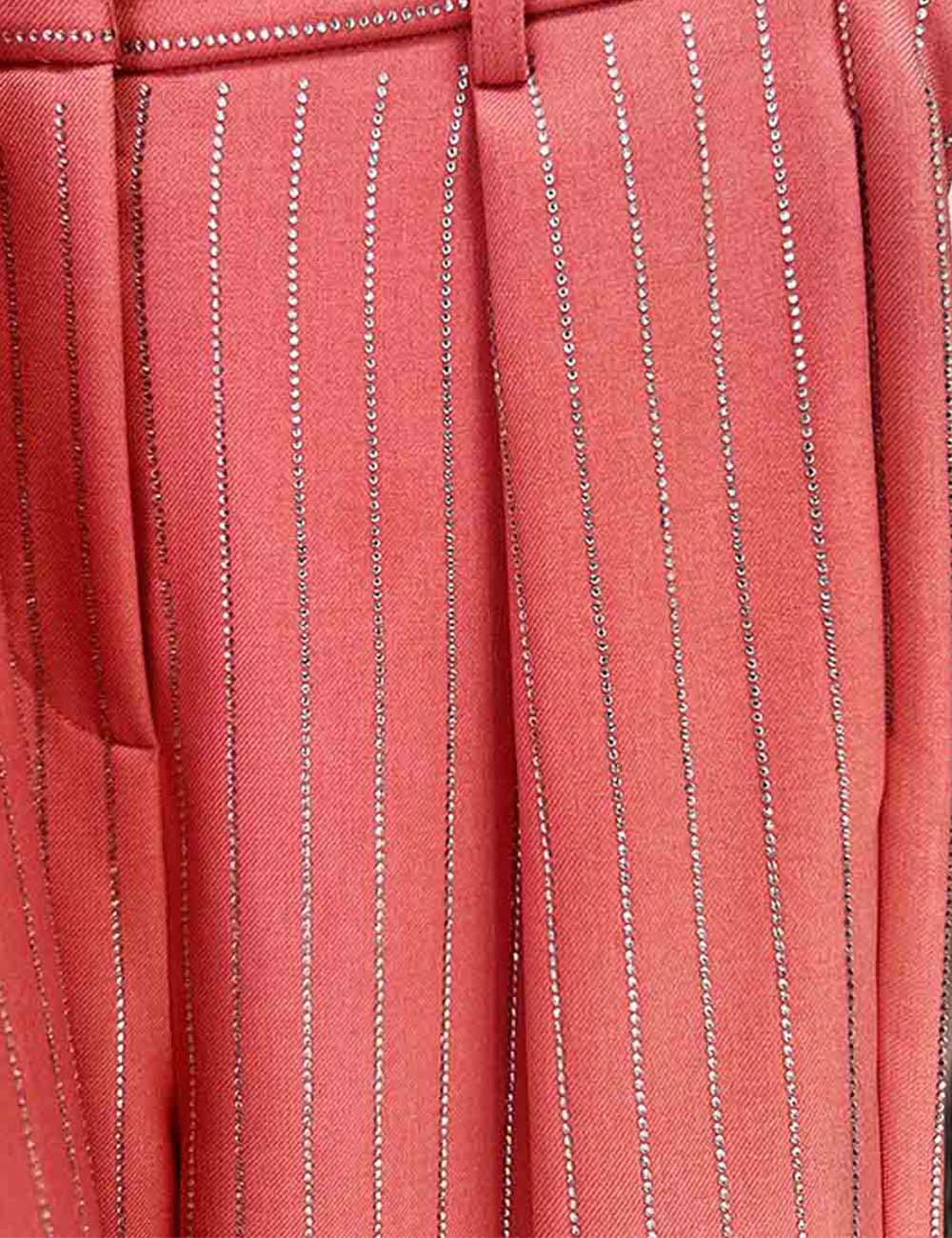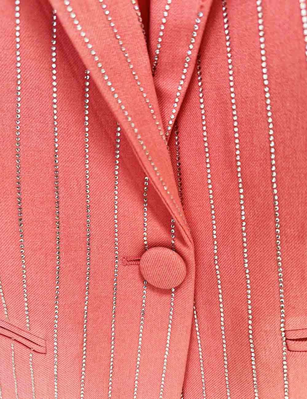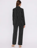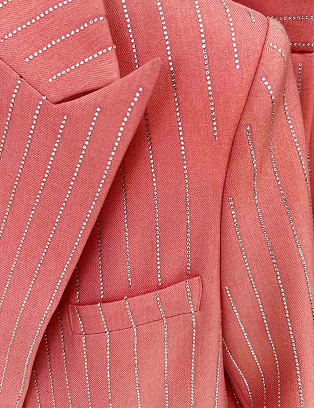 Ladies Solid Color Packed Lapel Rhinestone Striped 2PCS Suit