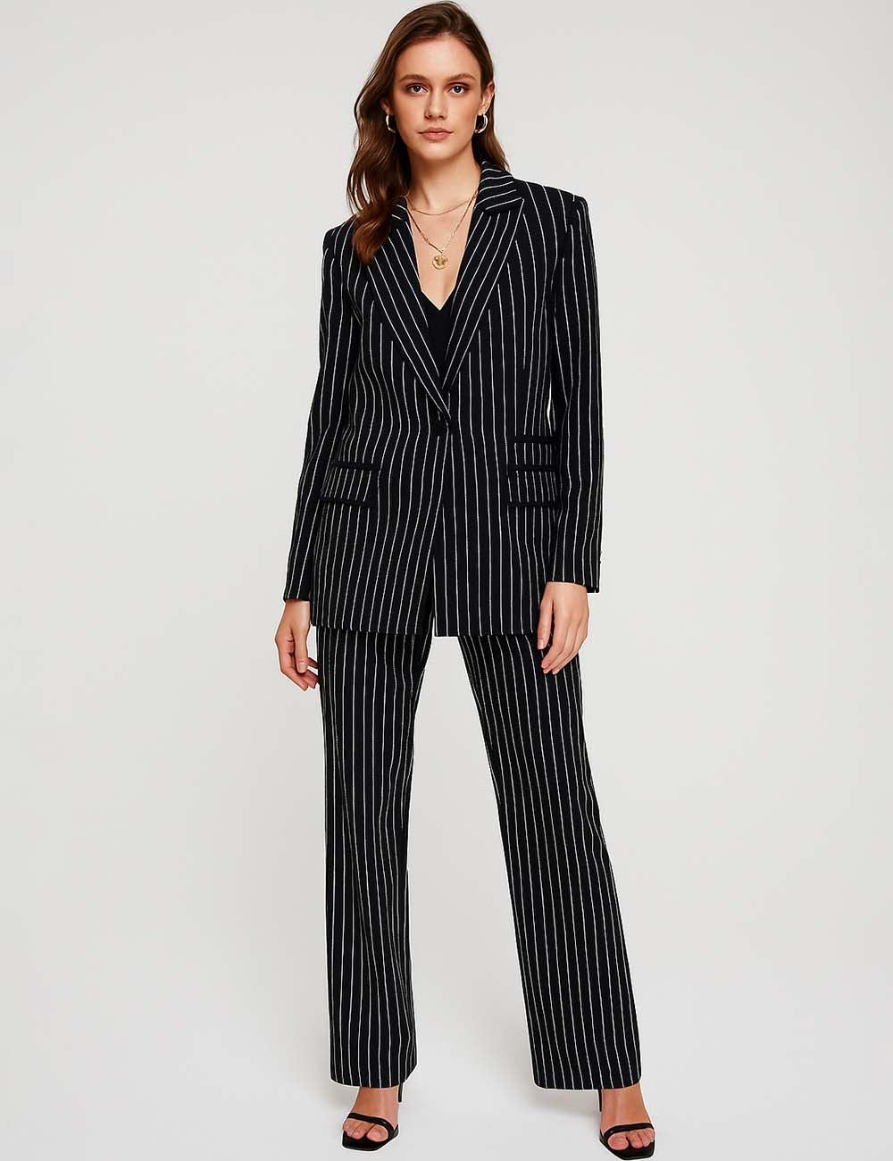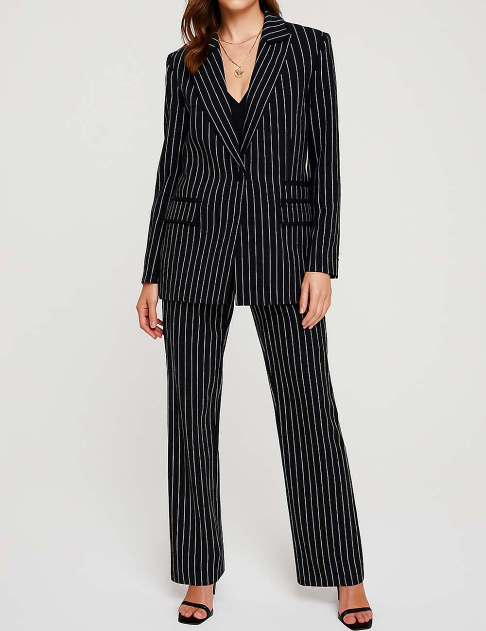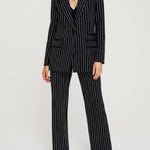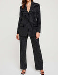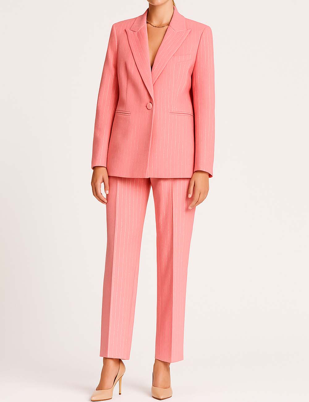 Ladies Solid Color Packed Lapel Rhinestone Striped 2PCS Suit