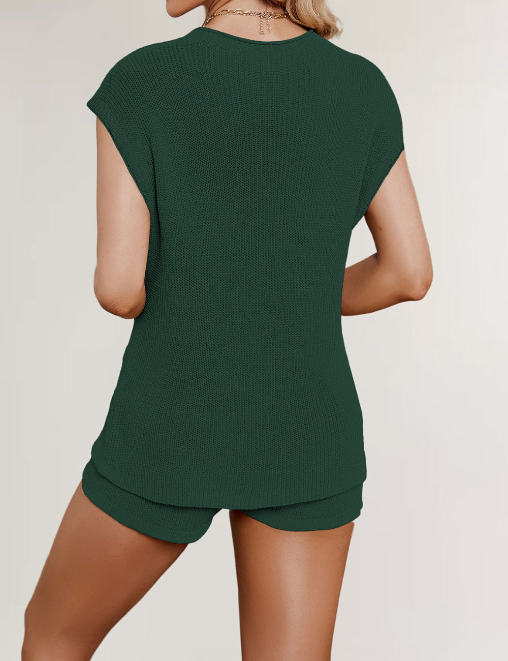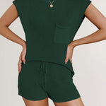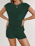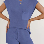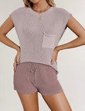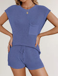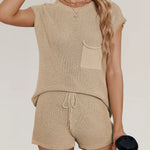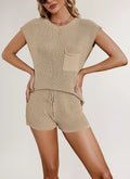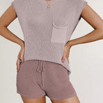 Ladies Solid Color Pockets Sweater & Shorts Set SKST41172