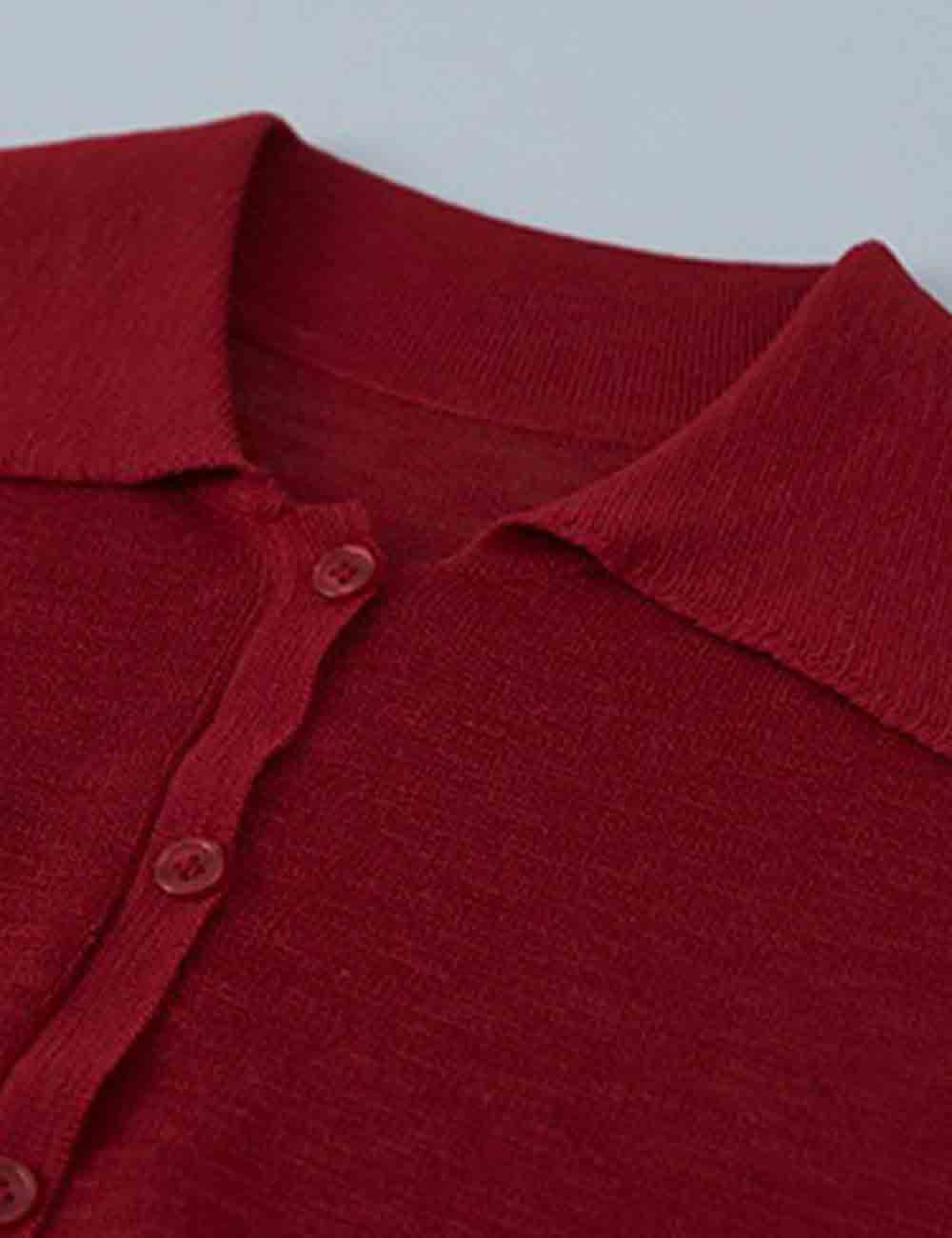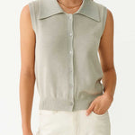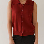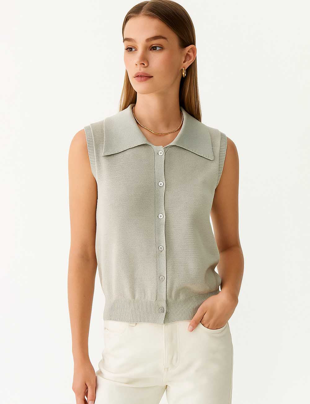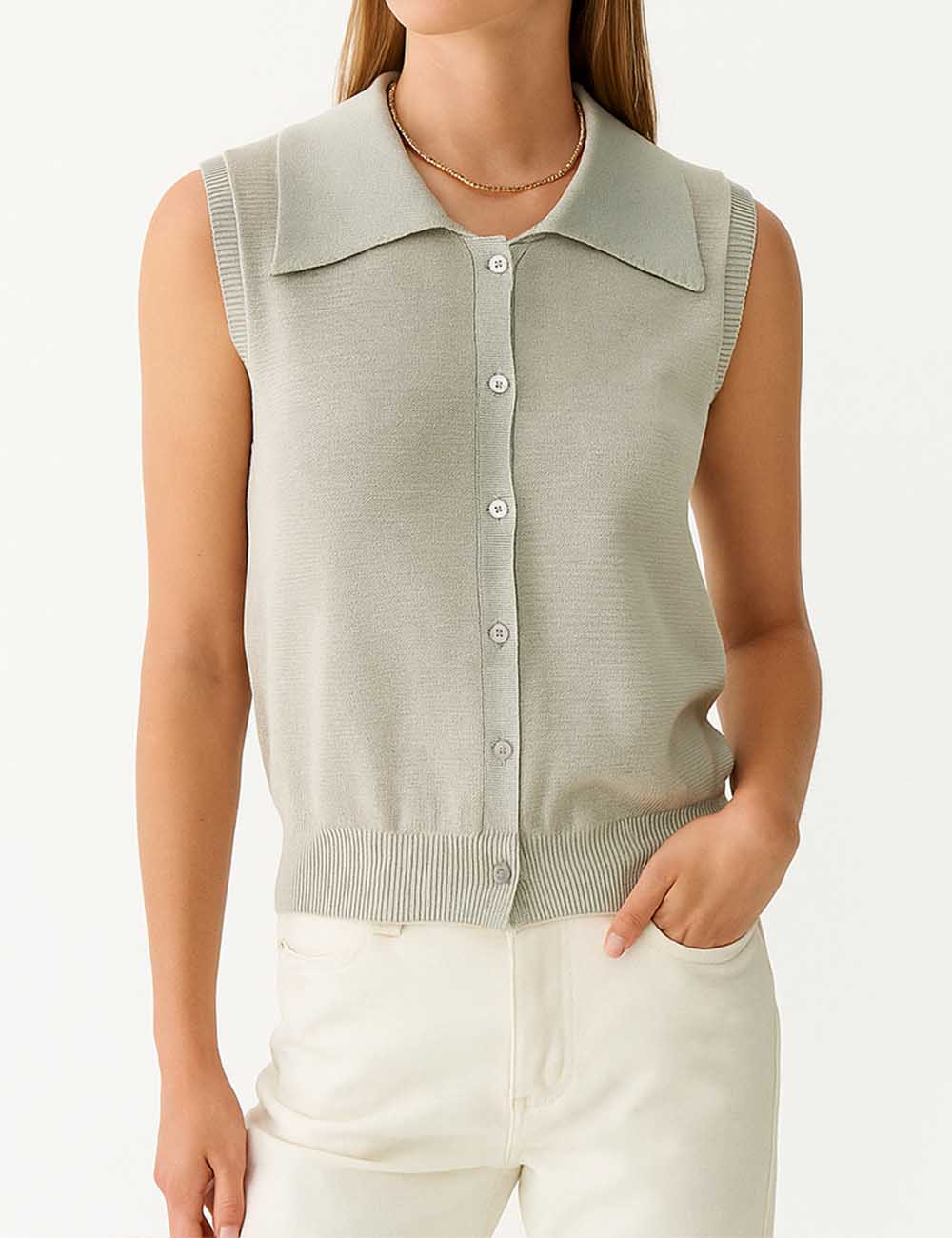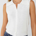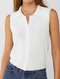 Ladies Solid Color Polo Collar Knit Sleeveless Top