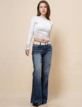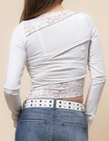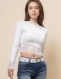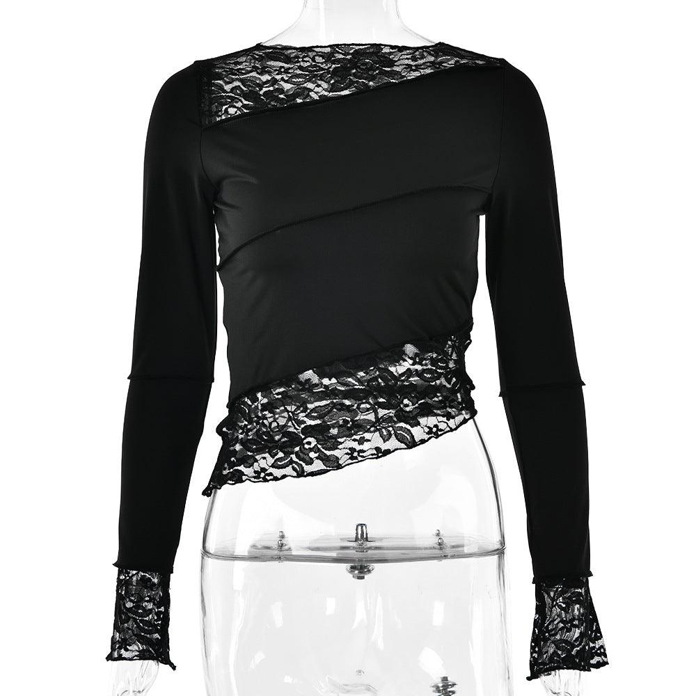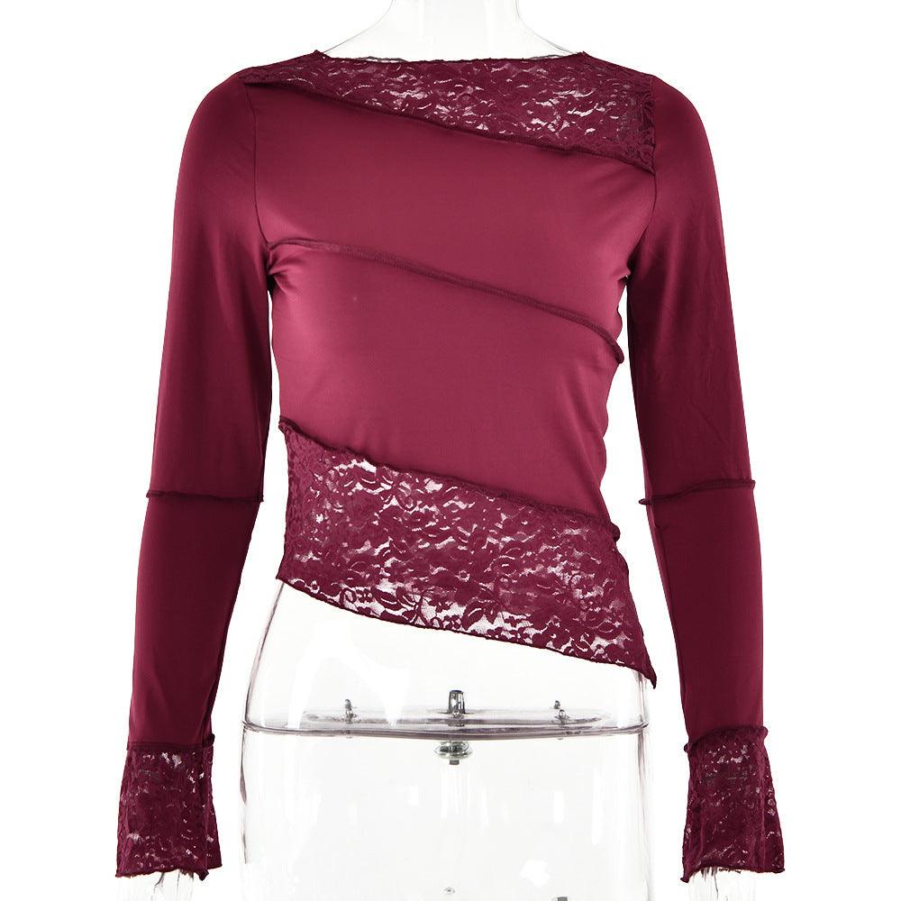 Ladies Solid Color Pullover Blouse Lace Layring Top SKT4962