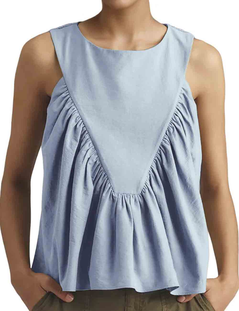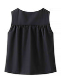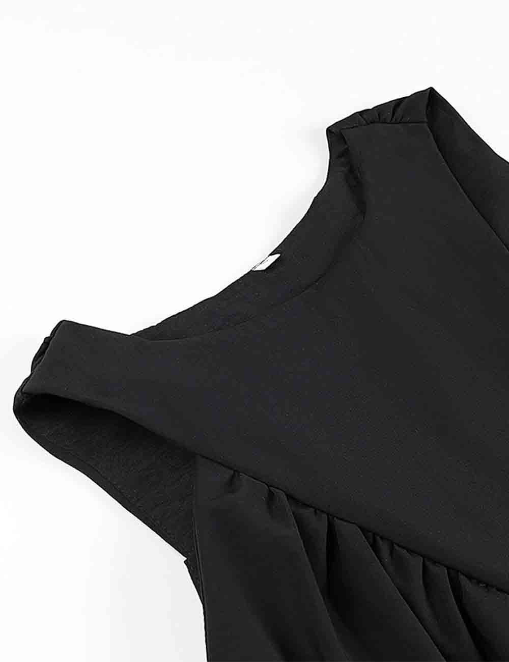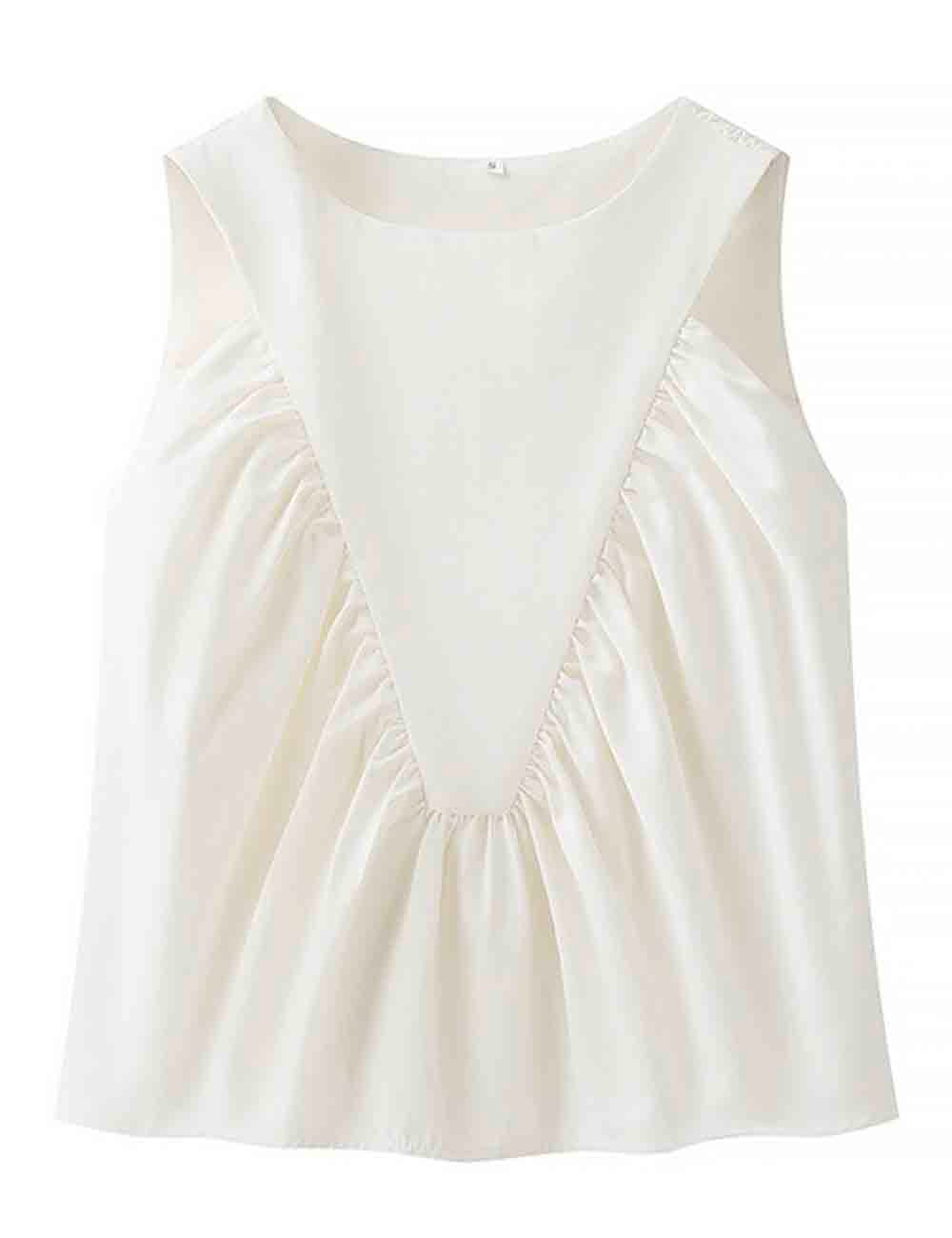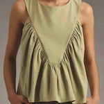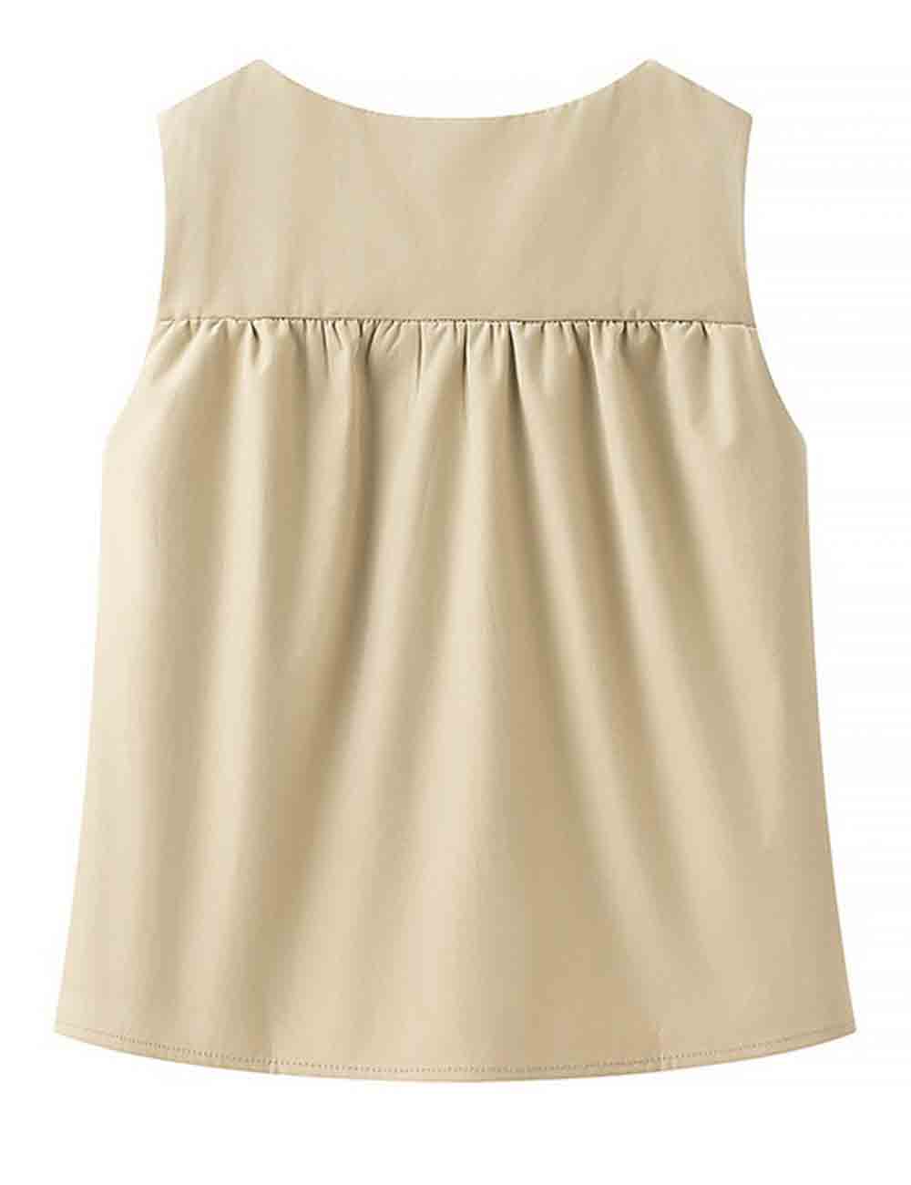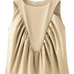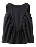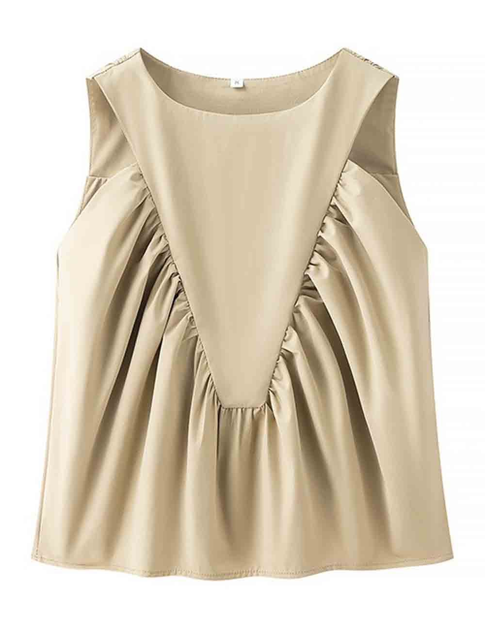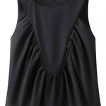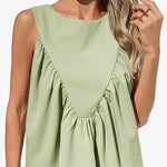 Ladies Solid Color Pullover Shirred Sleeveless Crop Tank Top