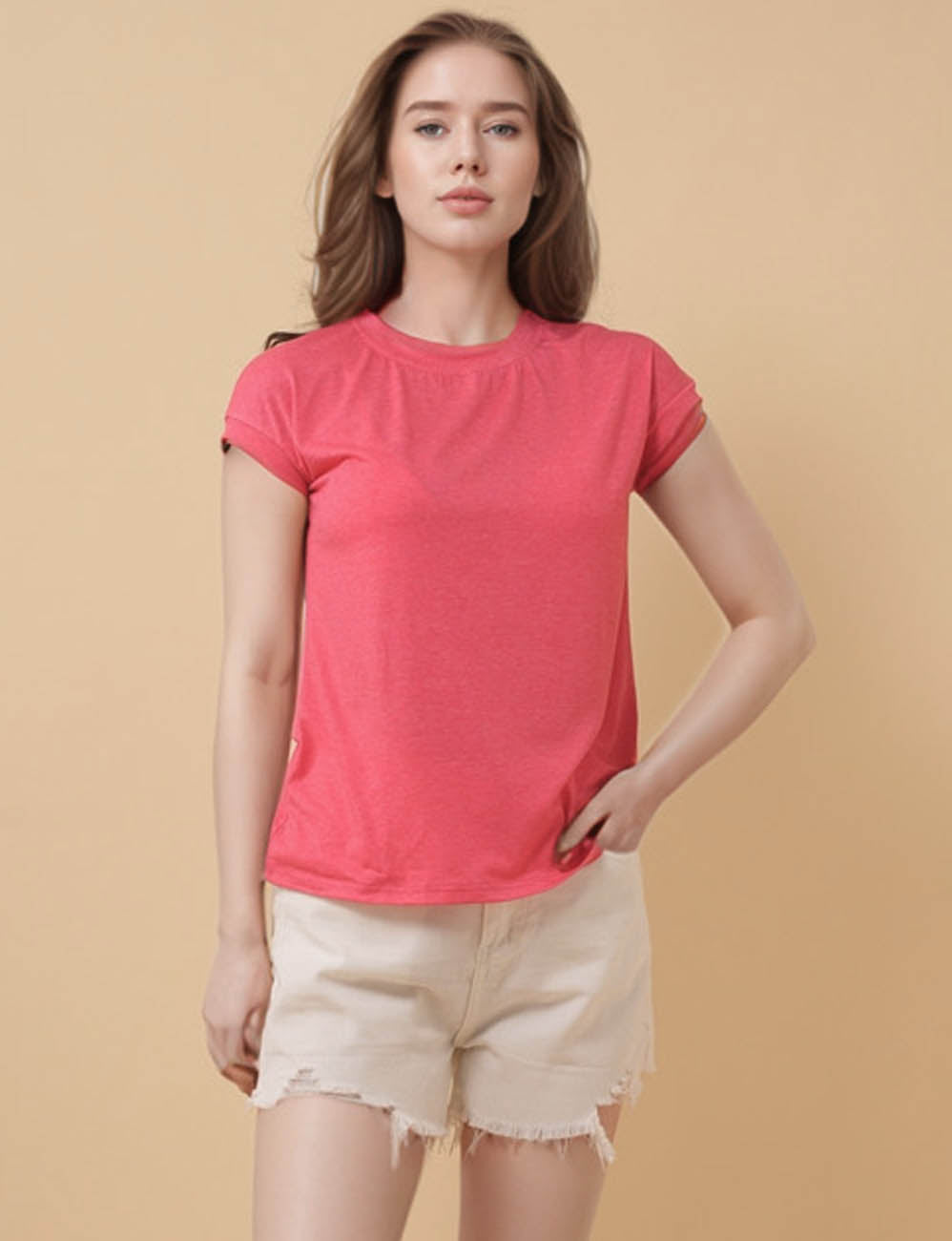 Ladies Solid Color Pullover Short Sleeves T-Shirt 8SKT51270