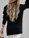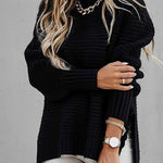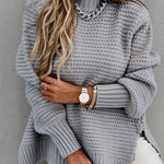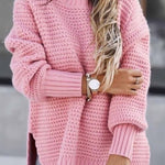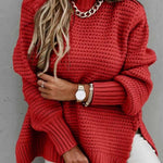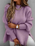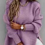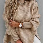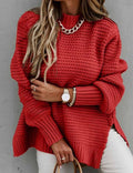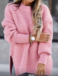 Ladies Solid Color Pullover Side Split Long Sleeves Sweater