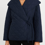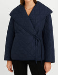 Ladies Quilted Shawl Collar Wrap Tie Cotton Padded Jacket