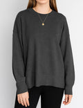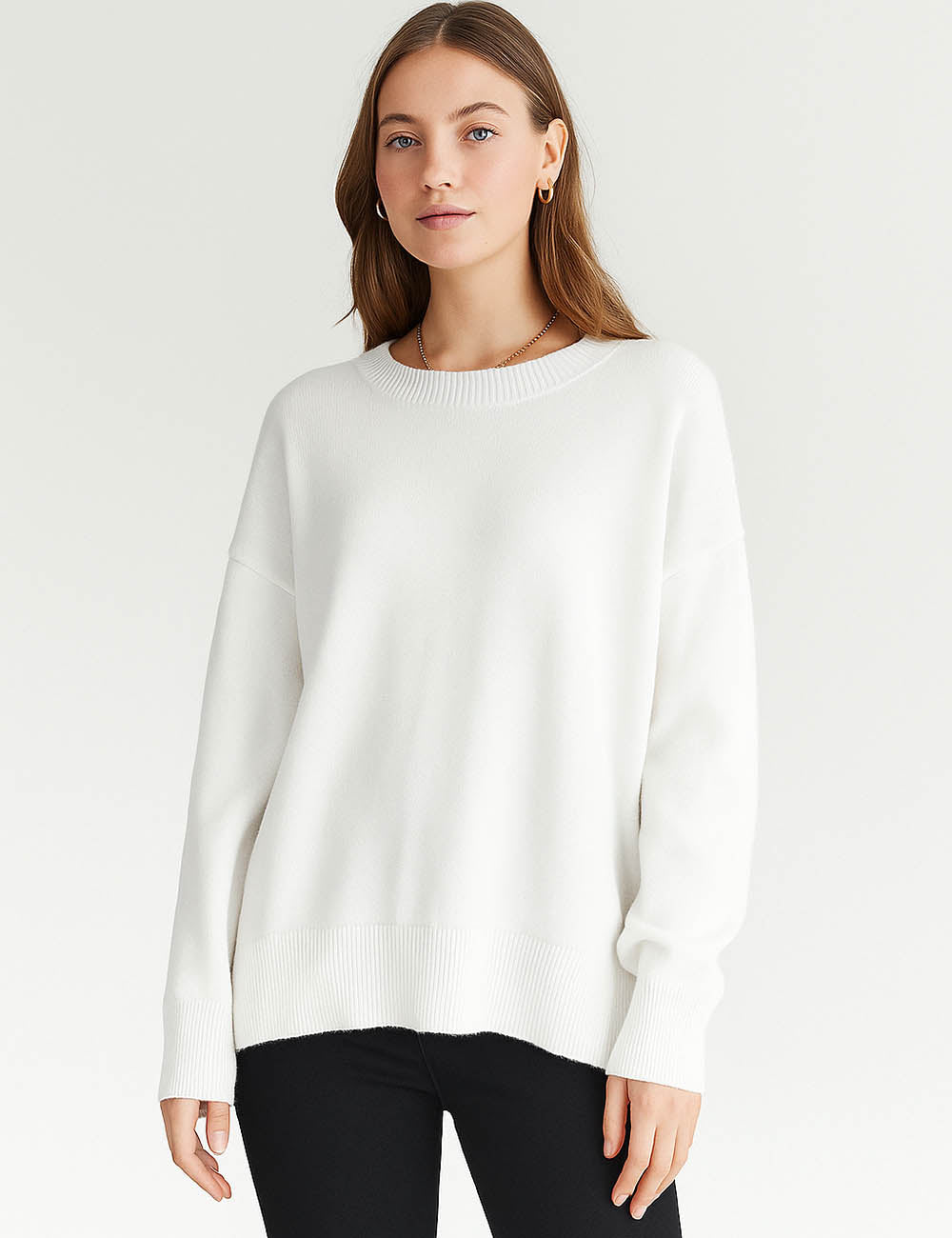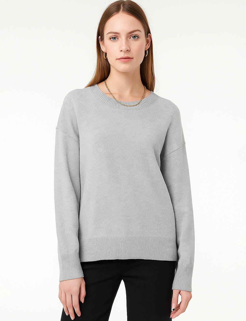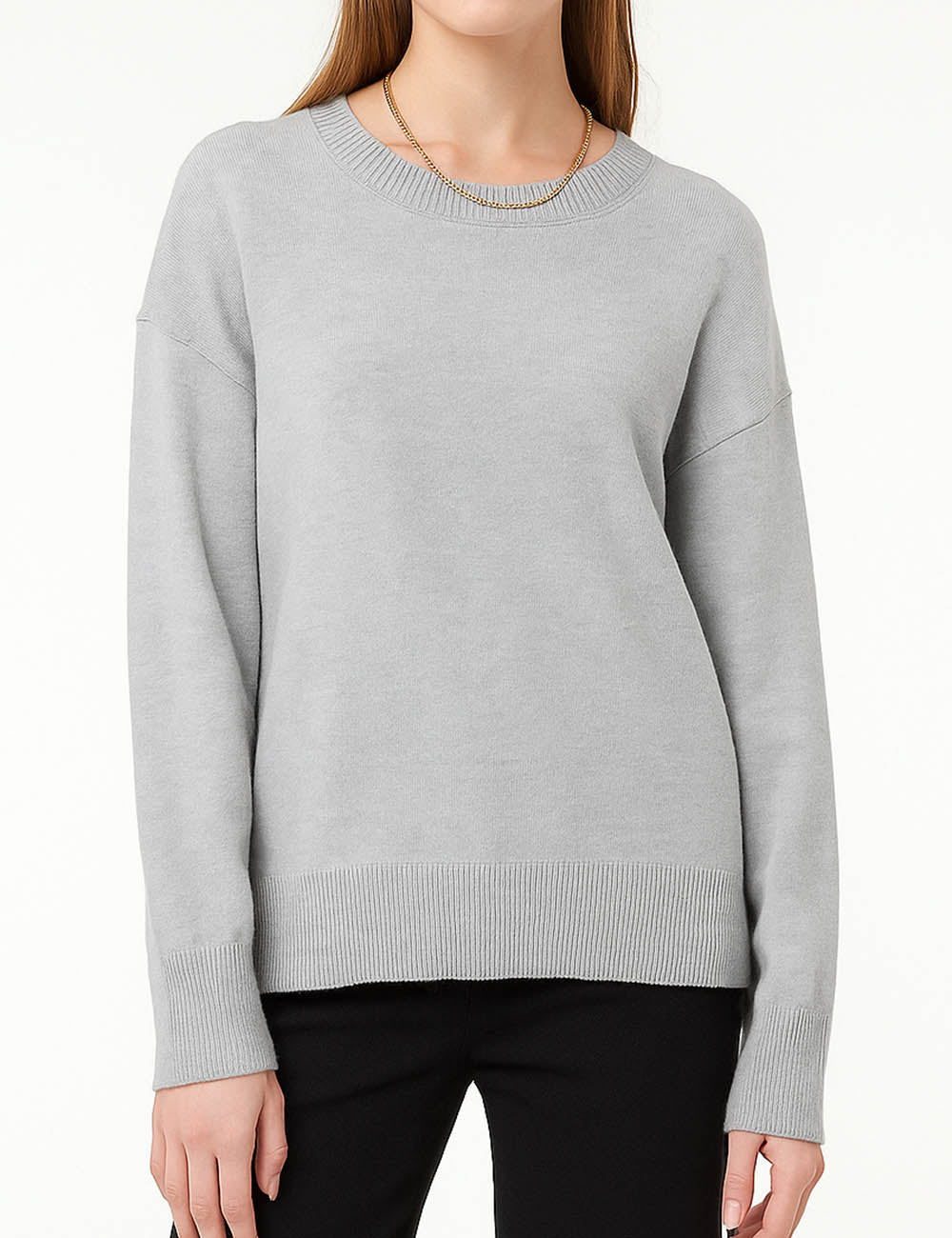 Ladies Solid Color Ribbed Hem Long Sleeves Sweater