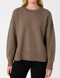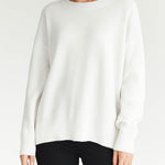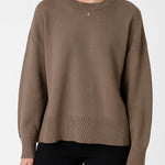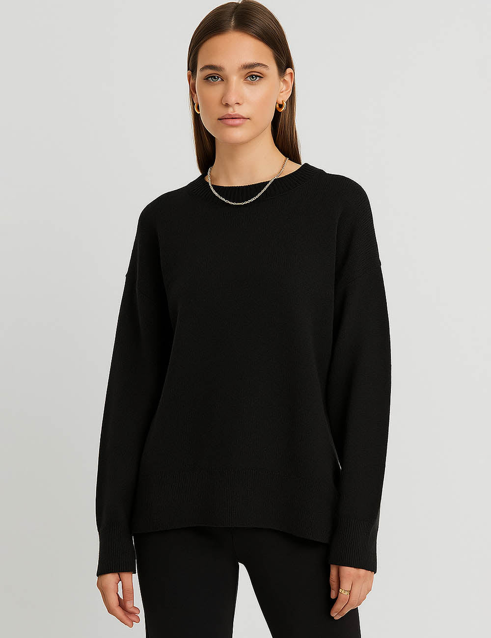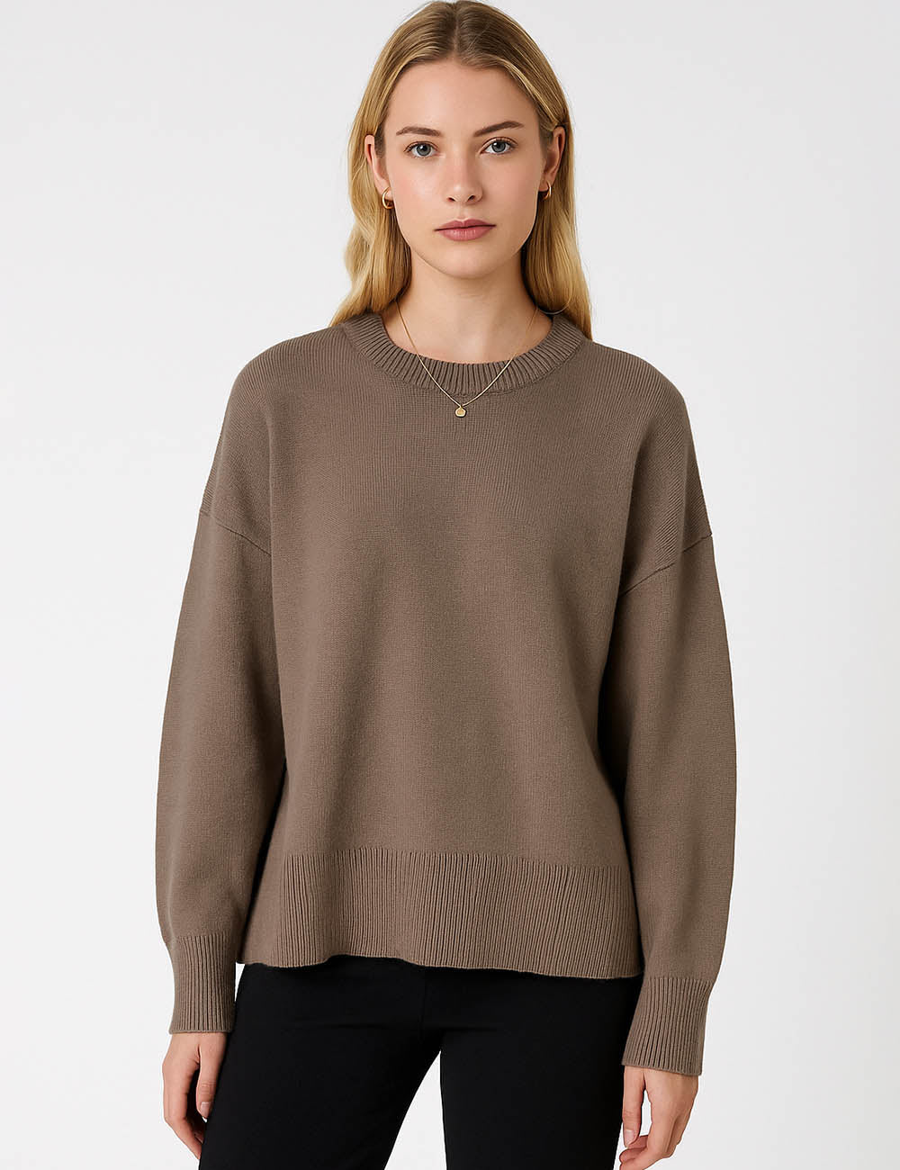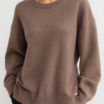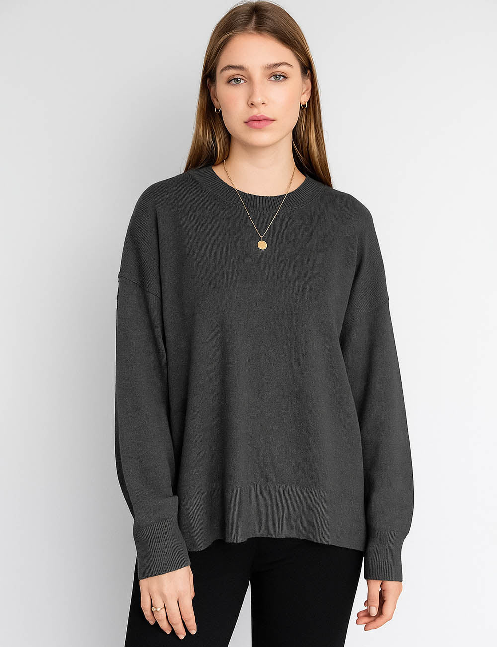 Ladies Solid Color Ribbed Hem Long Sleeves Sweater