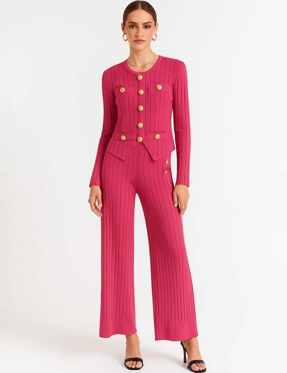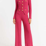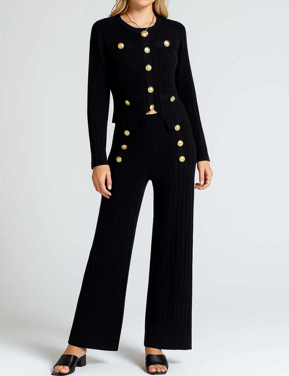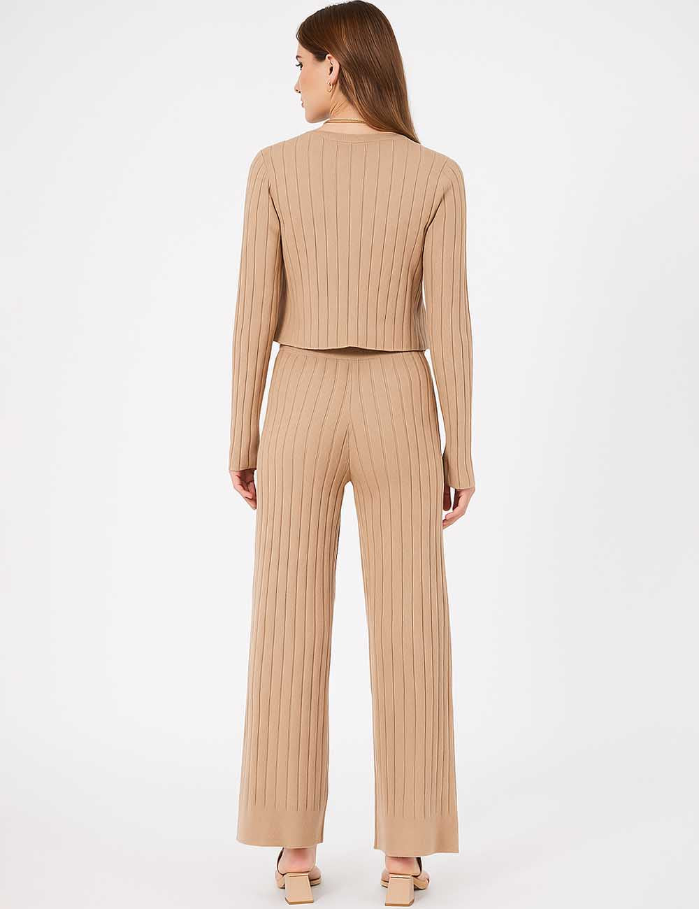 Ladies Solid Color Ribbed Knit Top & Pants Set
