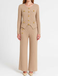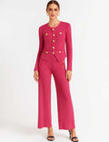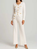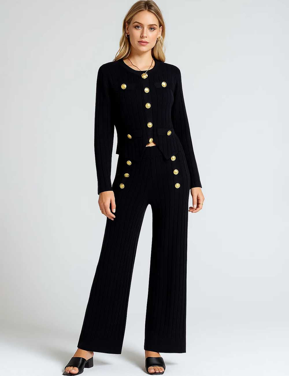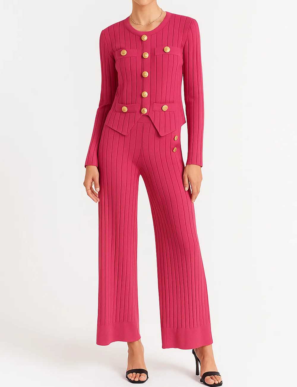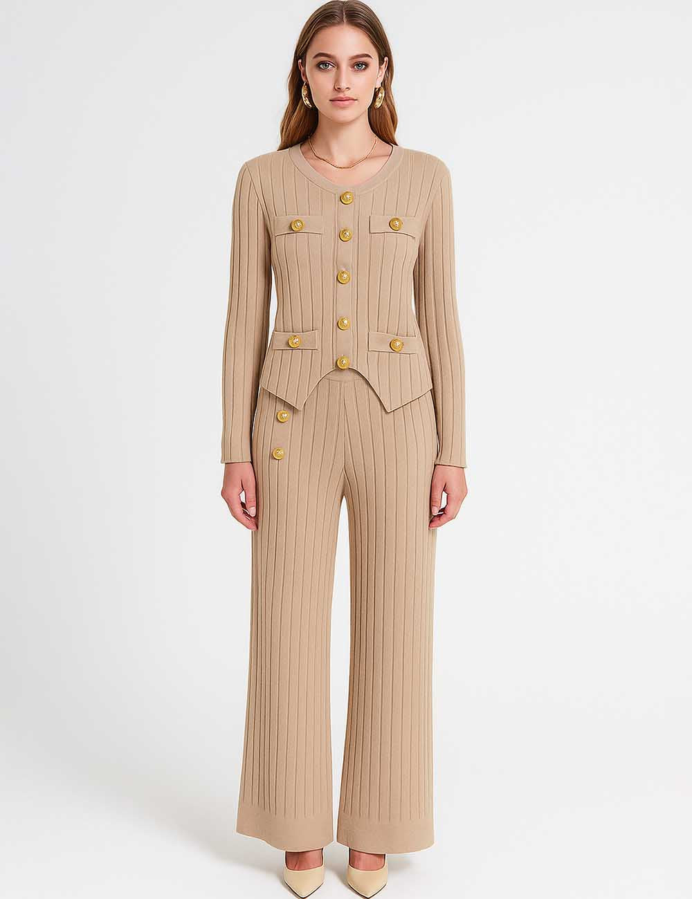 Ladies Solid Color Ribbed Knit Top & Pants Set