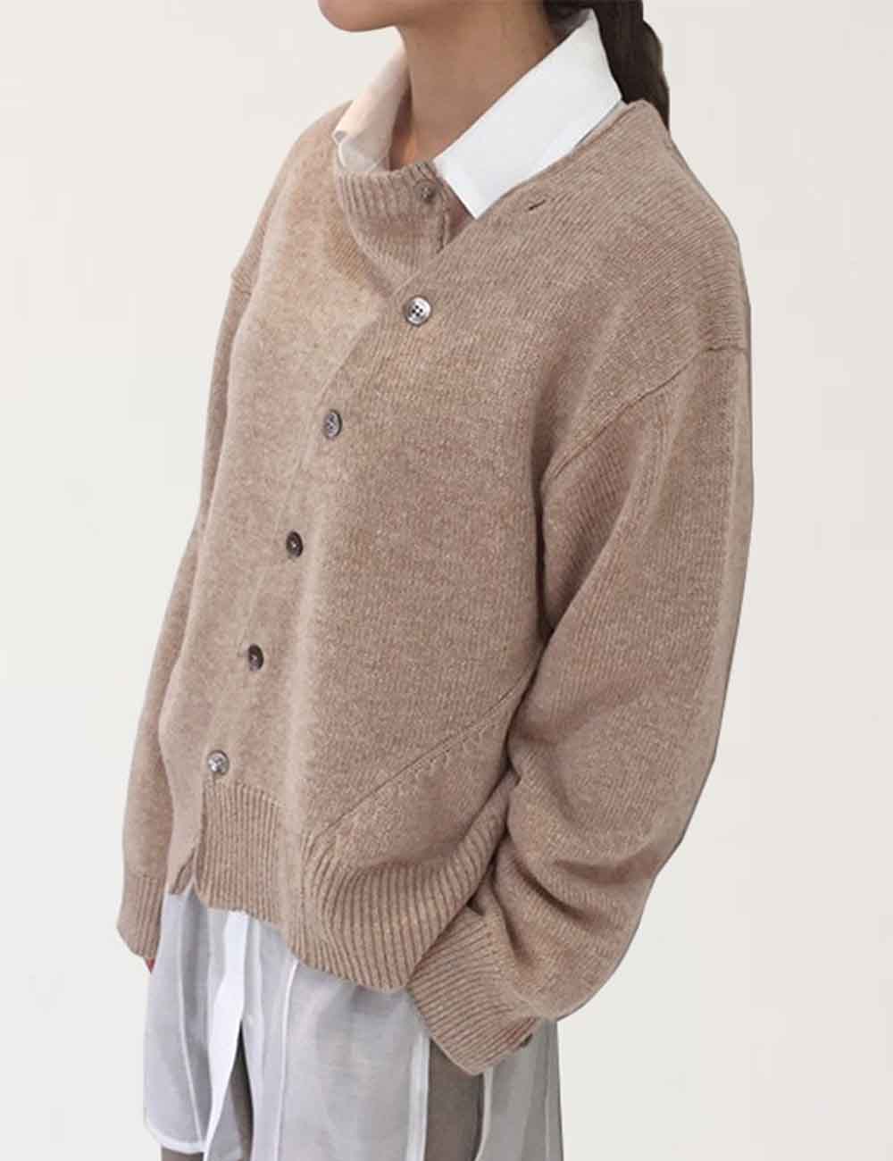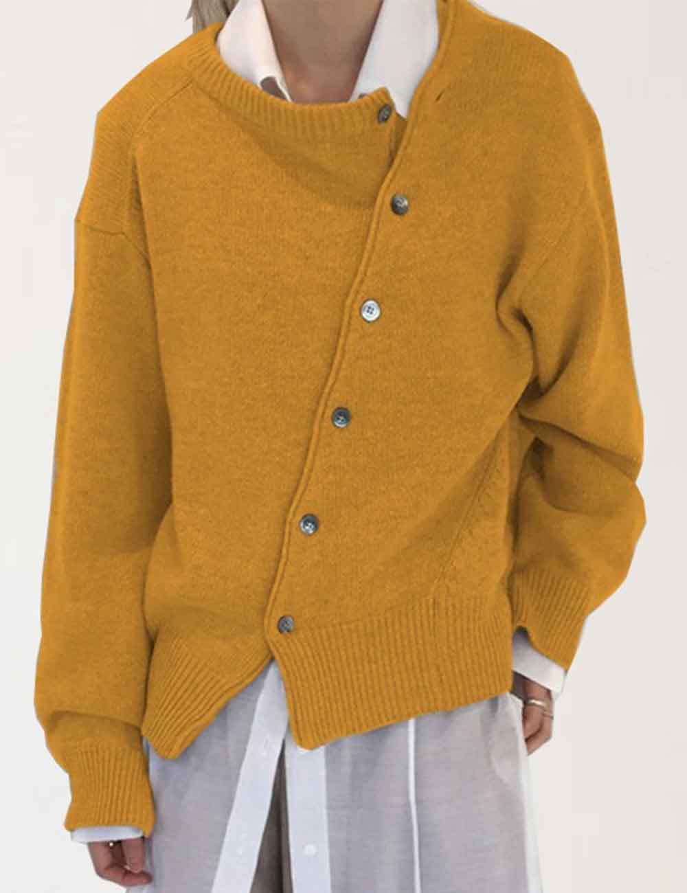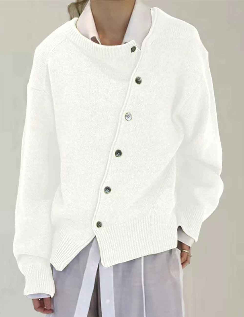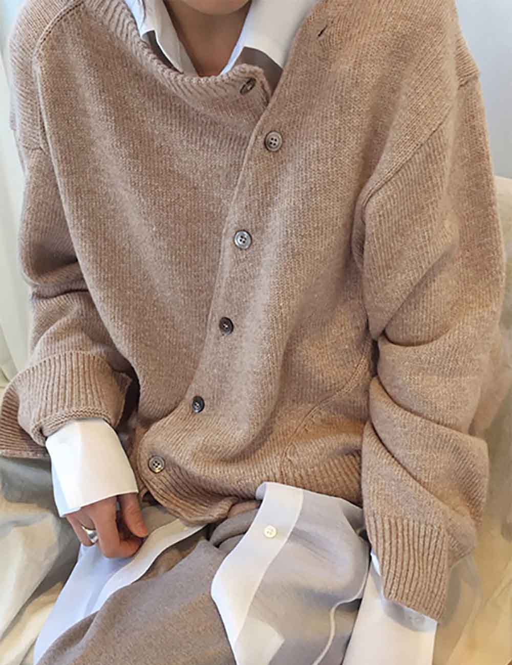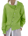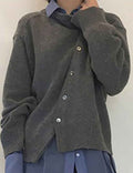 Ladies Solid Color Round Collar Long Sleeves Knit Cardigan