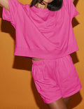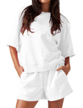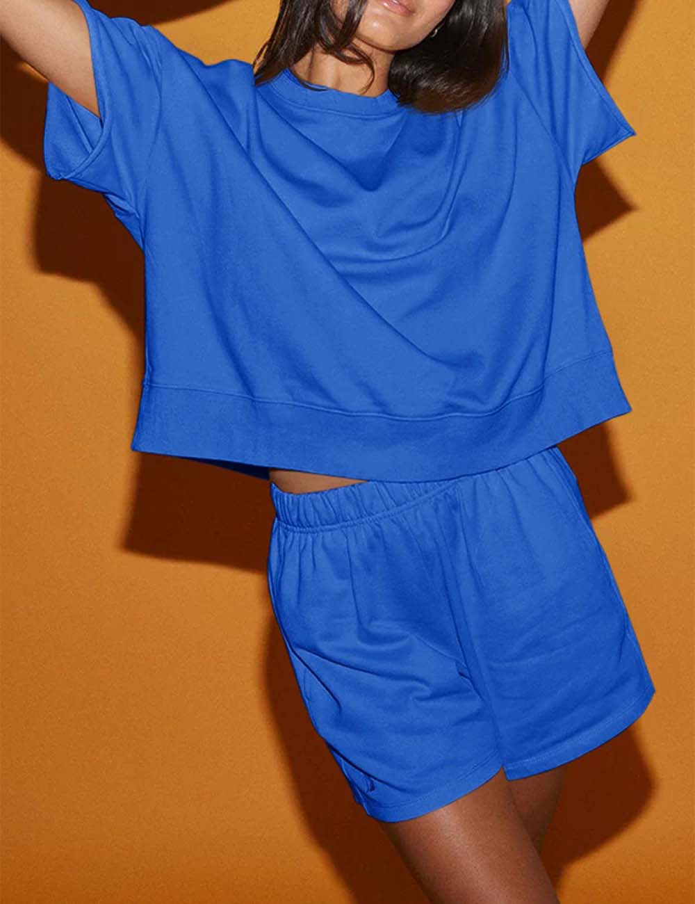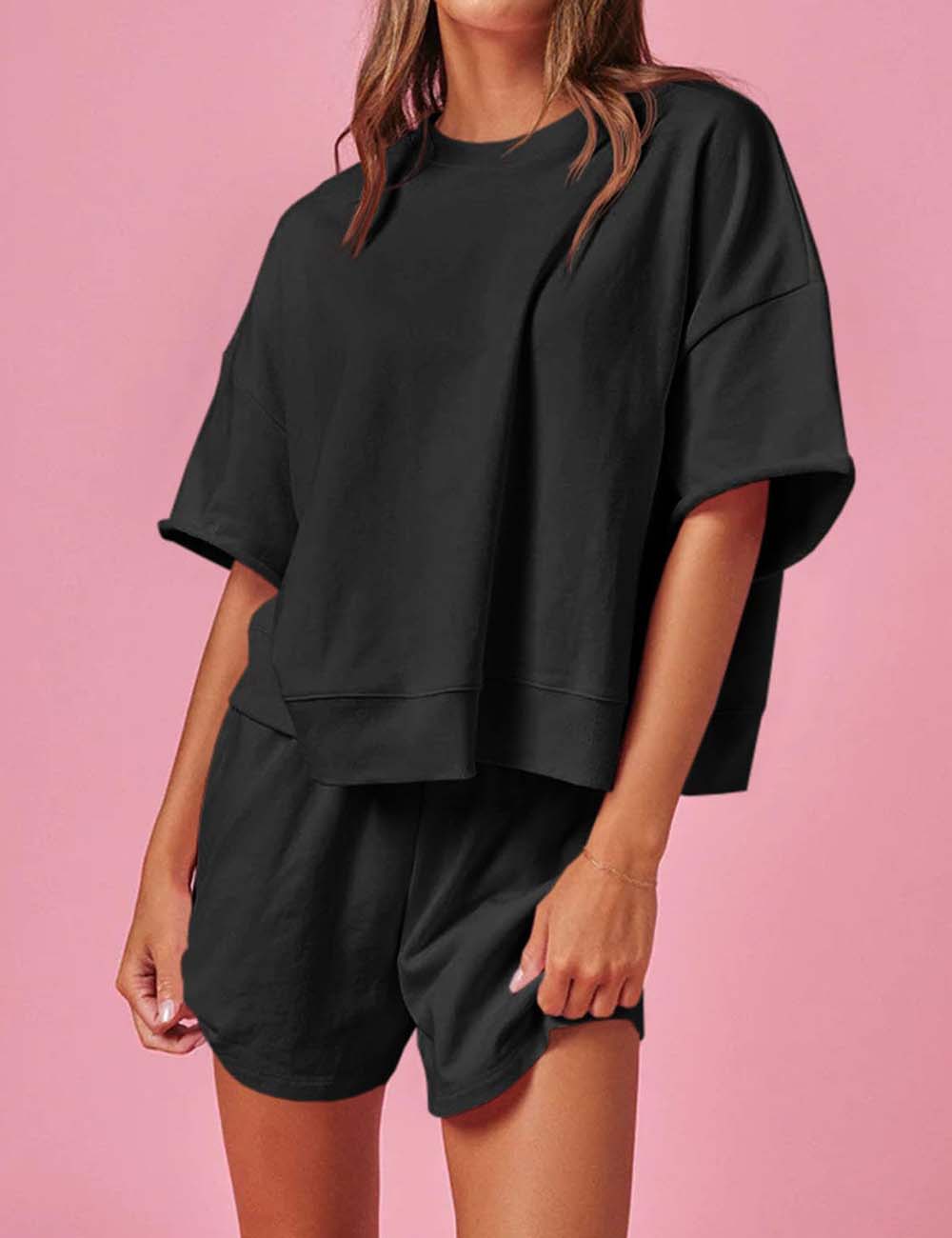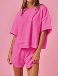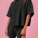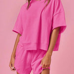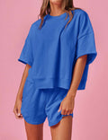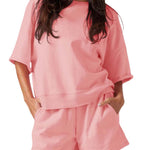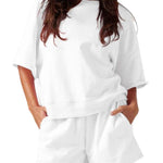 Ladies Solid Color Round Neck Short Sleeves Top & Shorts 2PCS Set