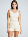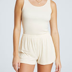 Ladies Solid Color Round Neck Tank Top & Short Set