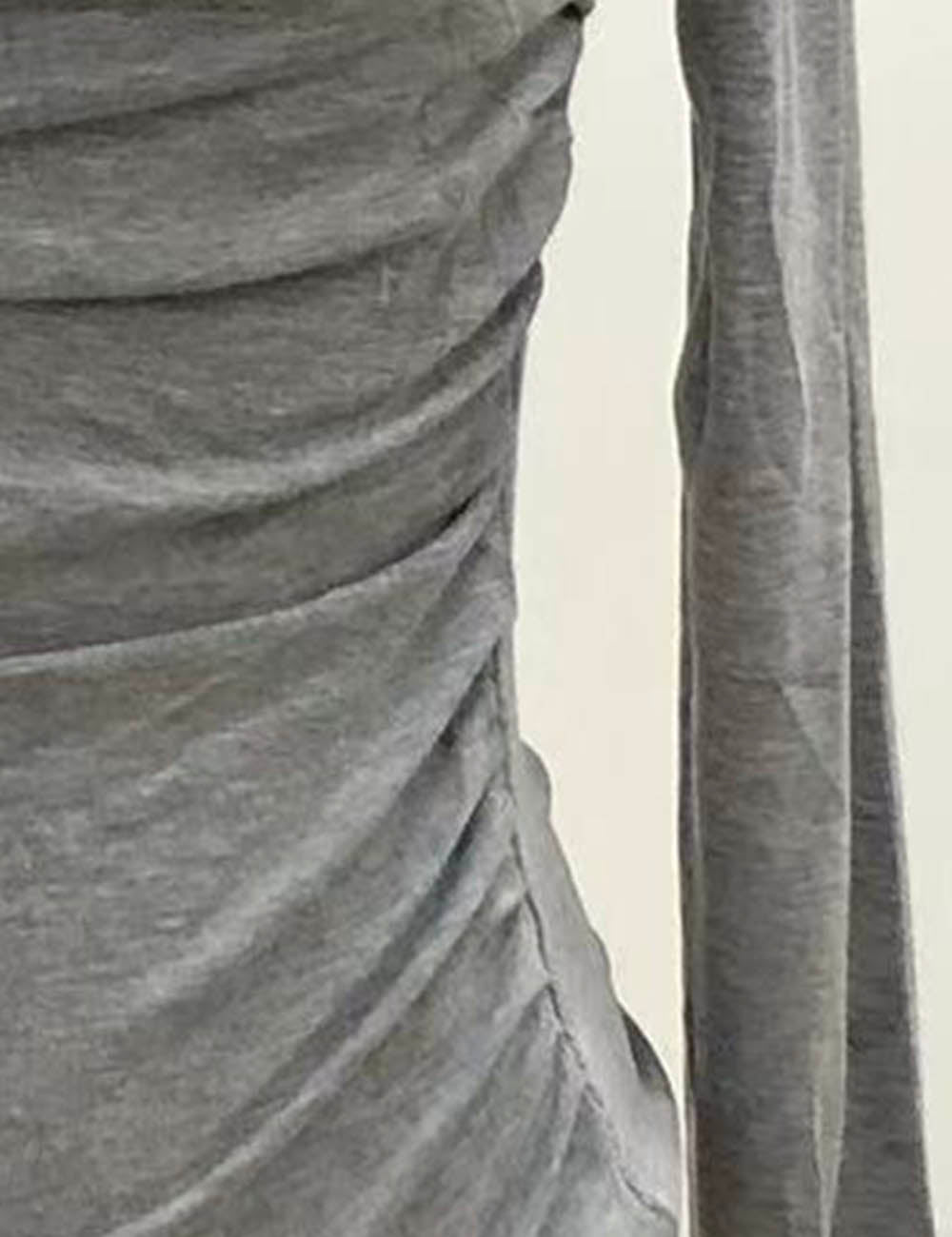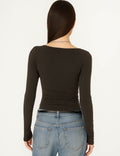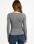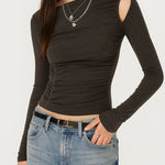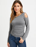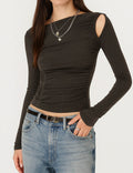 Ladies Solid Color Ruched Layer Cutout Long Sleeves Top
