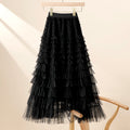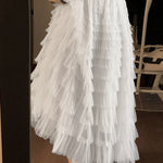 Ladies Solid Color Ruffle Guazy Midi Skirt SKS41176