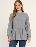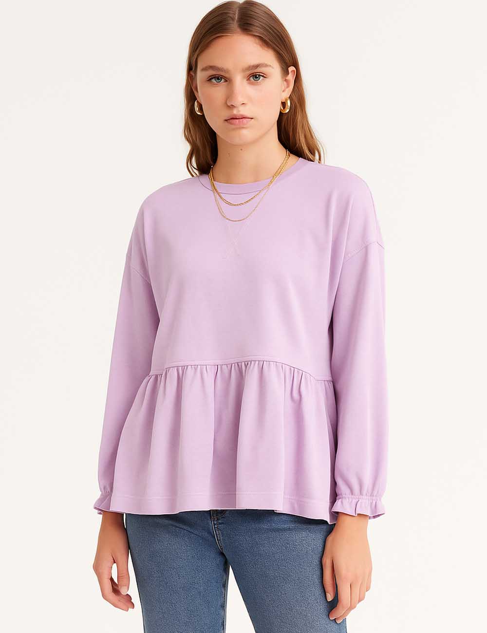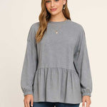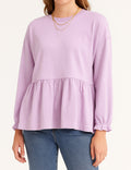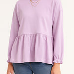 Ladies Solid Color Ruffle Pullover Long Sleeves Babydoll Top