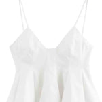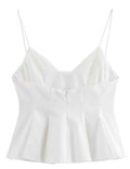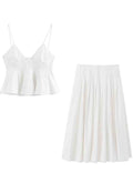 Ladies Solid Color Ruffle String Shoulder Cami Top & Skirt Set