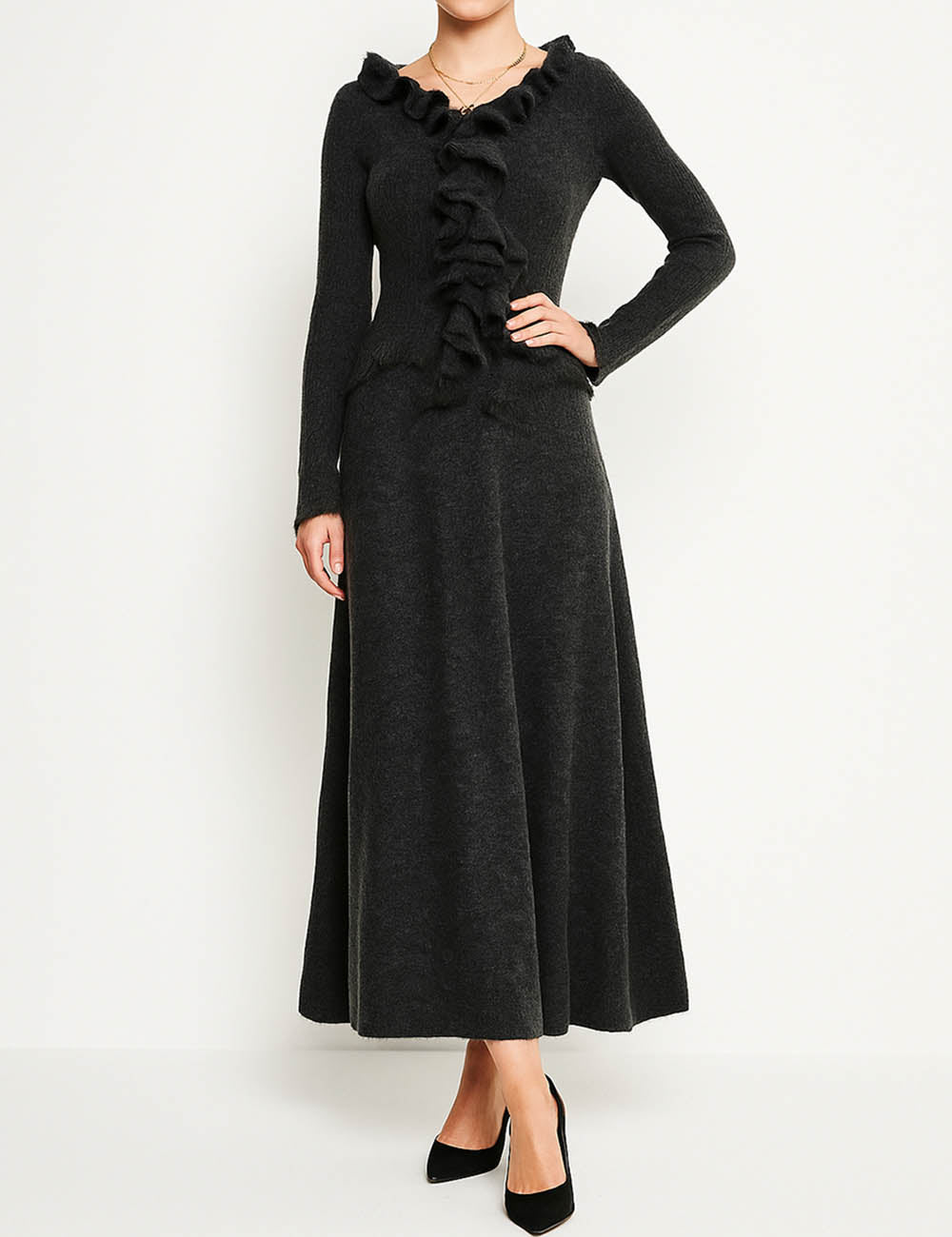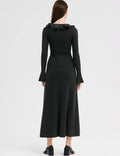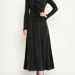 Ladies Solid Color Ruffle Trim Knit Top & Midi Skirt Set