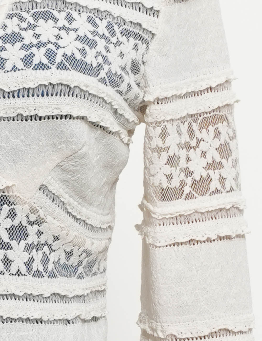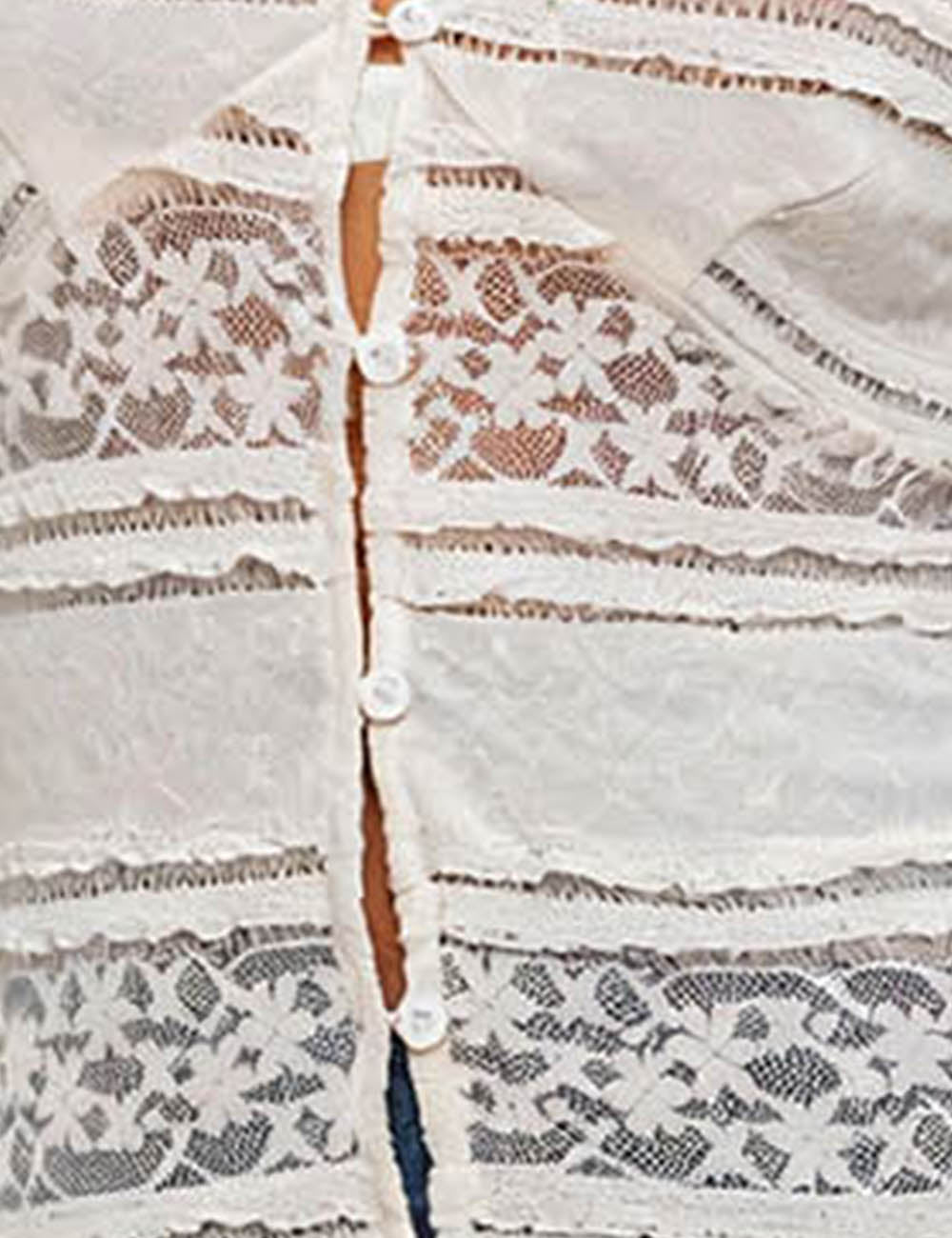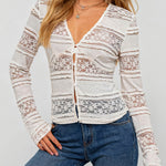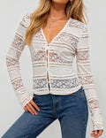 Ladies Solid Color See Sheer Lace Floral Crop Top